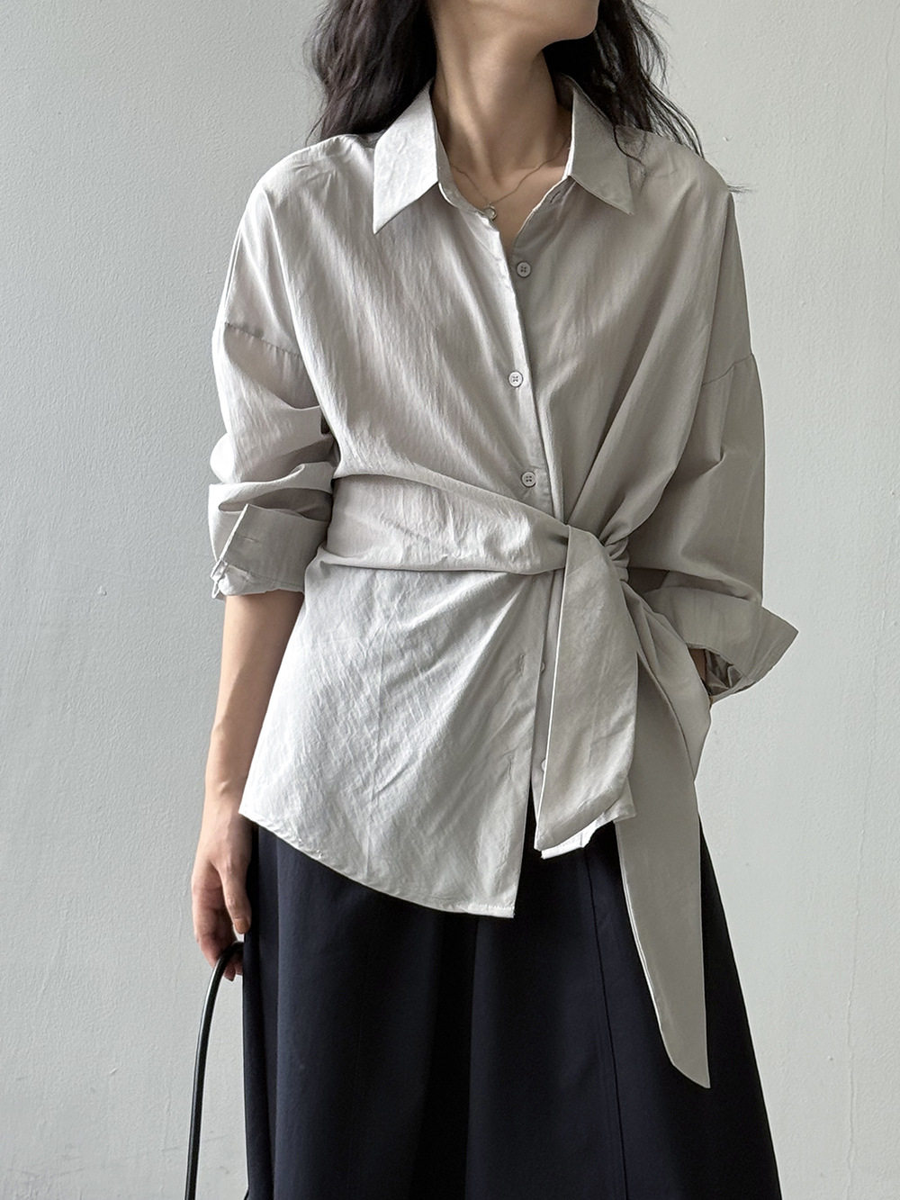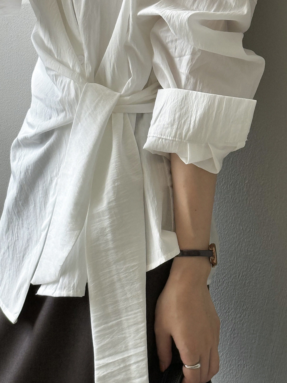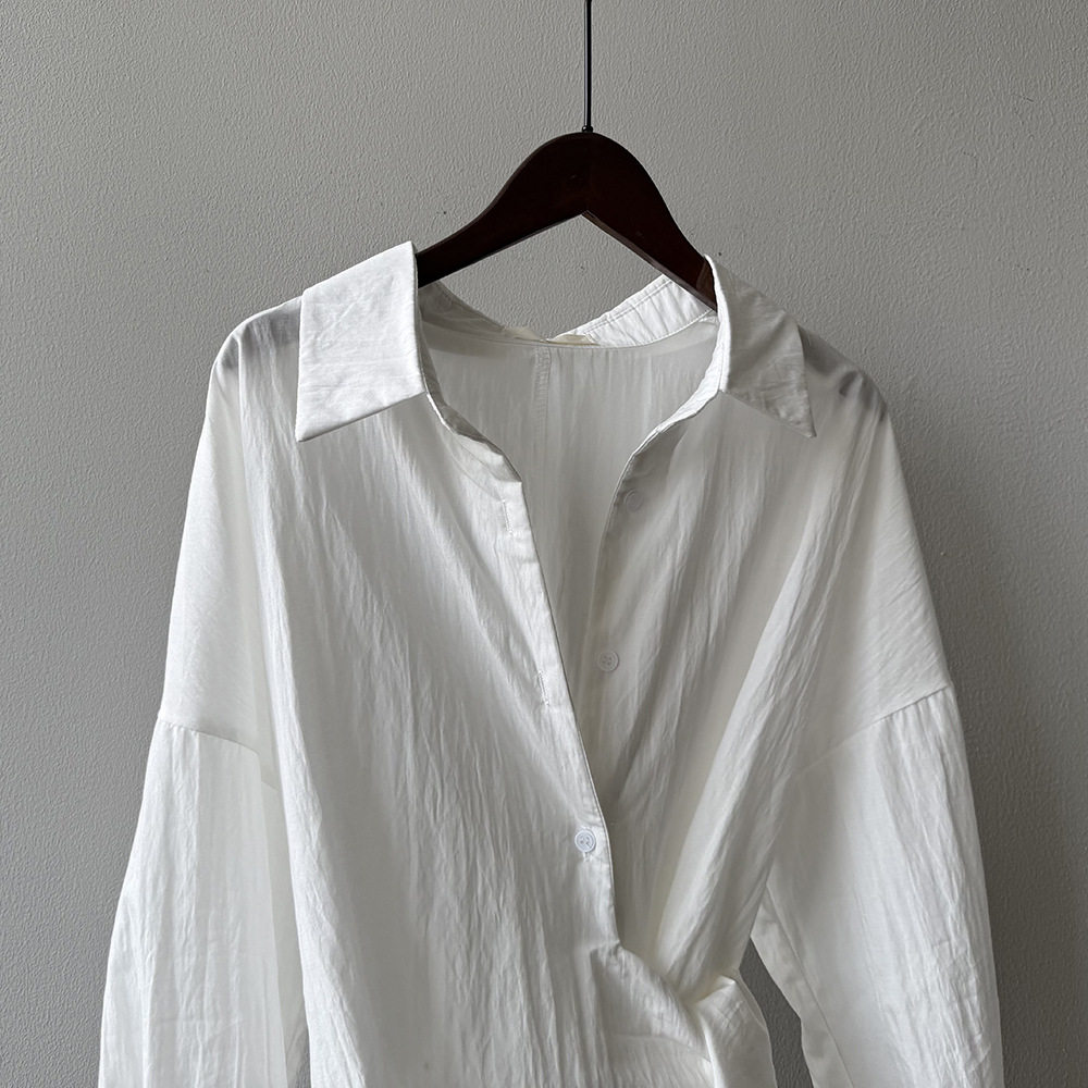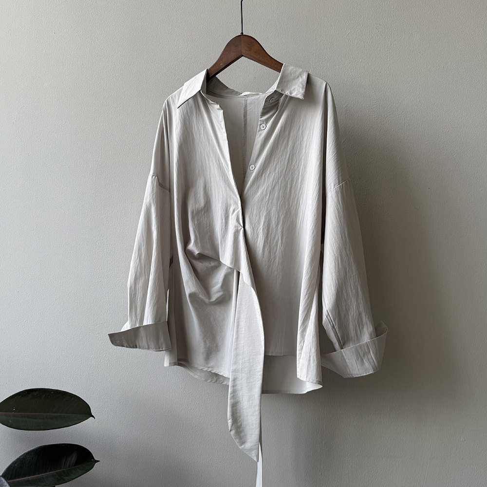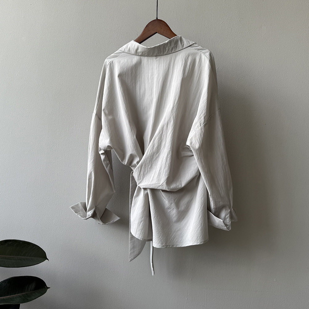 【商品名】【トップス】テンセルコットン ウエストリボン シャツ レディース 秋新作 開襟シングルボタン ゆったり細見え シャツ【JZシリーズ】