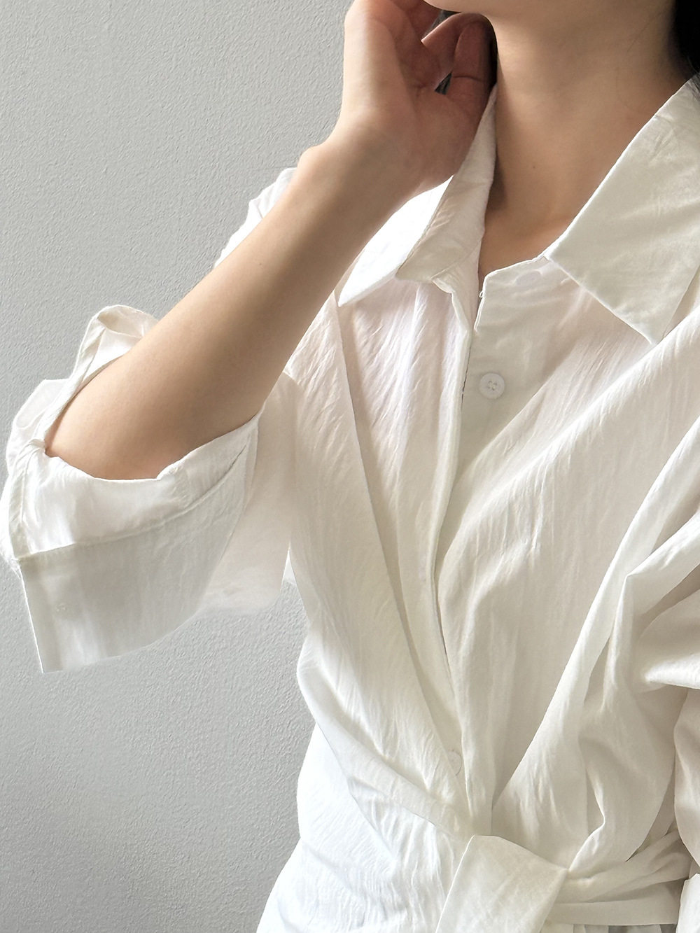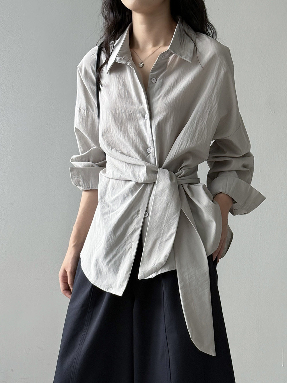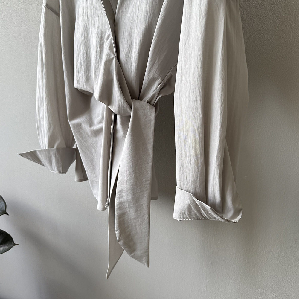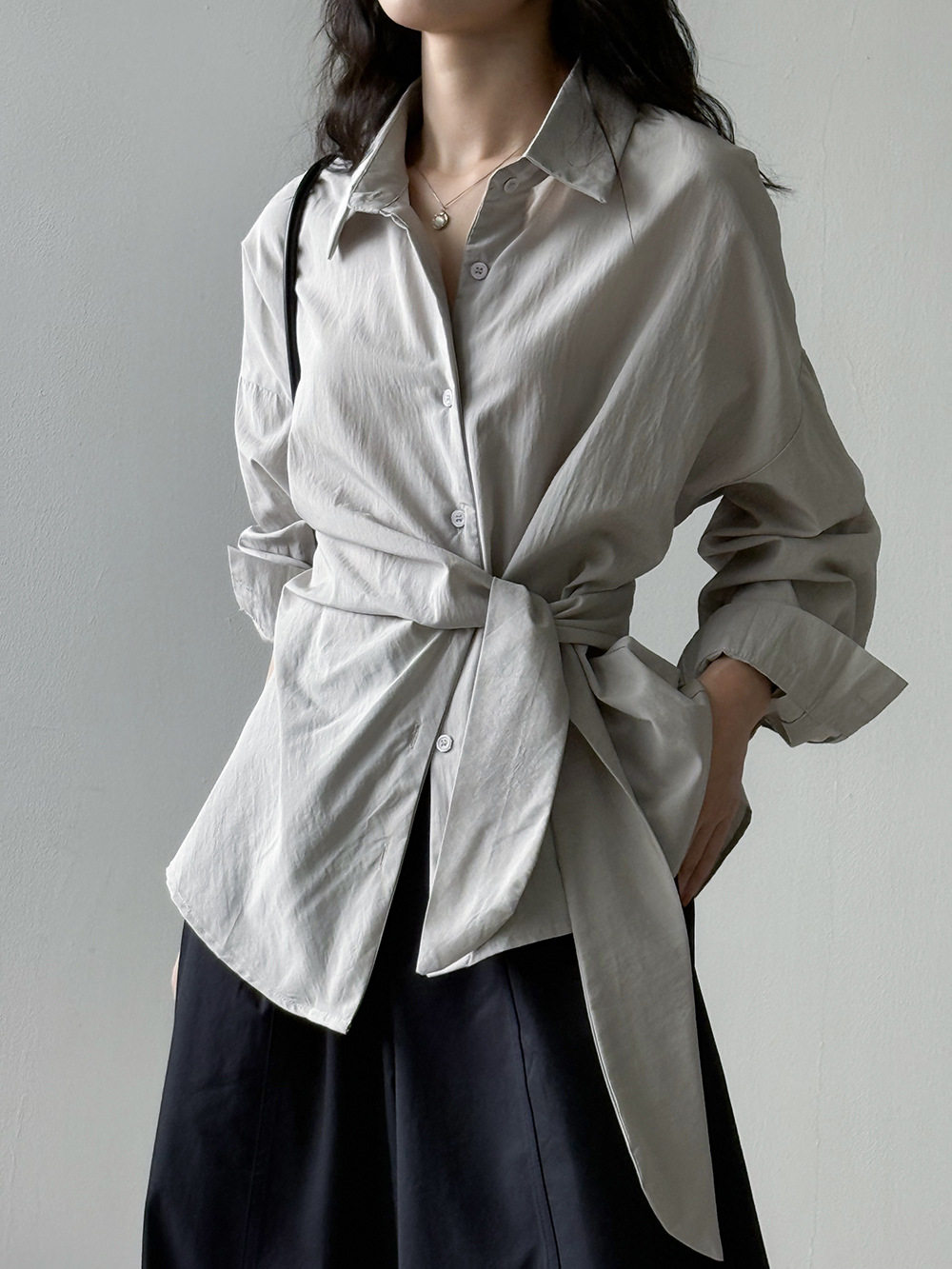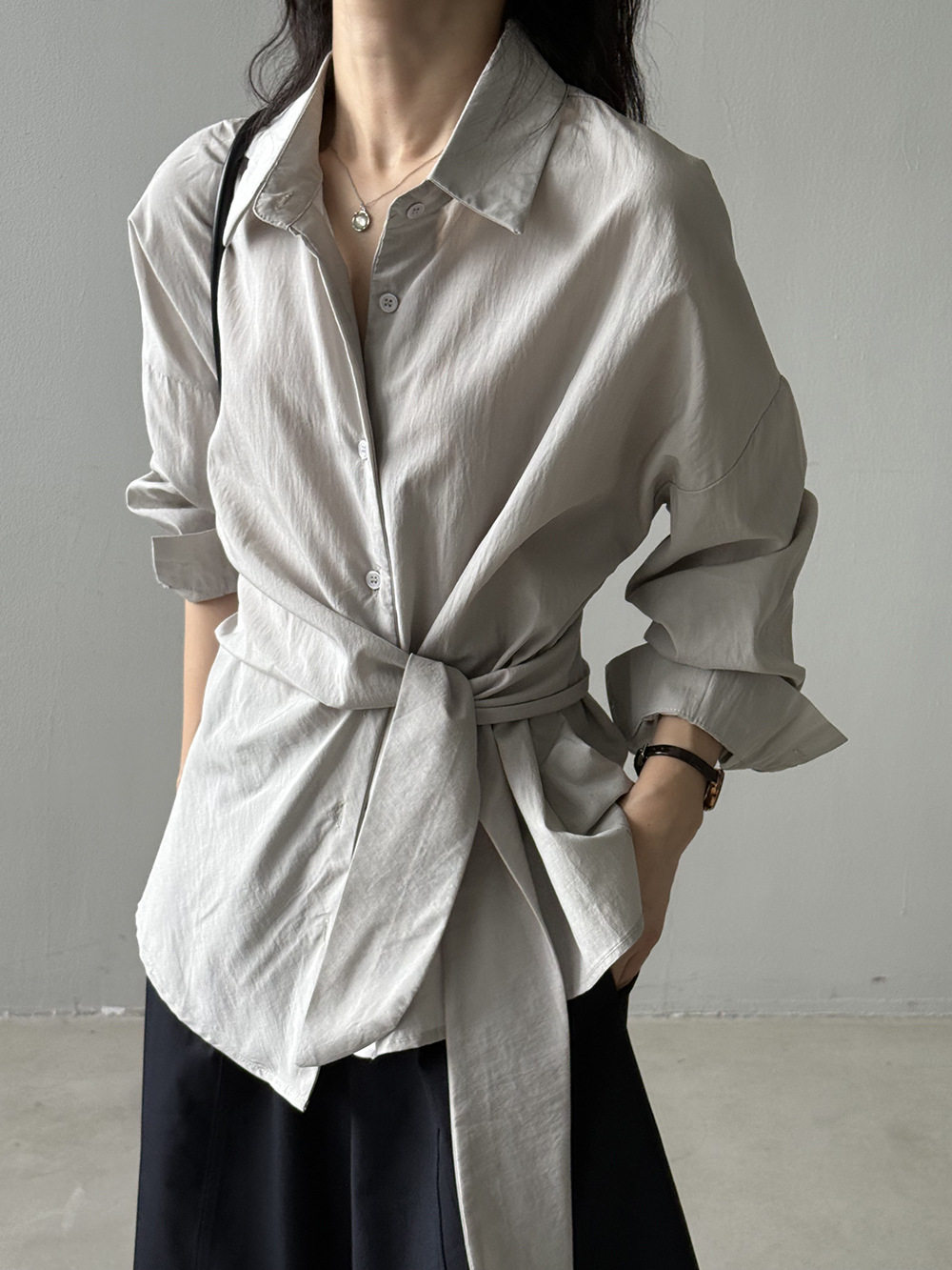 【商品名】【トップス】テンセルコットン ウエストリボン シャツ レディース 秋新作 開襟シングルボタン ゆったり細見え シャツ【JZシリーズ】