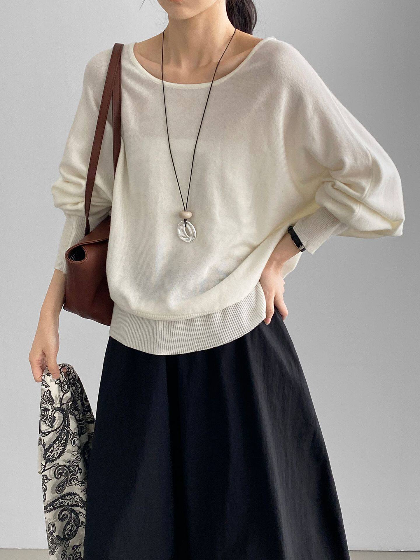 【トップス】ゆる感ニットトップス レディース 6%ウール混 素肌に優しい クルーネック 秋先取り ゆったりプルオーバー【JZシリーズ】