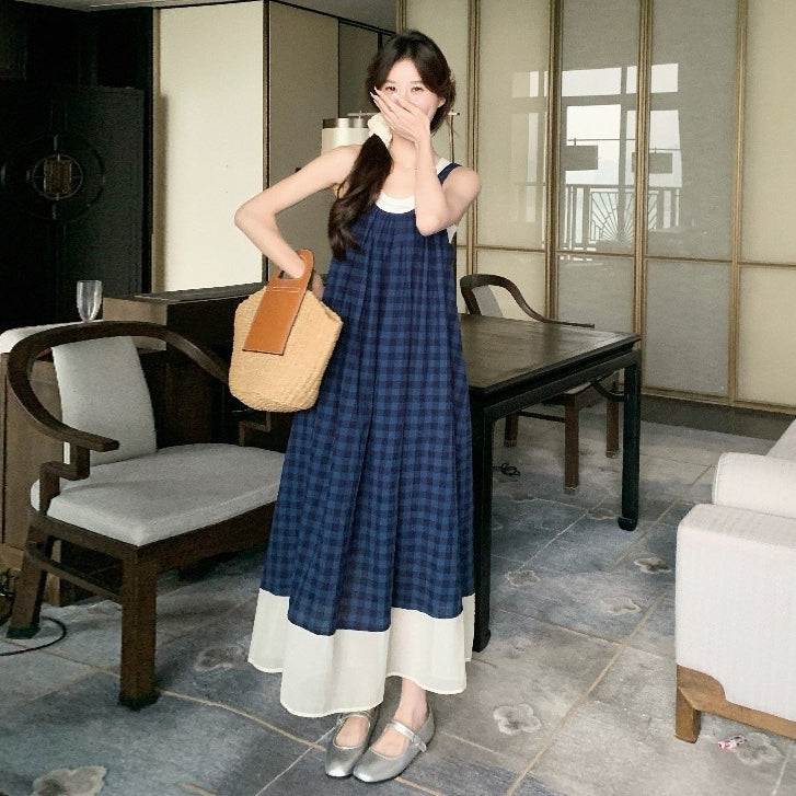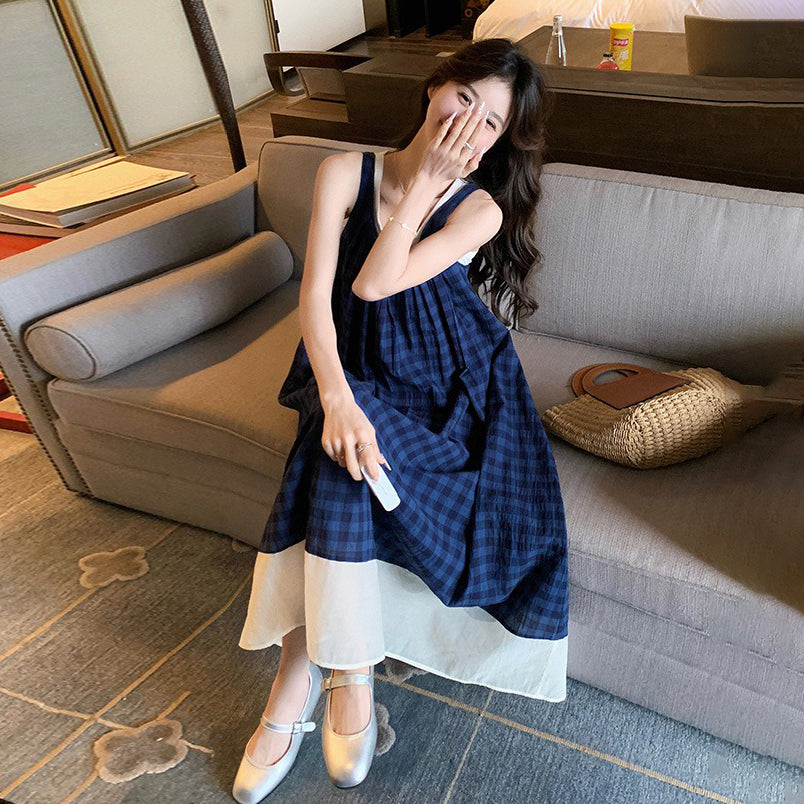 【ワンピース】スクール風 ブルーチェックキャミワンピース ノースリーブワンピース レディース【SHシリーズ】