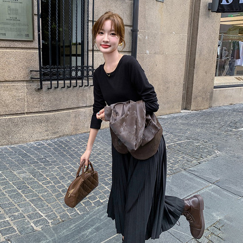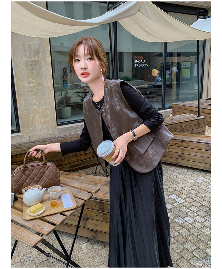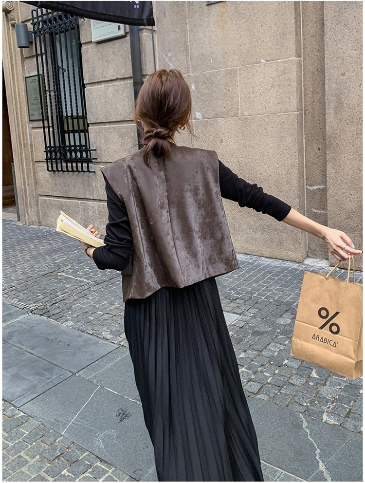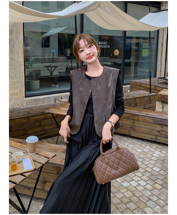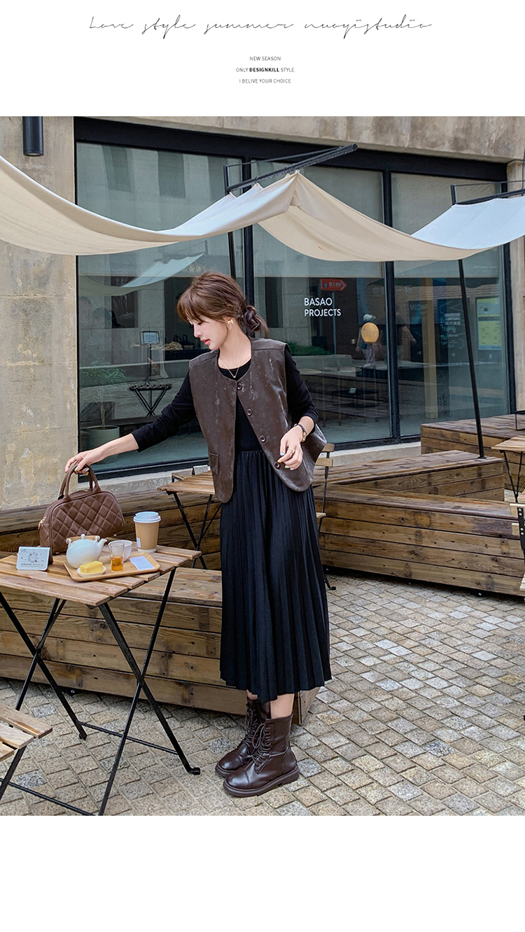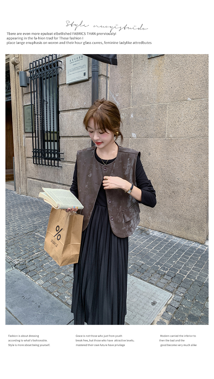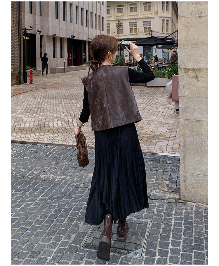 2点セット!【セットアップ】フレンチデザイン プリーツワンピース+ベスト セット 秋新作 大人カジュアル ファッションコーデ【JZシリーズ】