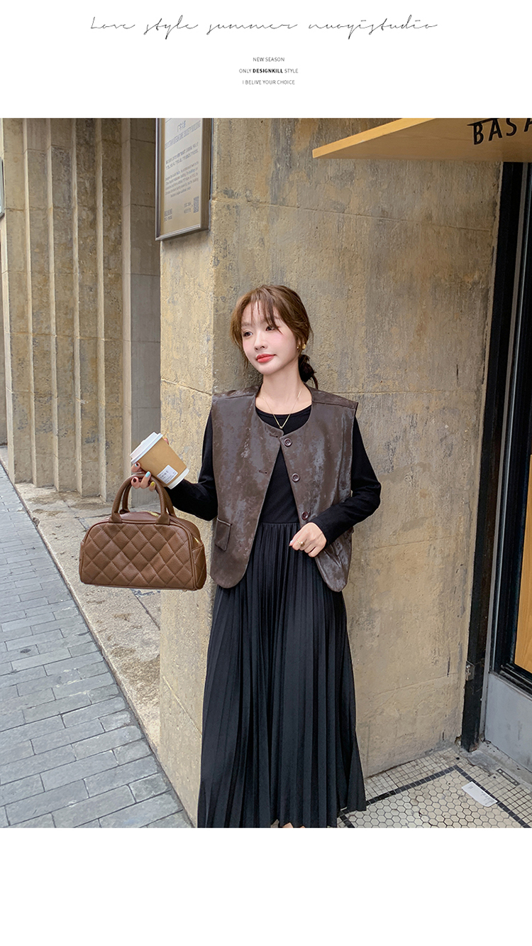 【商品名】2点セット!【セットアップ】フレンチデザイン プリーツワンピース+ベスト セット 秋新作 大人カジュアル ファッションコーデ【JZシリーズ】