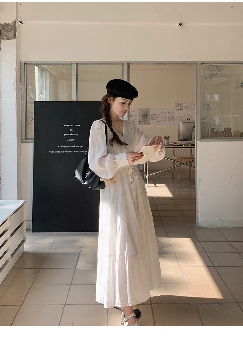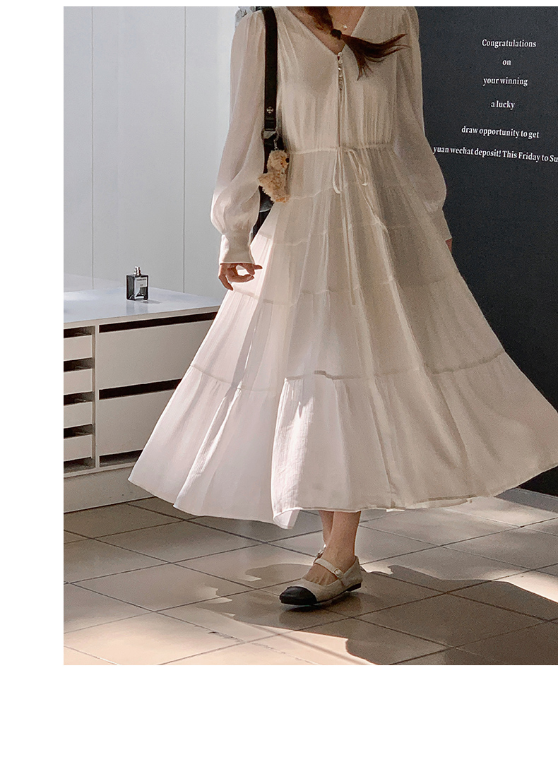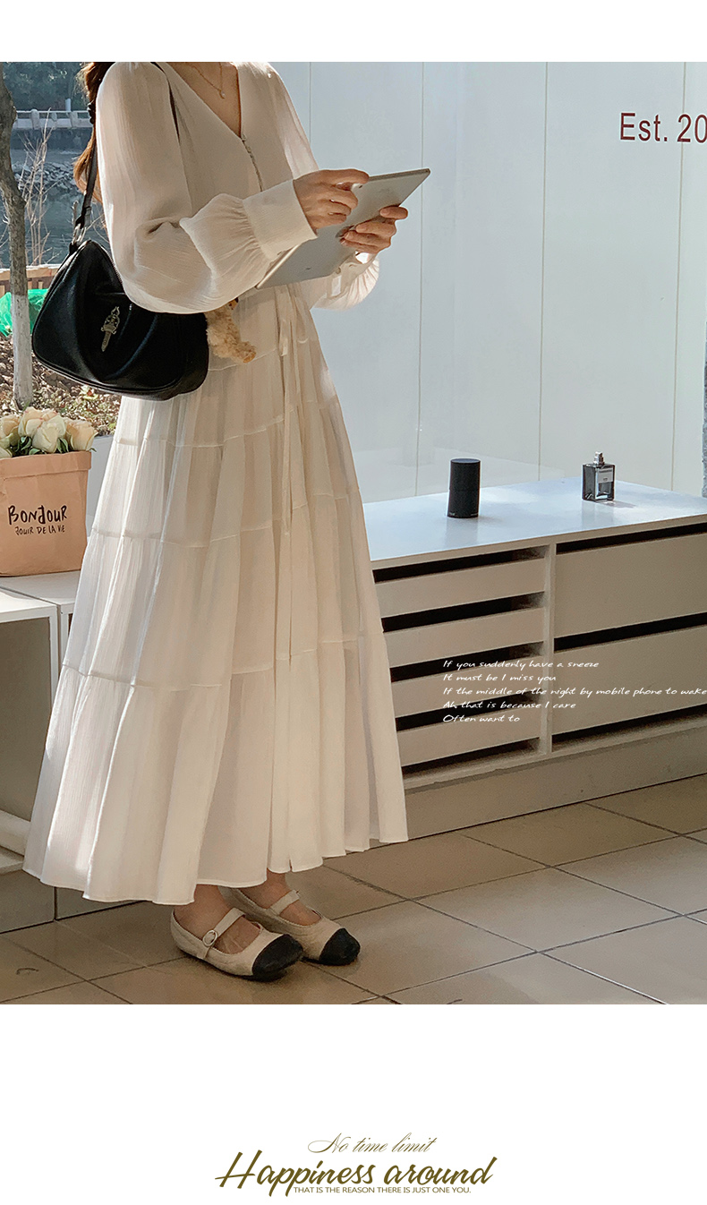【商品名】【ワンピース】フレンチ風 秋新作 優雅な気質 ミディ丈 スリム見え 長袖ワンピース【JZシリーズ】