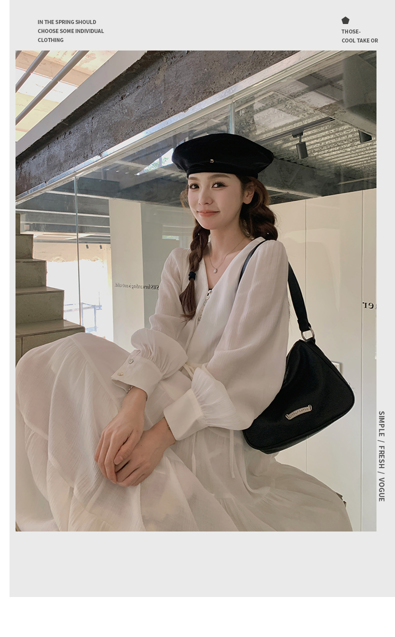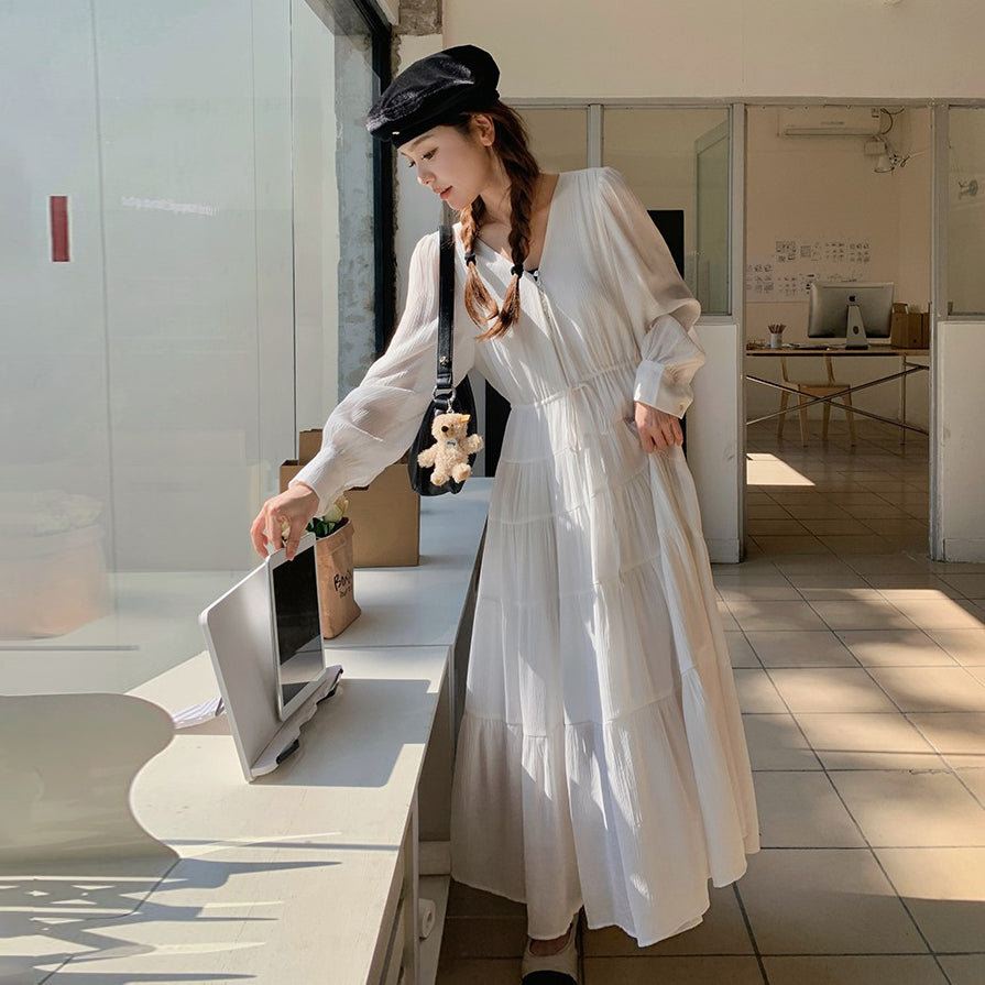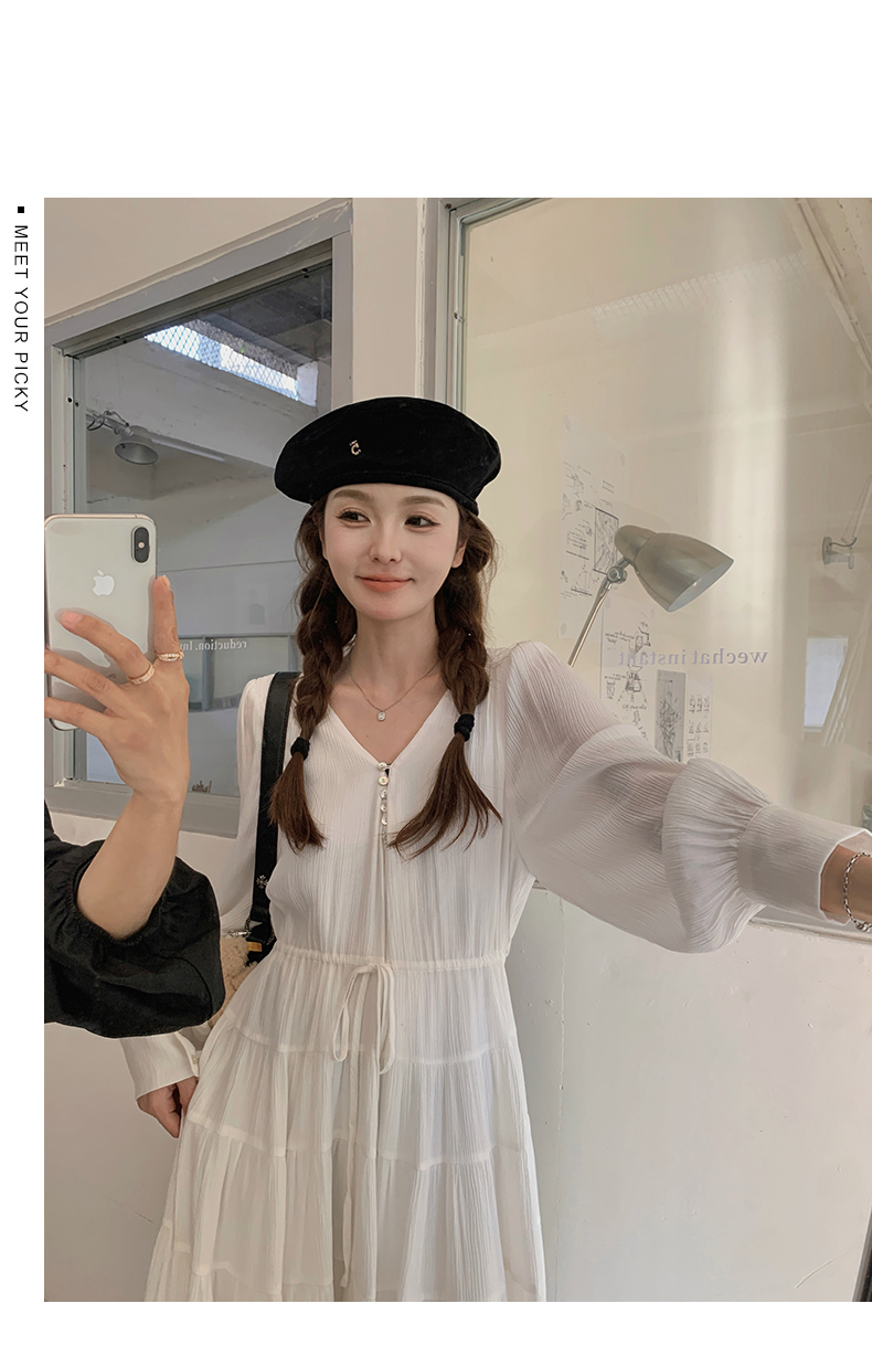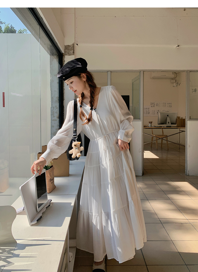 【商品名】【ワンピース】フレンチ風 秋新作 優雅な気質 ミディ丈 スリム見え 長袖ワンピース【JZシリーズ】