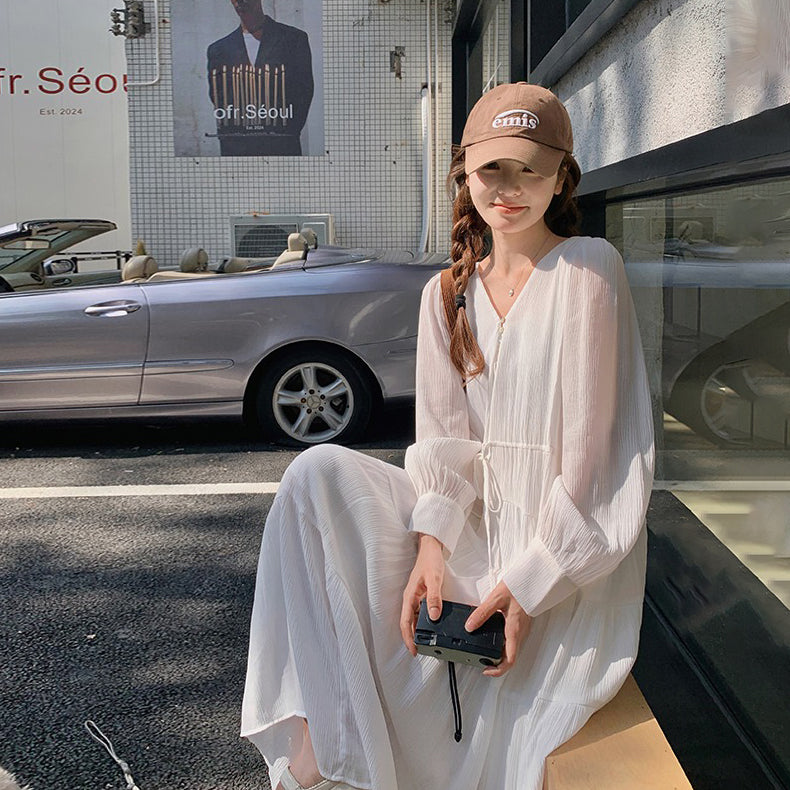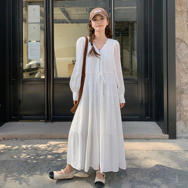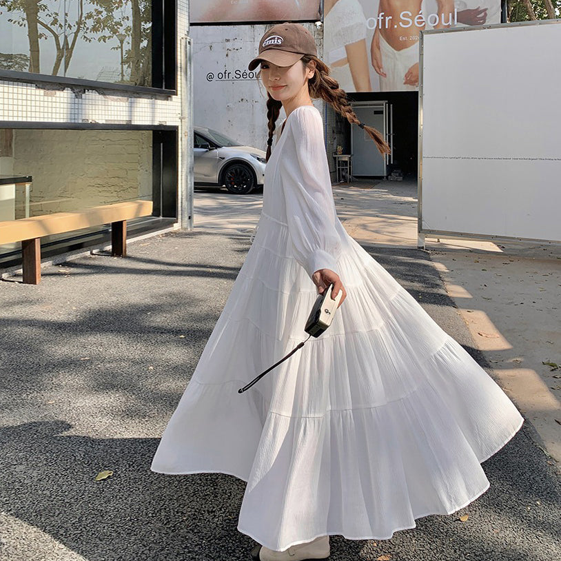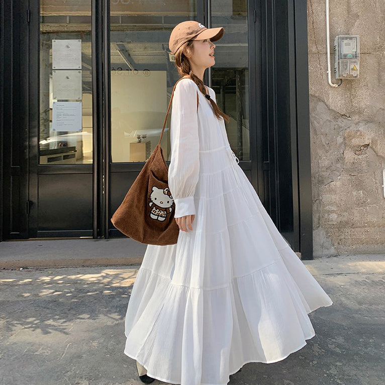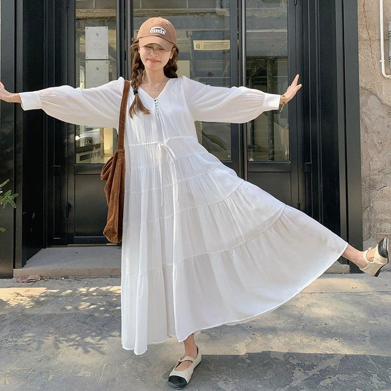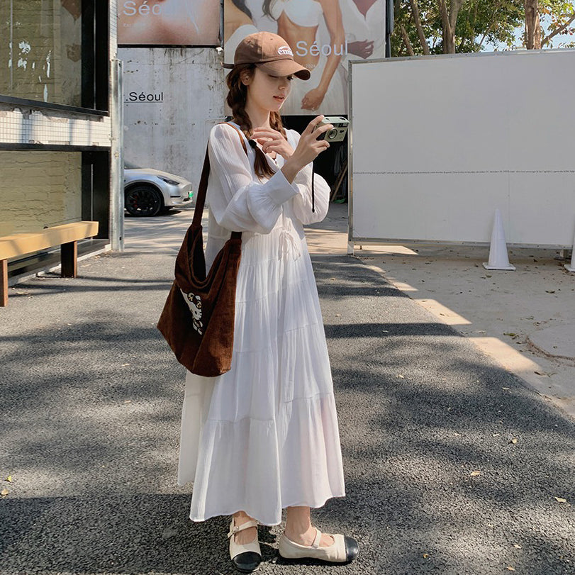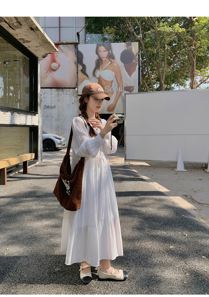 【ワンピース】フレンチ風 秋新作 優雅な気質 ミディ丈 スリム見え 長袖ワンピース【JZシリーズ】