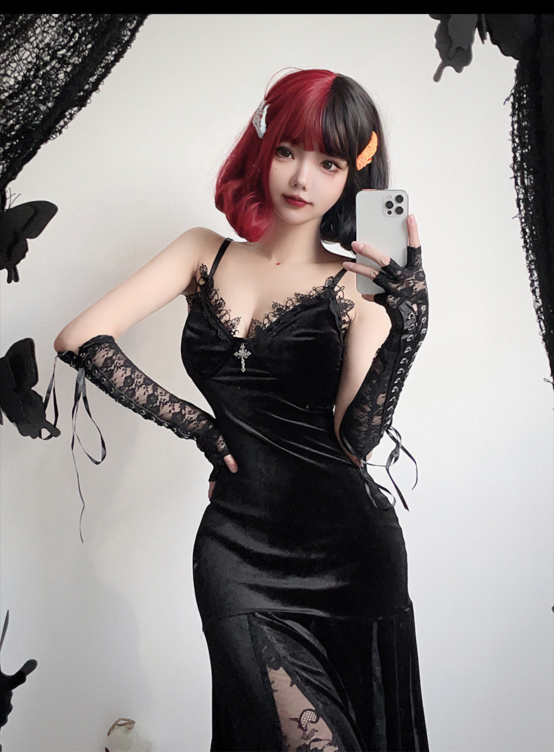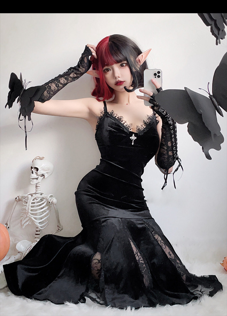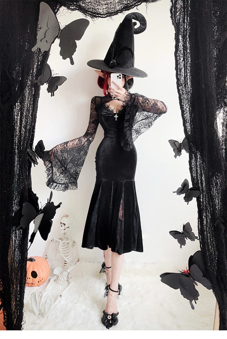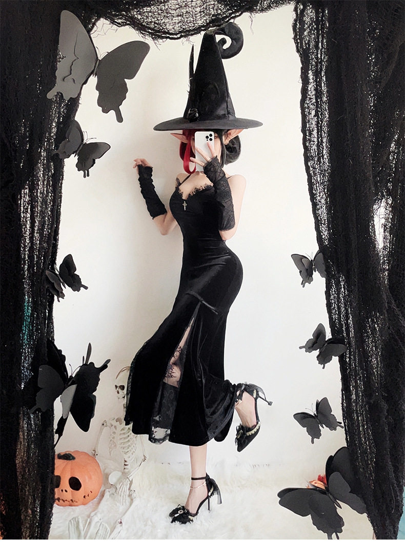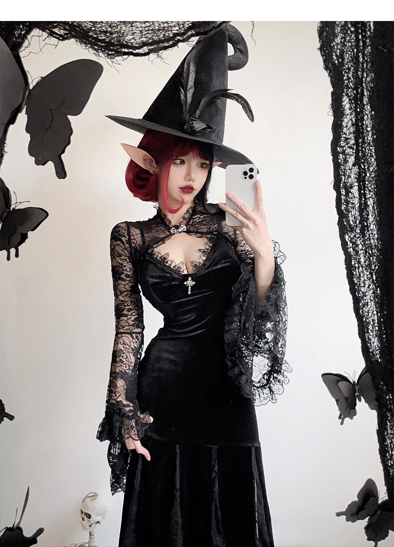 【ハロウィン】ゴシック風 コスプレ ドレス レディース セクシー チャイナ風 ロングワンピース 魔女風衣装