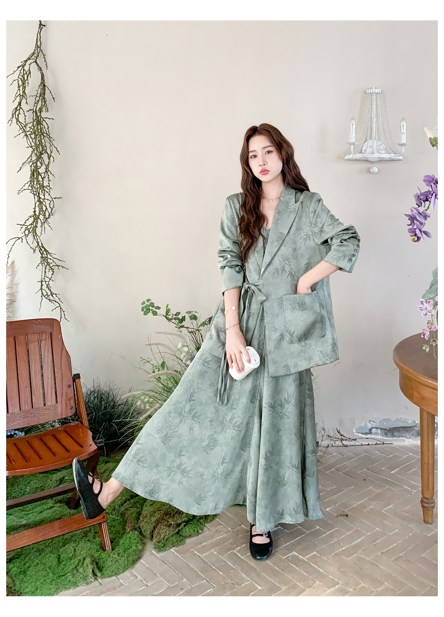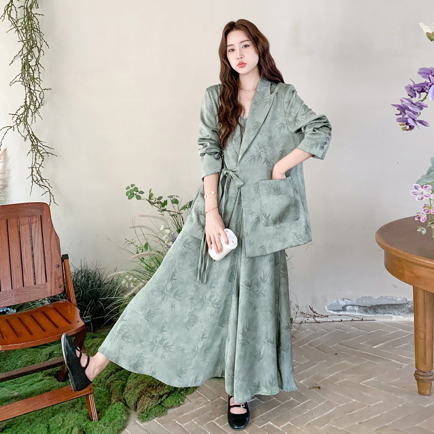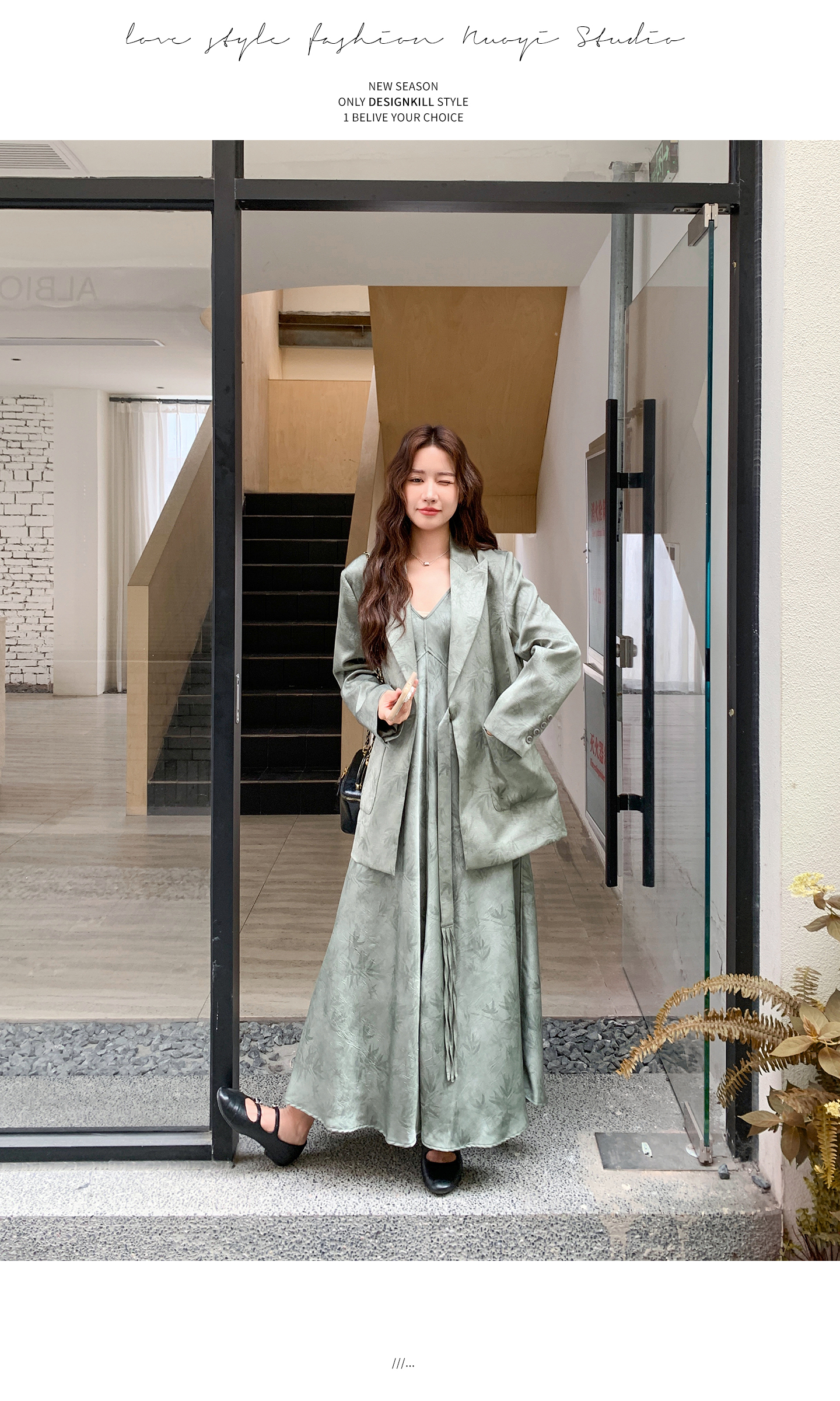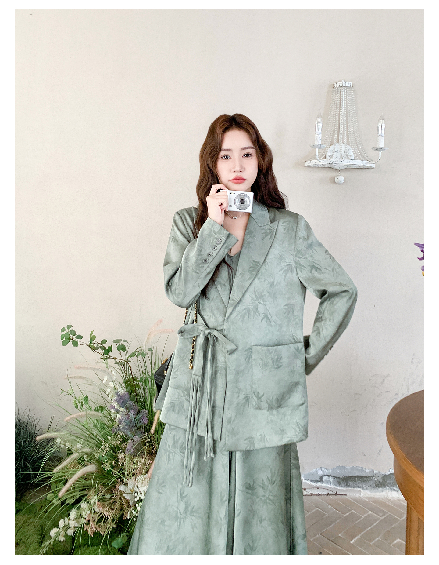 2点セット!【セットアップ】中国風 竹柄 レディース 秋新作 ジャケット+キャミワンピース【SHシリーズ】