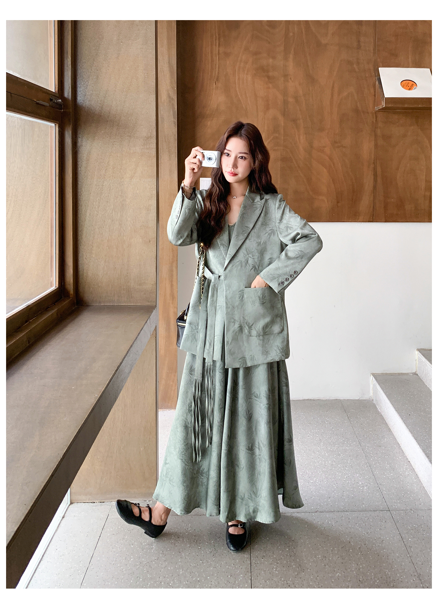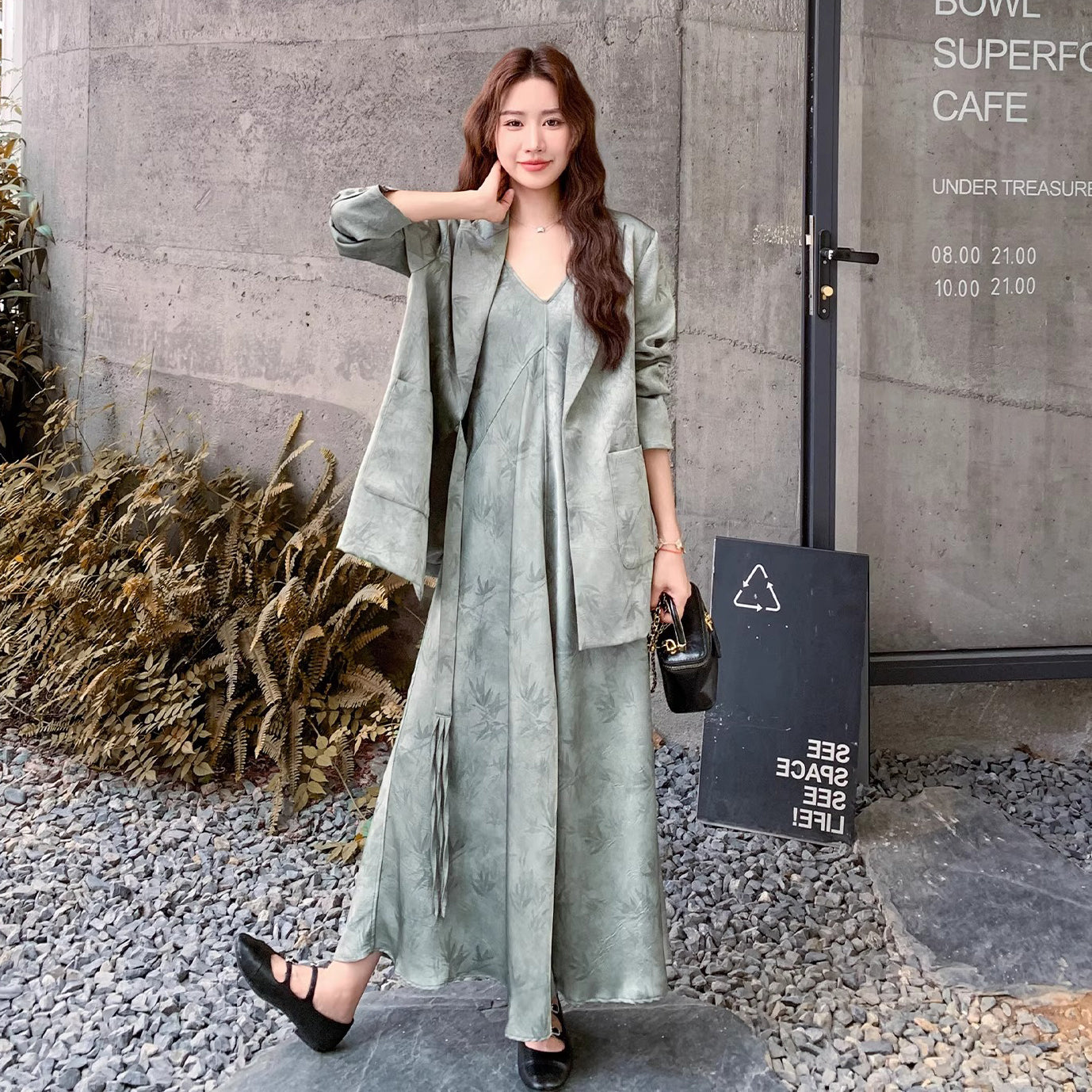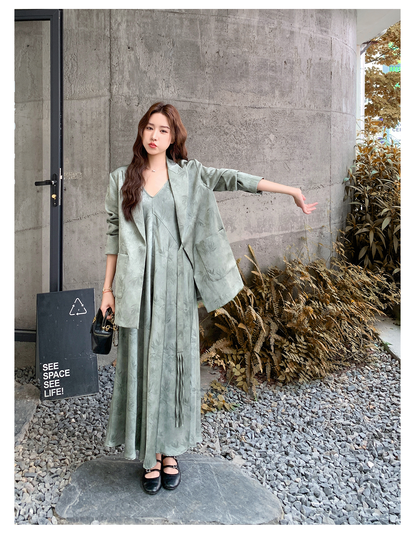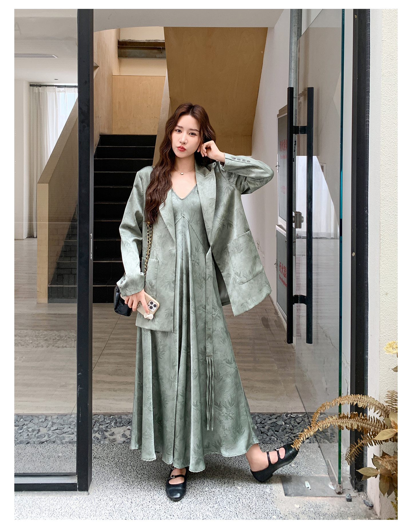 2点セット!【セットアップ】中国風 竹柄 レディース 秋新作 ジャケット+キャミワンピース【SHシリーズ】