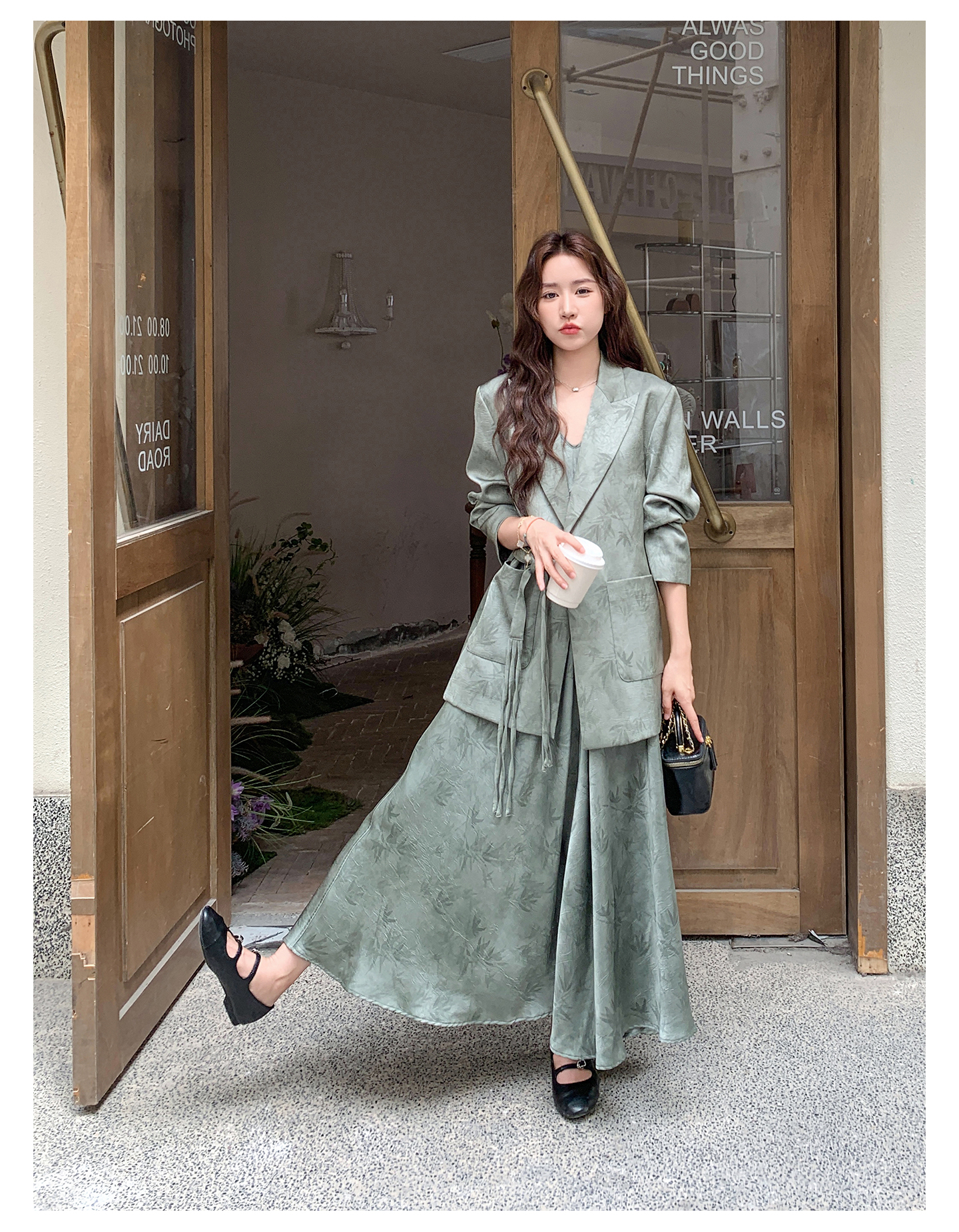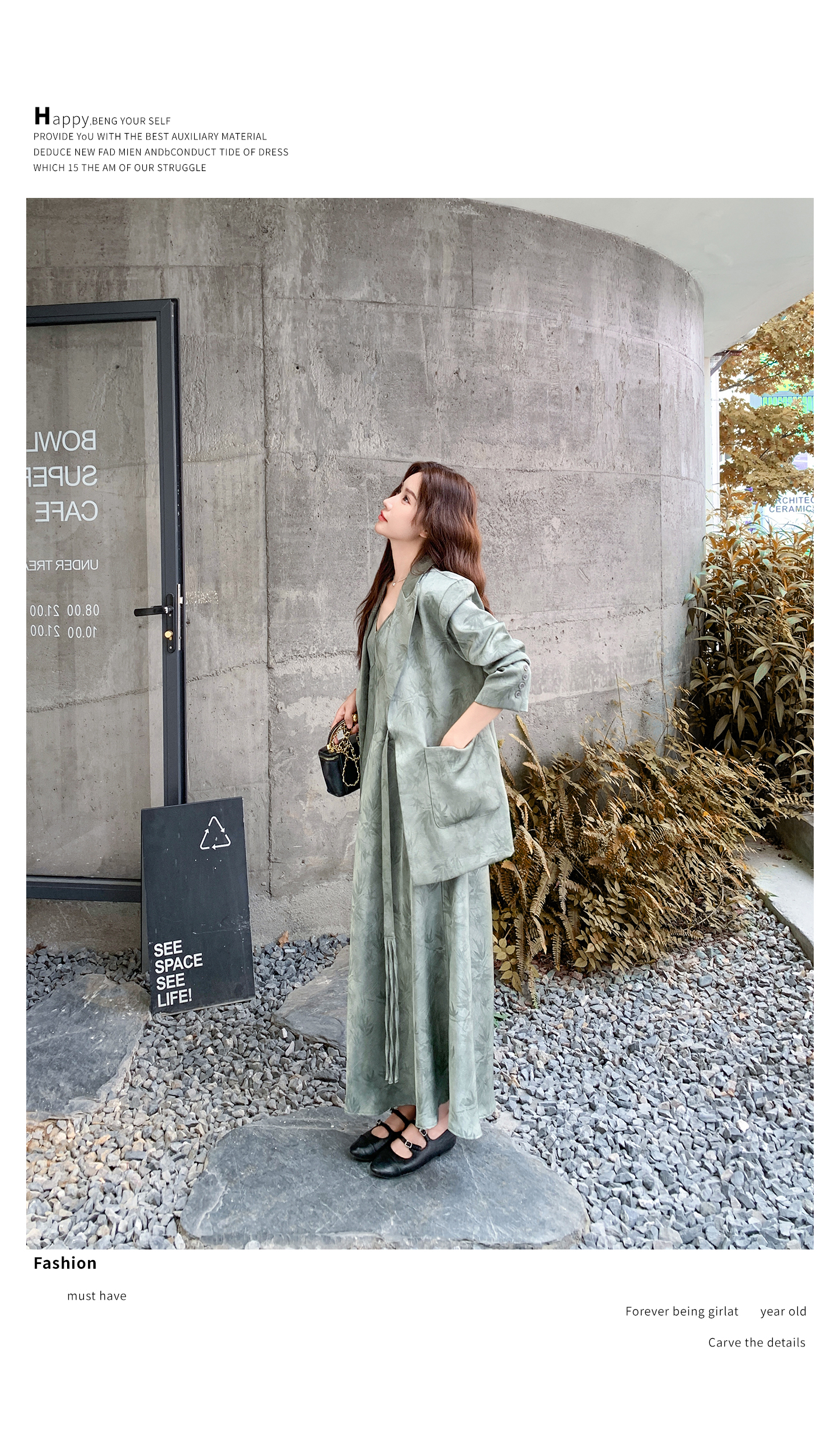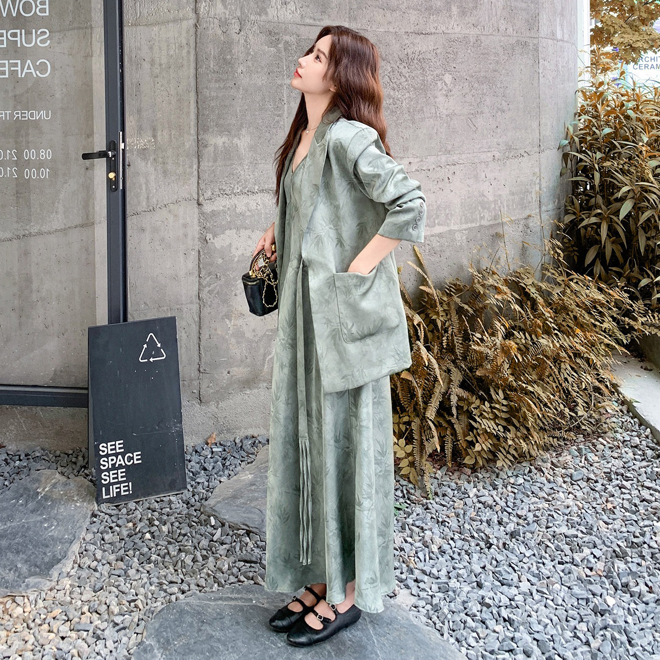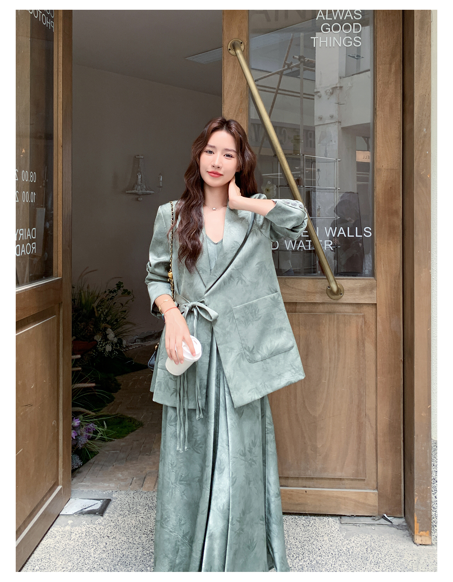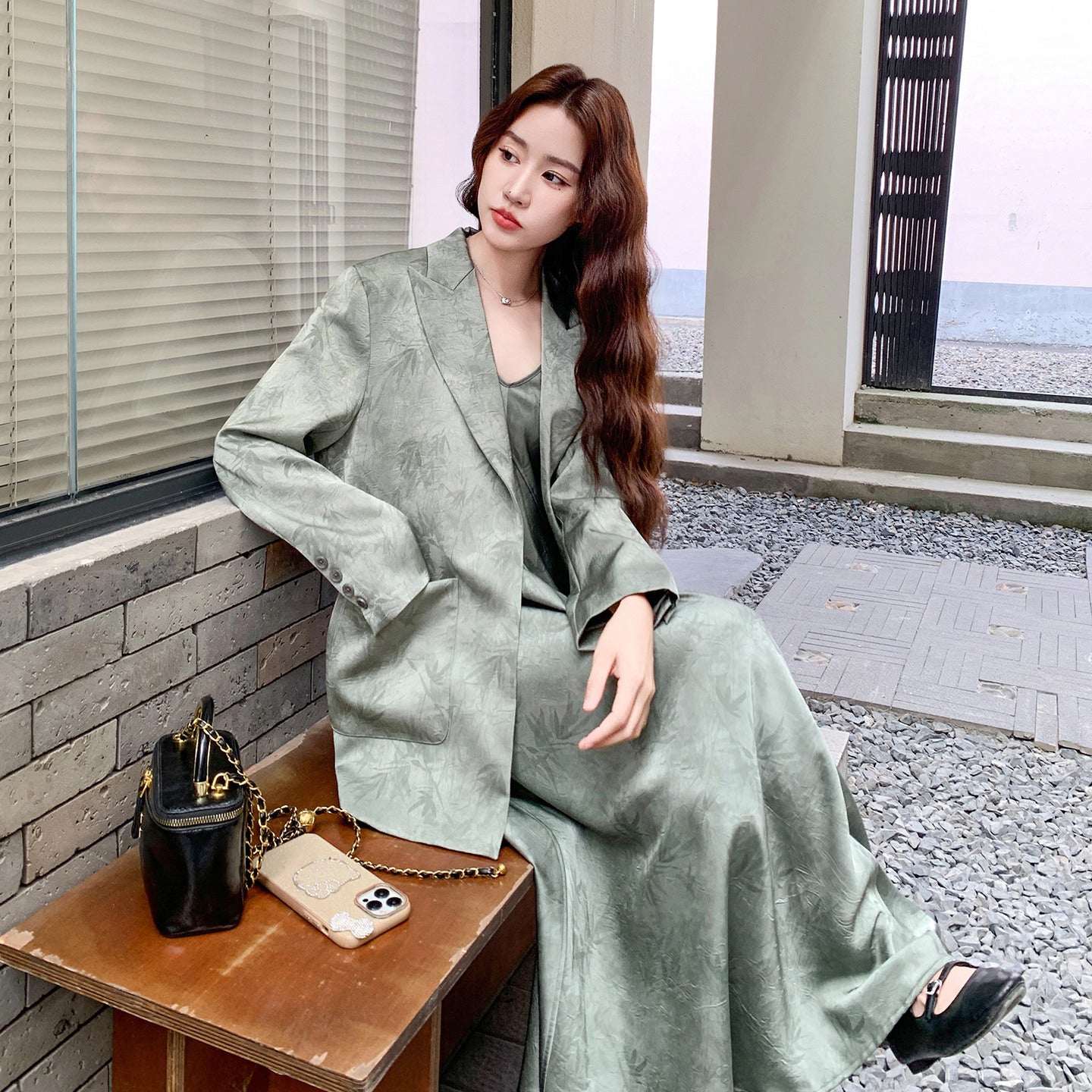 2点セット!【セットアップ】中国風 竹柄 レディース 秋新作 ジャケット+キャミワンピース【SHシリーズ】