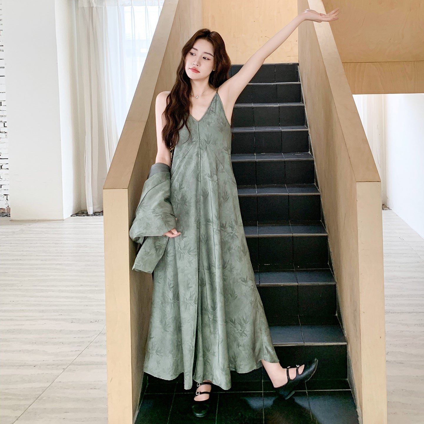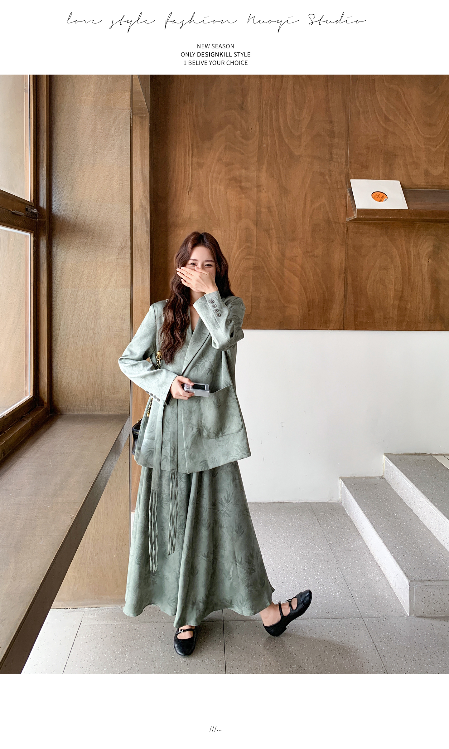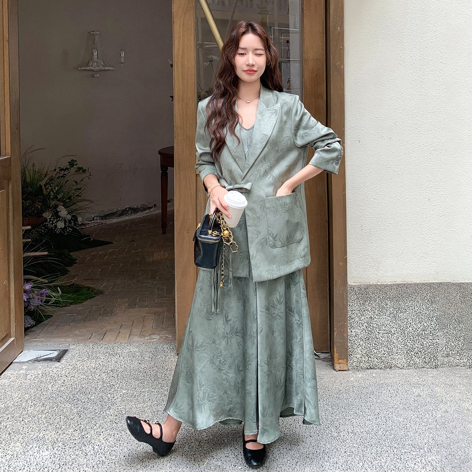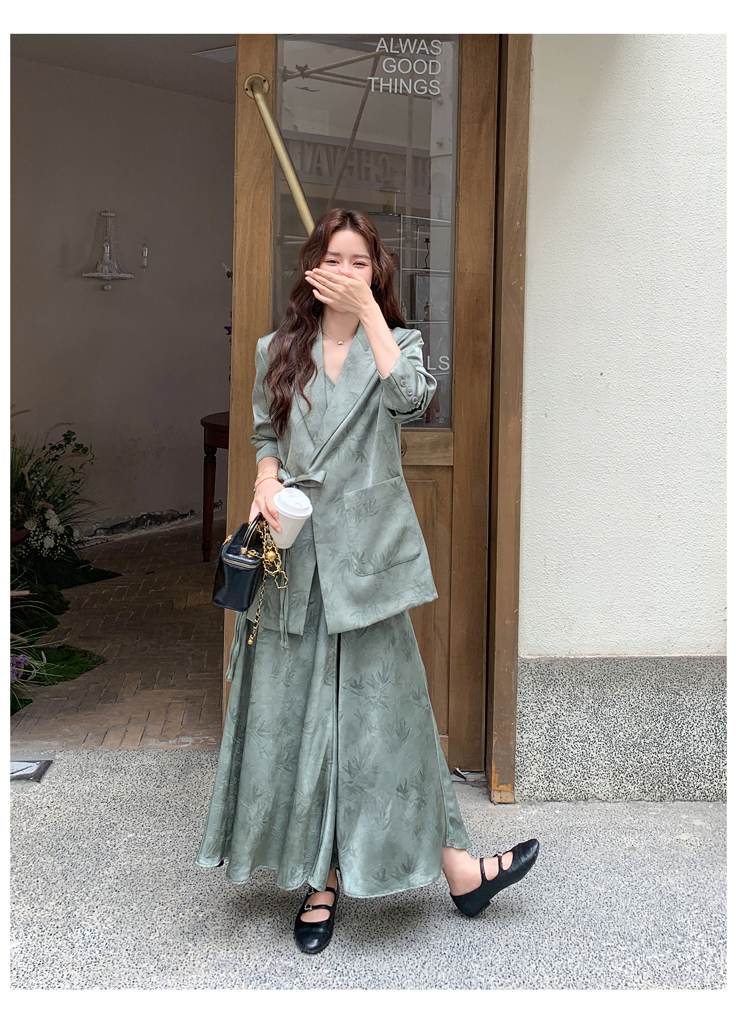 2点セット!【セットアップ】中国風 竹柄 レディース 秋新作 ジャケット+キャミワンピース【SHシリーズ】