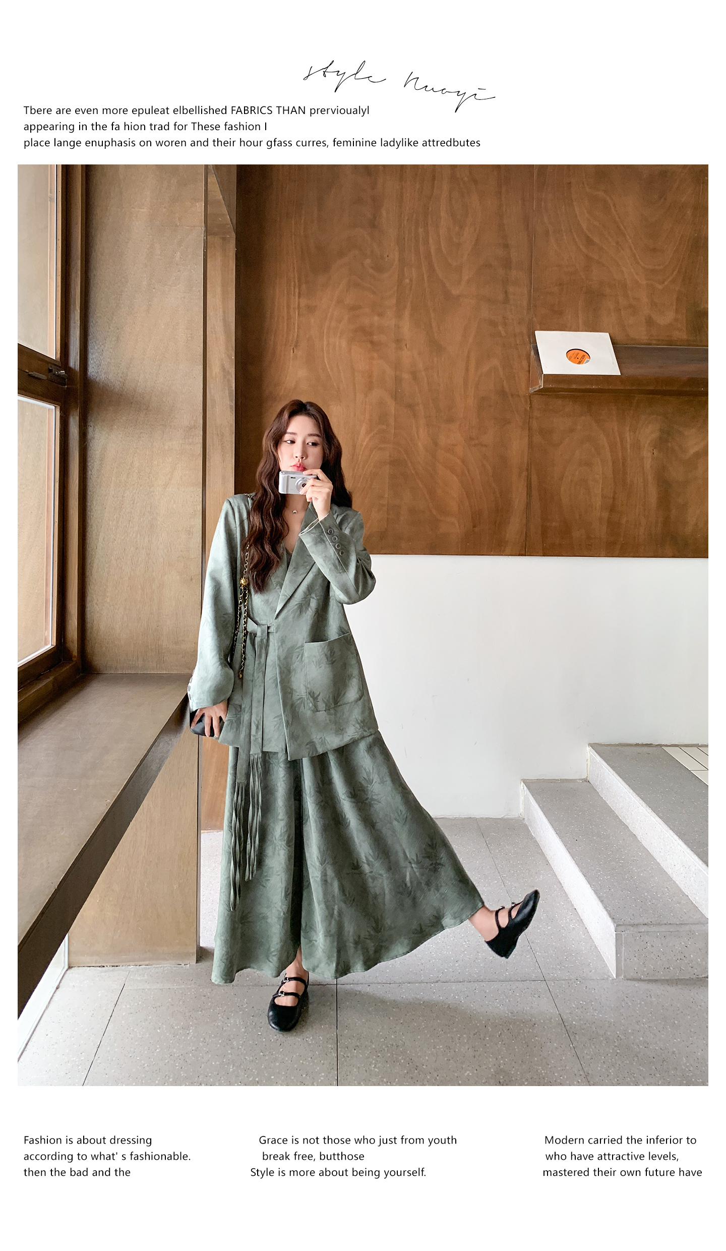 【商品名】2点セット!【セットアップ】中国風 竹柄 レディース 秋新作 ジャケット+キャミワンピース【SHシリーズ】