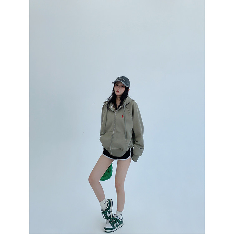 【トップス】ヴィンテージ調 りんごモチーフ刺繍 フードパーカー 秋 男女兼用 ゆったり カジュアル【FCシリーズ】