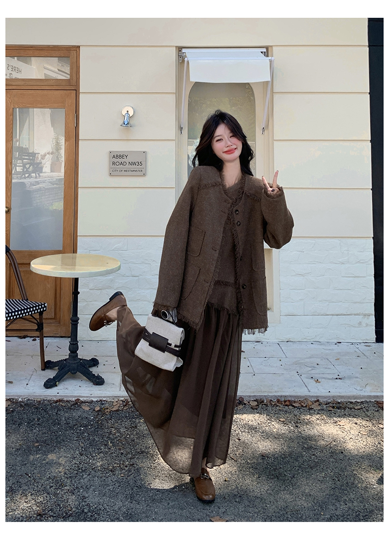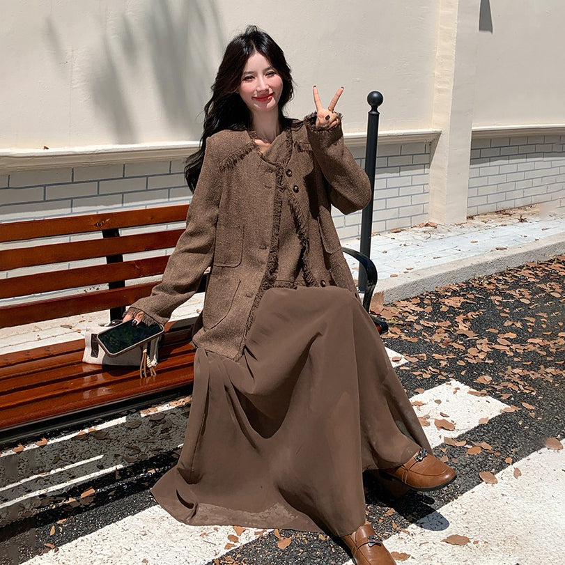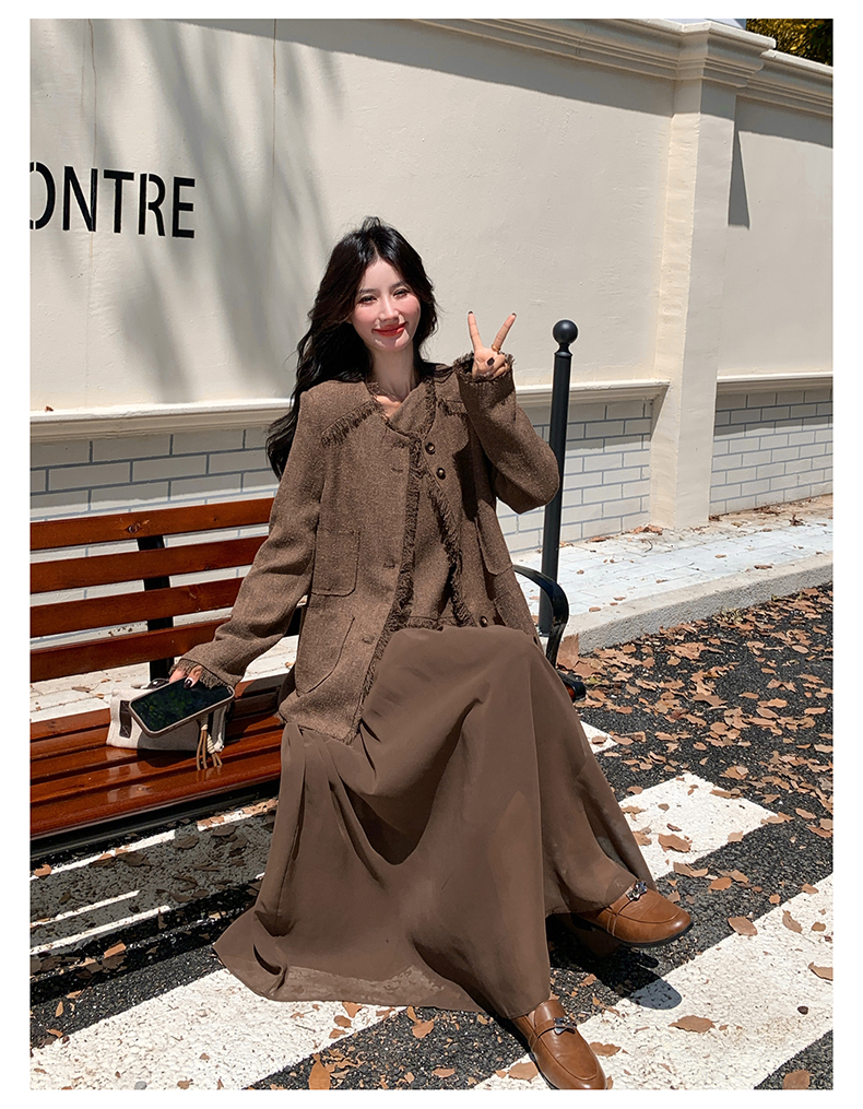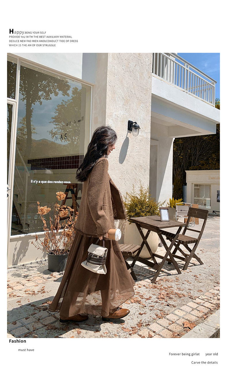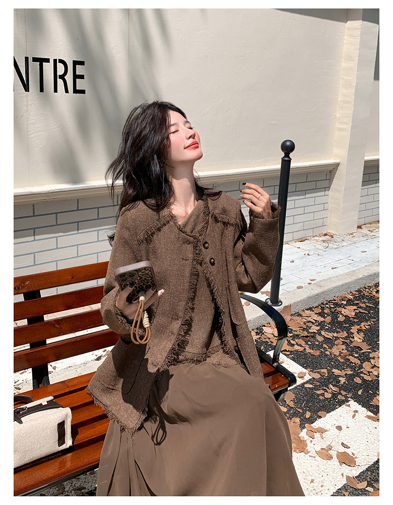 2点セット!【セットアップ】レトロ フレンチスタイル ジャケット+キャミソールワンピース 秋新作 上品 気質 上下セット【JZシリーズ】
