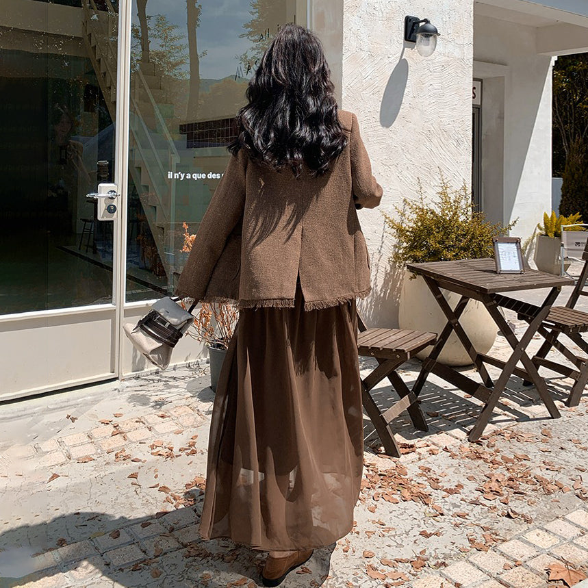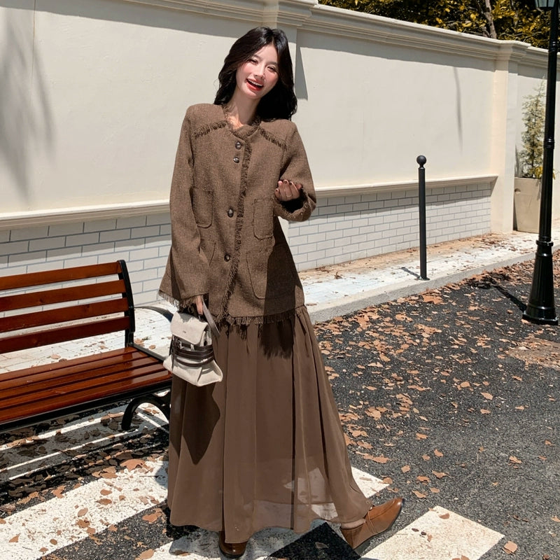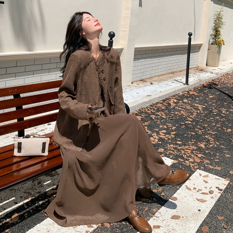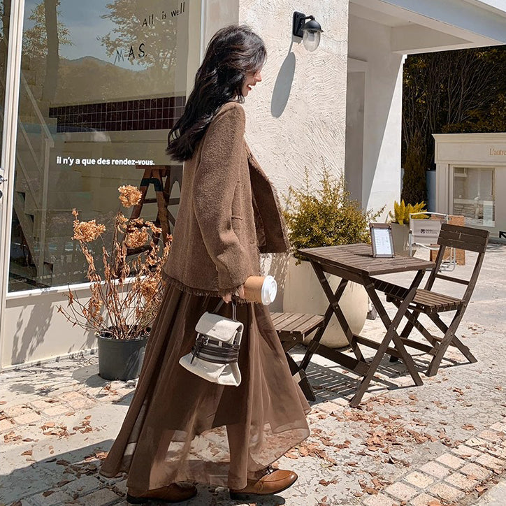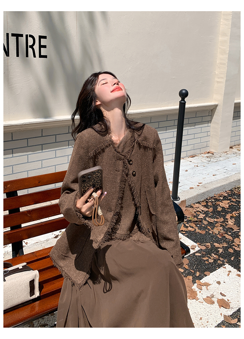 2点セット!【セットアップ】レトロ フレンチスタイル ジャケット+キャミソールワンピース 秋新作 上品 気質 上下セット【JZシリーズ】