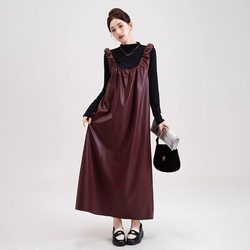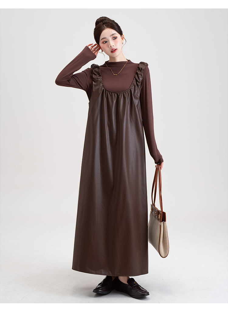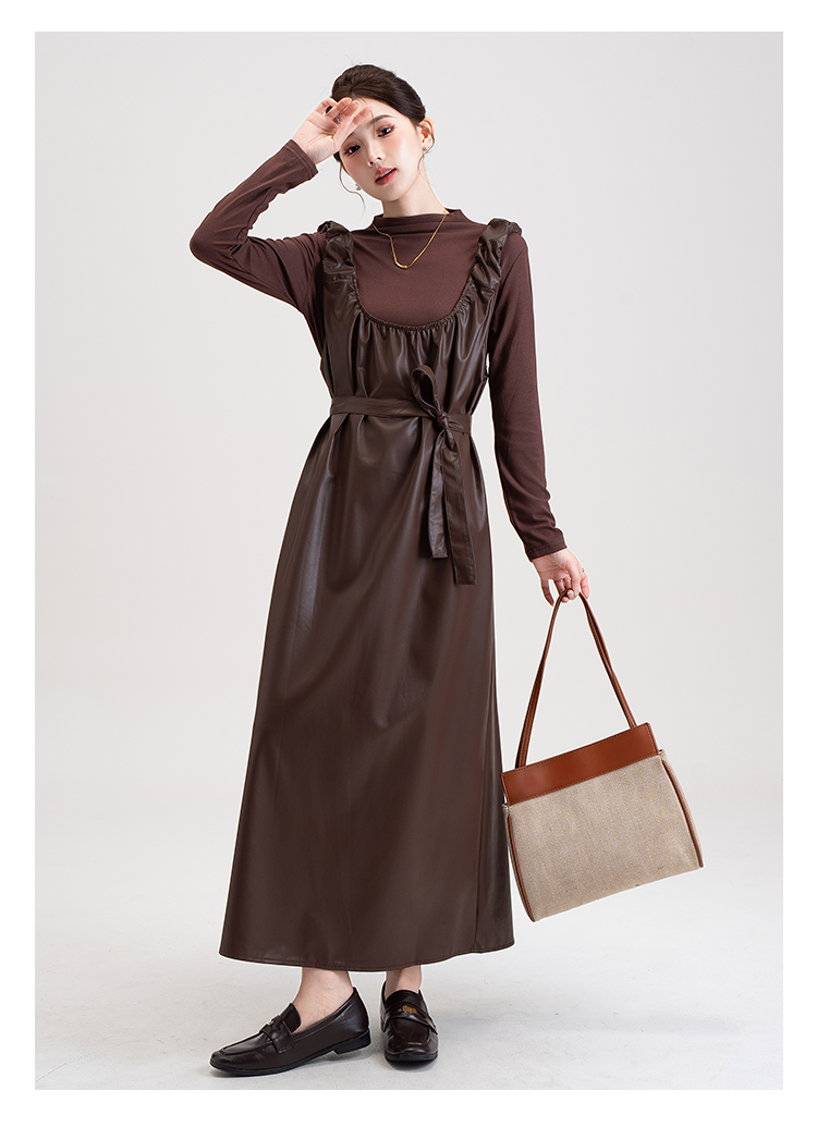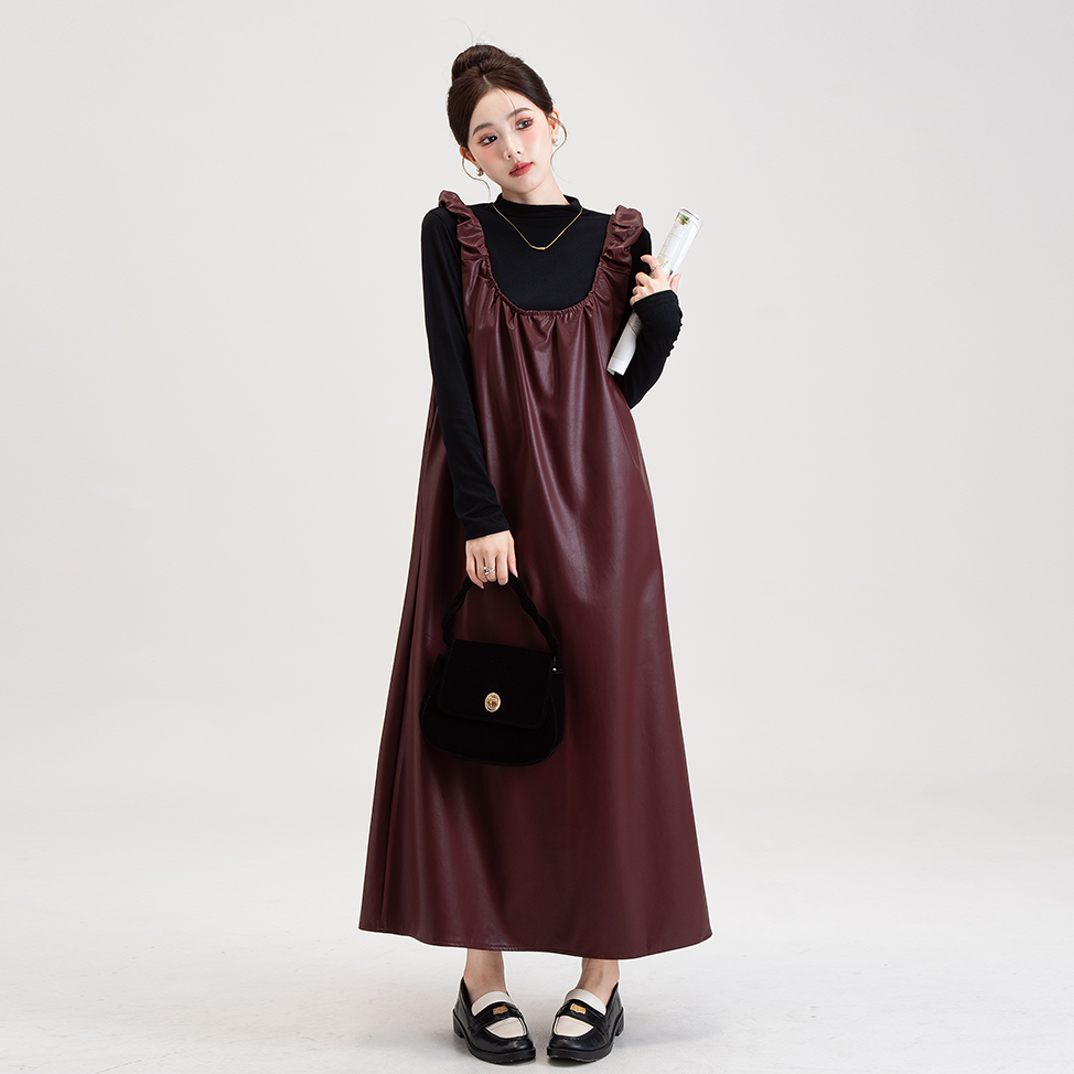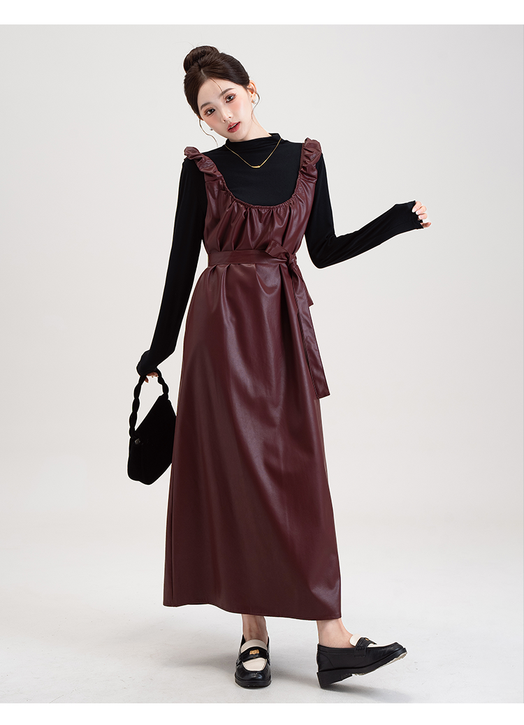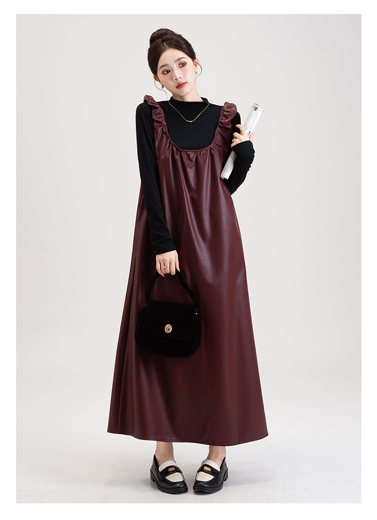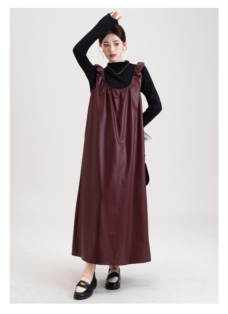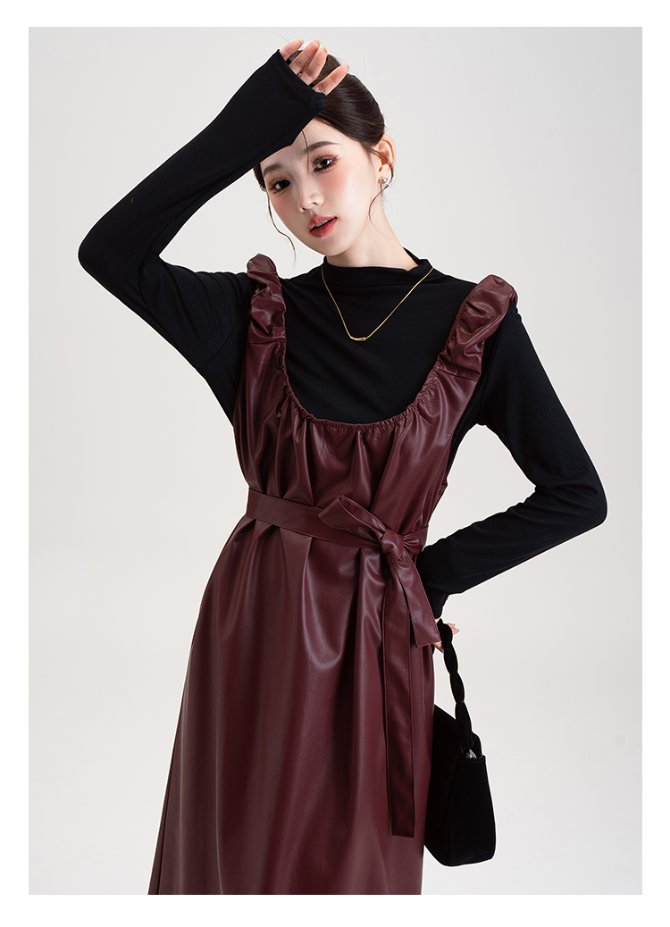 【商品名】【セットアップ】PUレザー ベストワンピース+インナー セットアップ レディース 細見え 2点セット