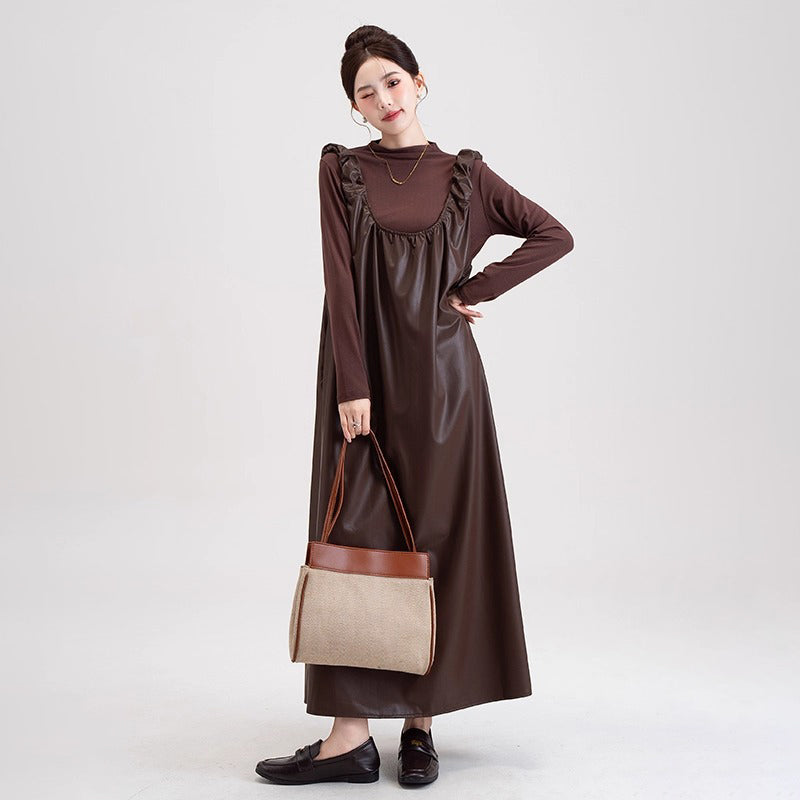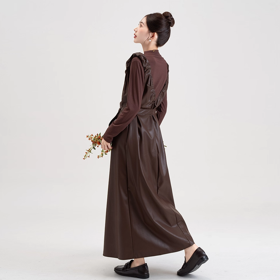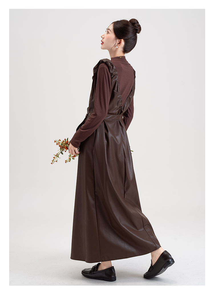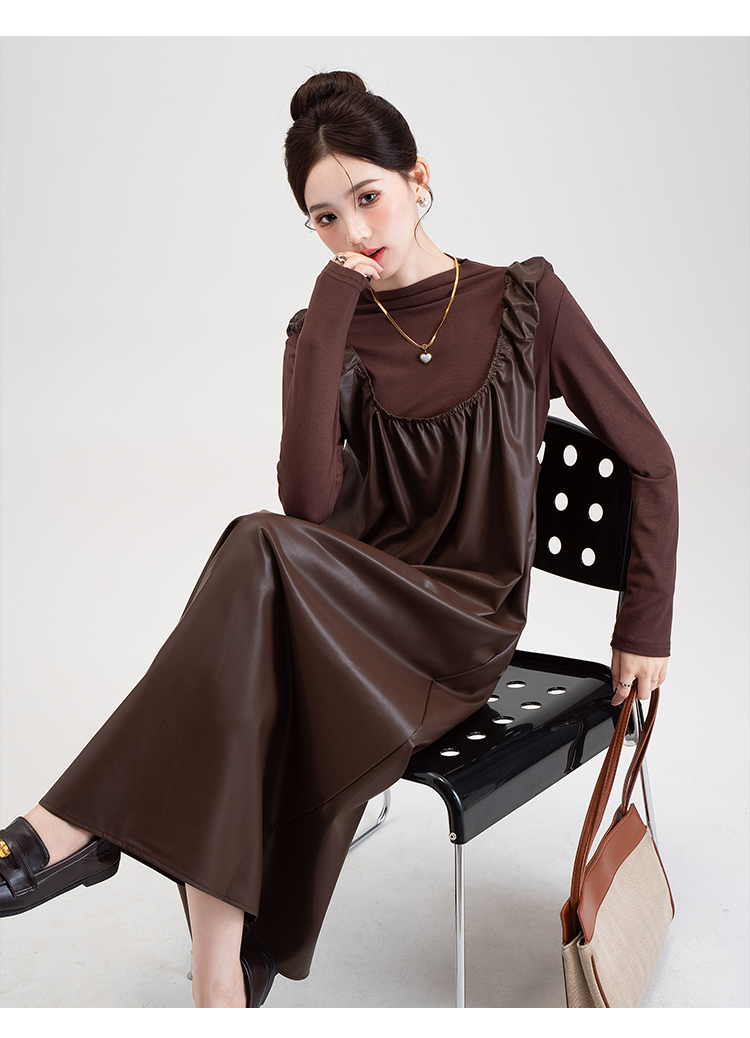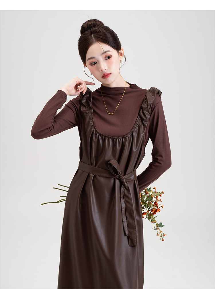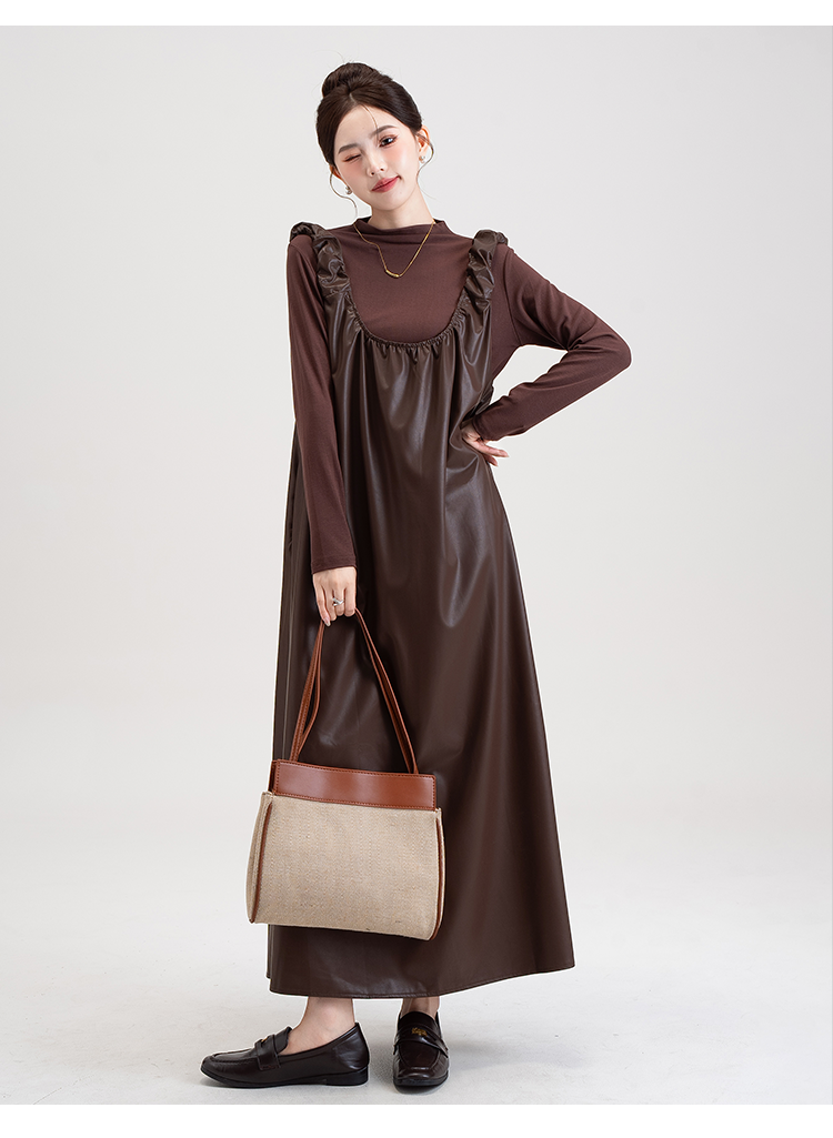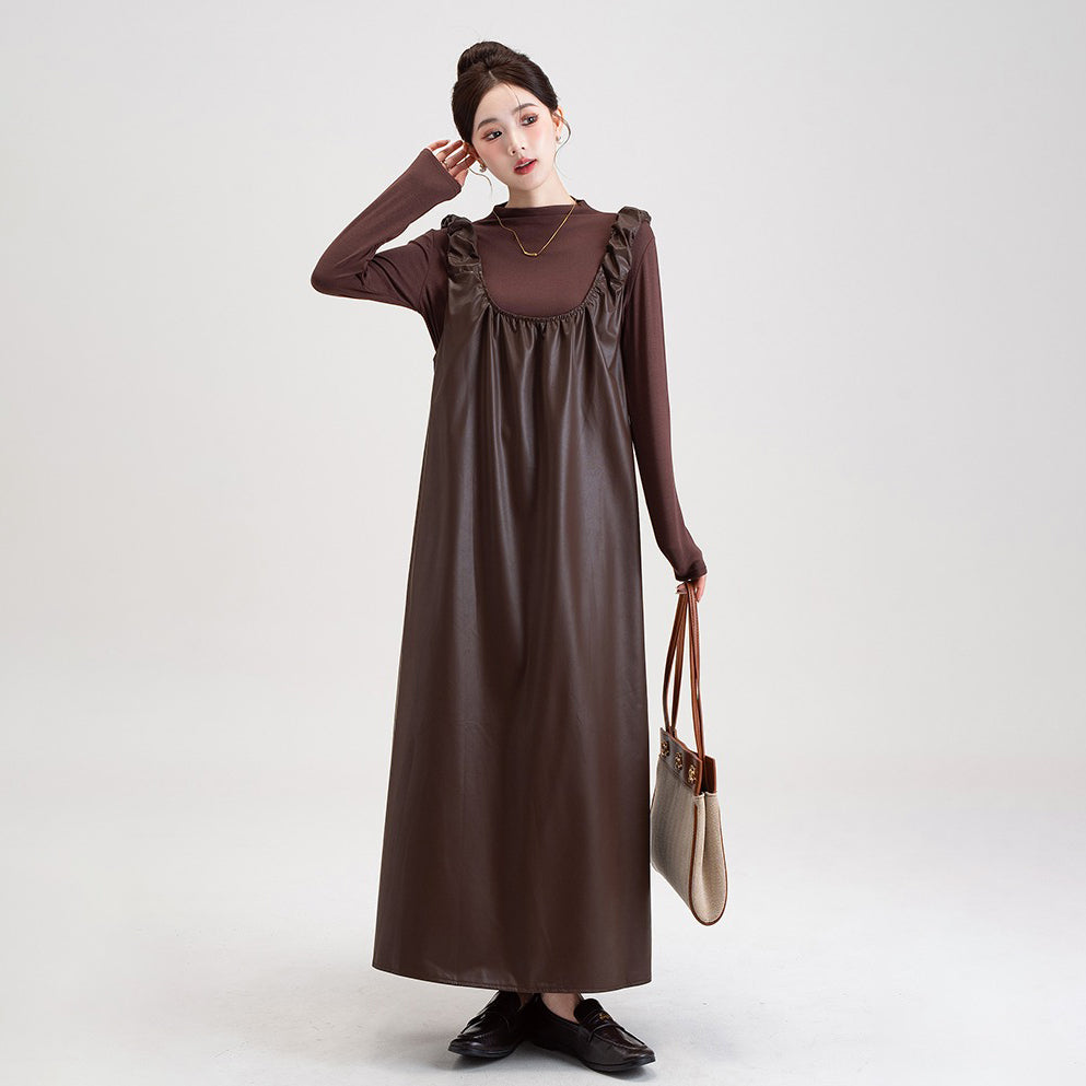 【商品名】【セットアップ】PUレザー ベストワンピース+インナー セットアップ レディース 細見え 2点セット