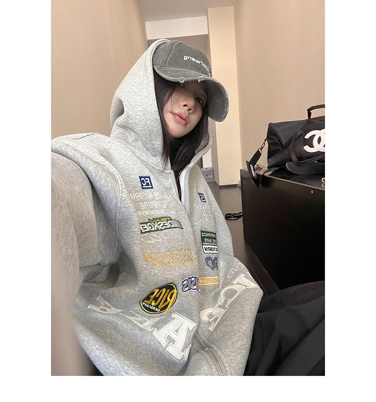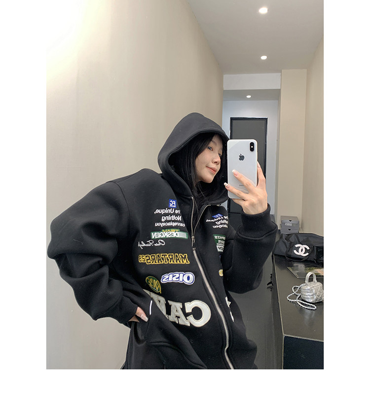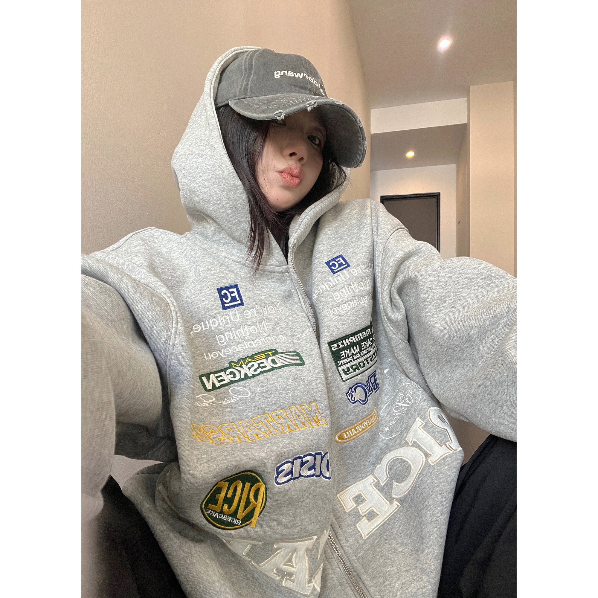 🔥冬の必須アウター🔥【アウター】秋冬 アメリカン カップル服 ルース レトロ 刺繍 フード付き コットン ジャケット【FCシリーズ】