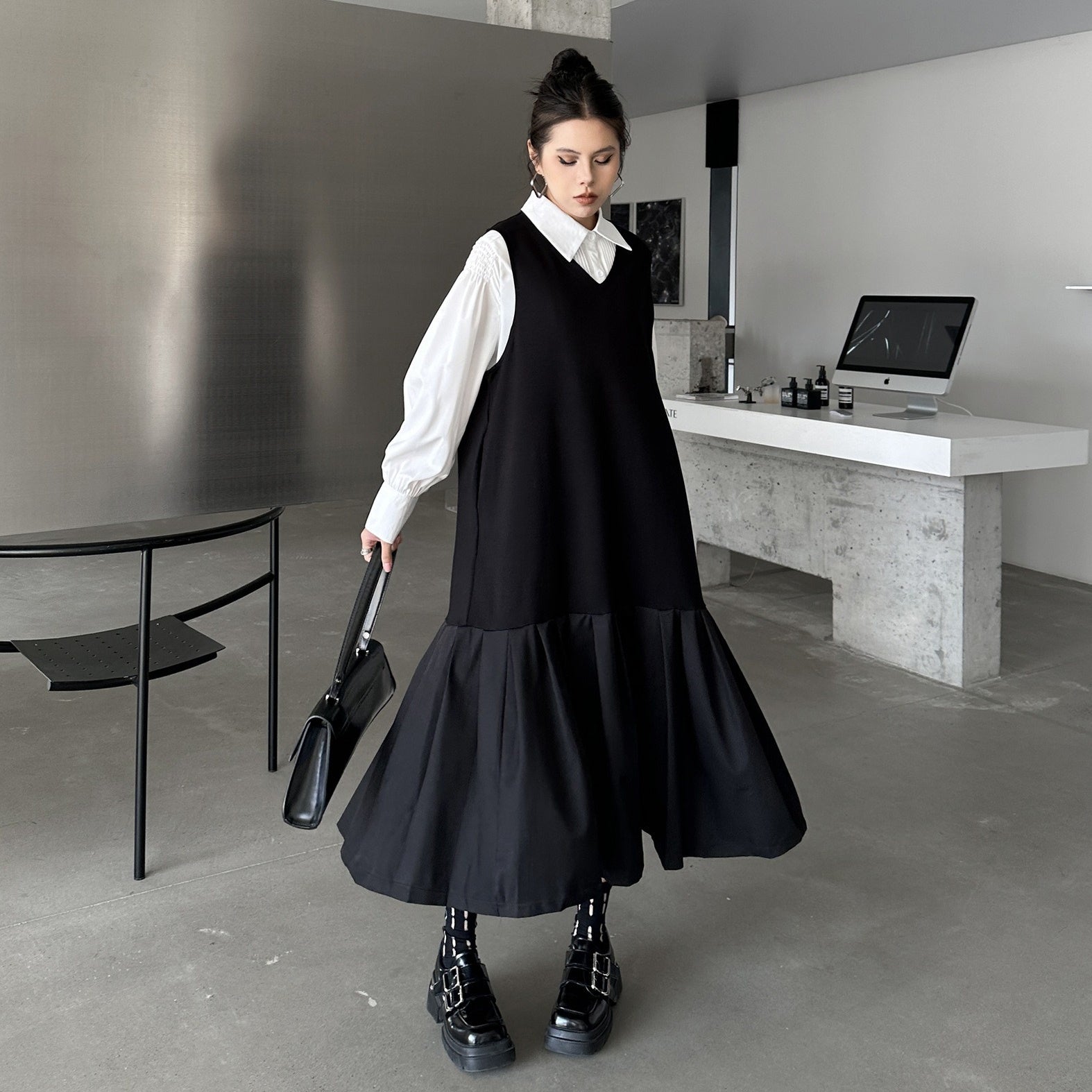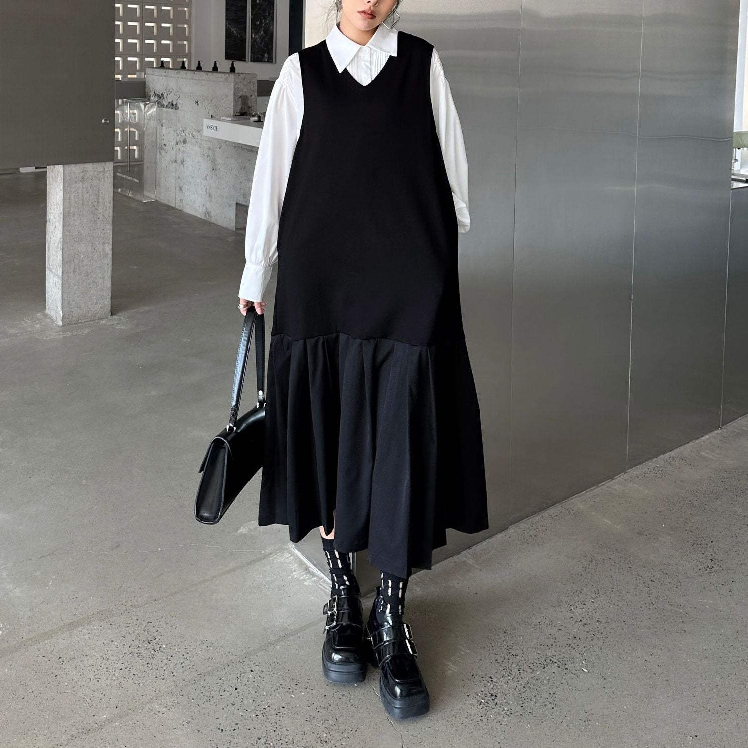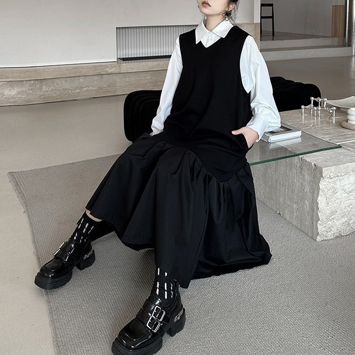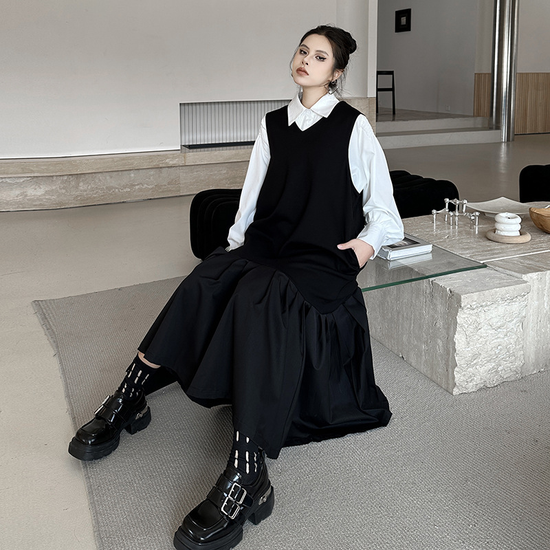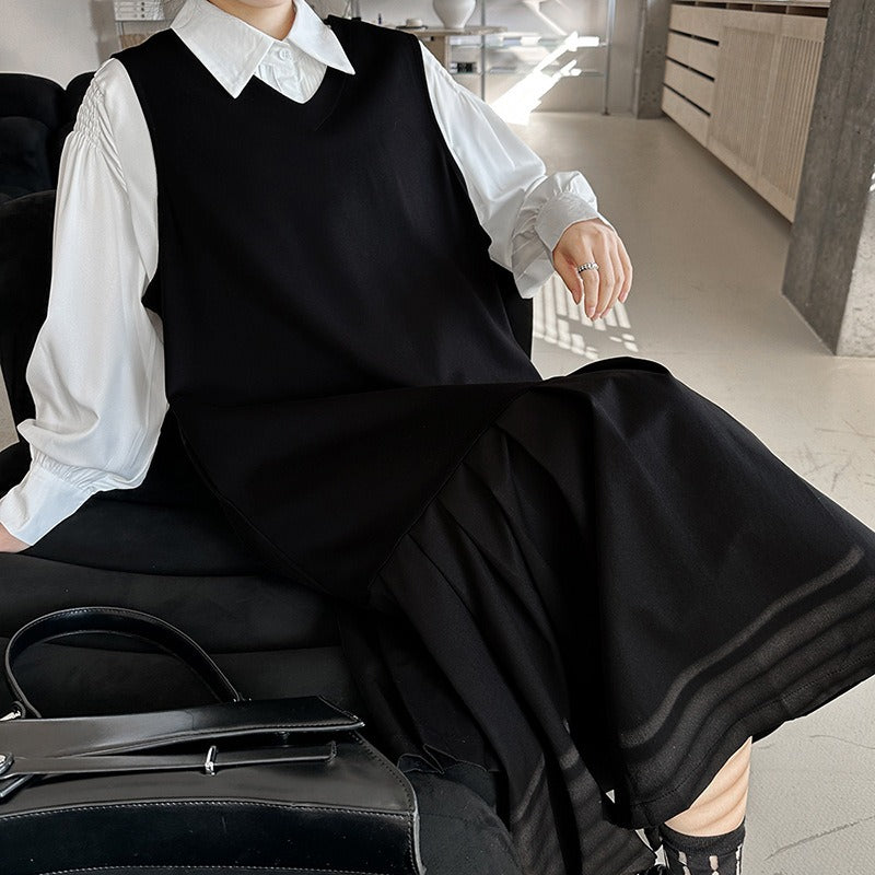 【ワンピース】春 秋 冬 Vネック 重ね着 ノースリーブ ワンピース 【AHシリーズ】