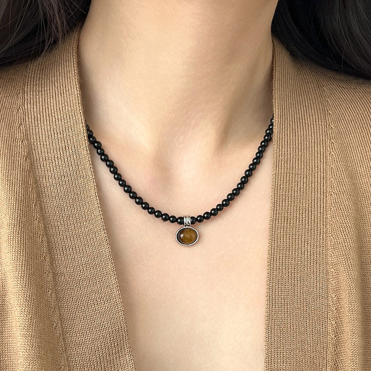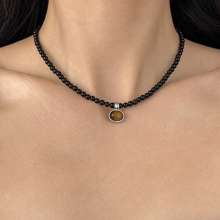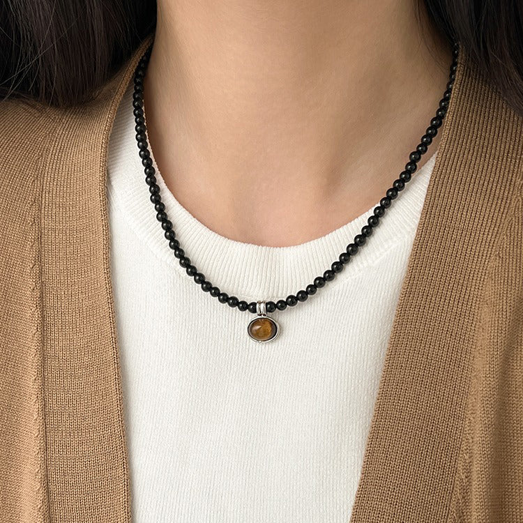 【🎁 B2G1|先行スタート!】【グッズ】色褪せ防止 ブラックオニキス タイガーアイ メラード ネックレス 上品 チョーカー チェーン ネックレス ニットチェーン