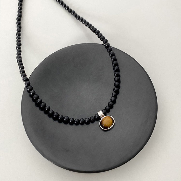 【商品名】【グッズ】色褪せ防止 ブラックオニキス タイガーアイ メラード ネックレス 上品 チョーカー チェーン ネックレス ニットチェーン