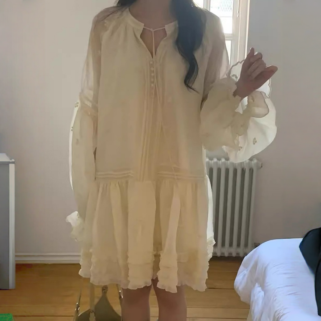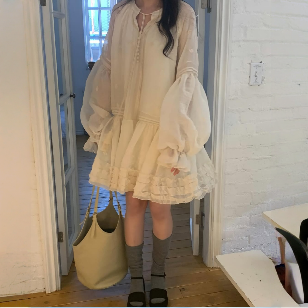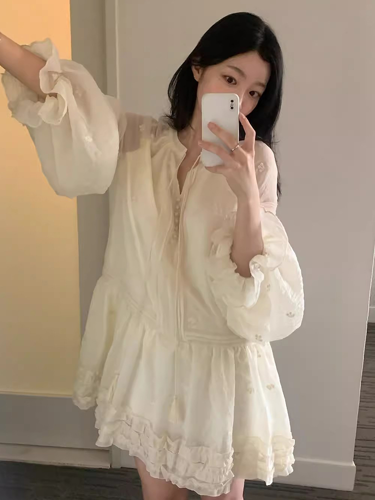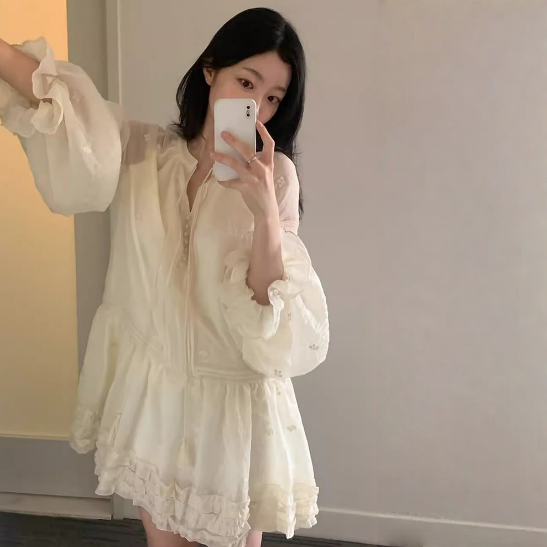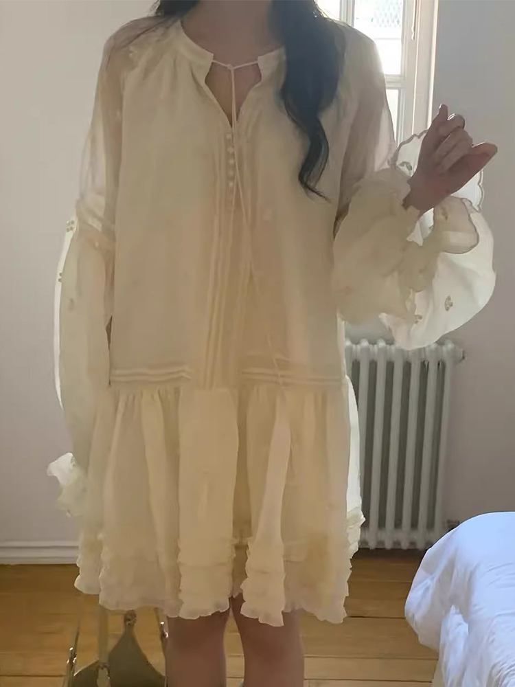 【ワンピース】春 秋 冬 刺繍 キュート フレアスリーブ ワンピース 【JZシリーズ】
