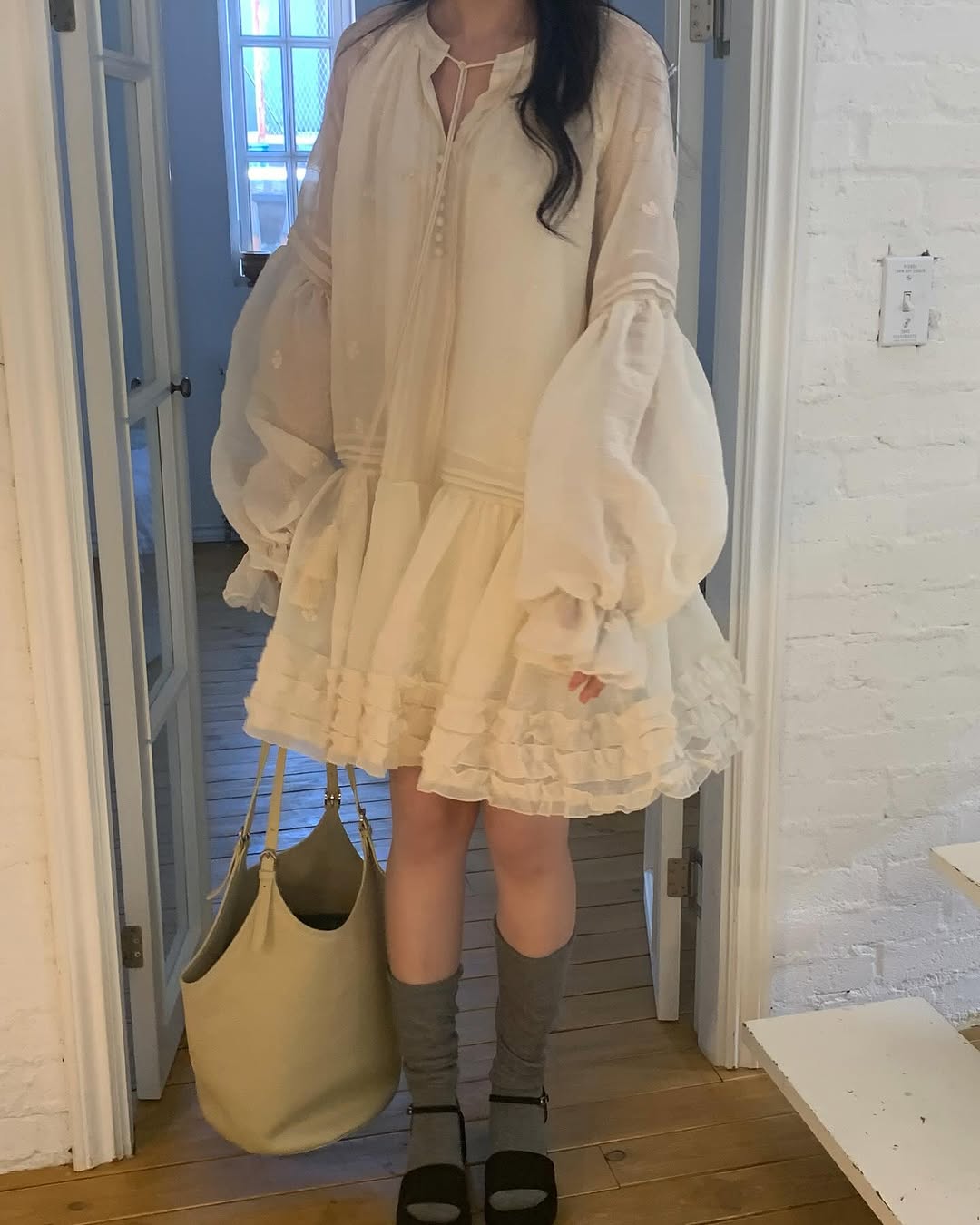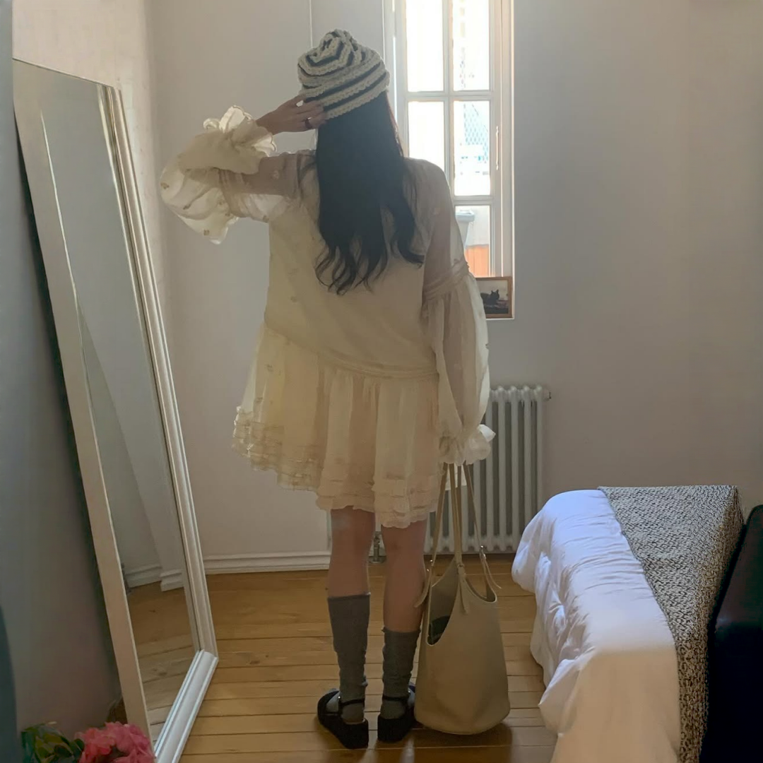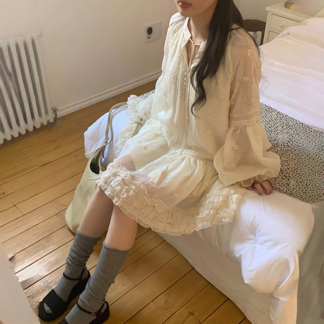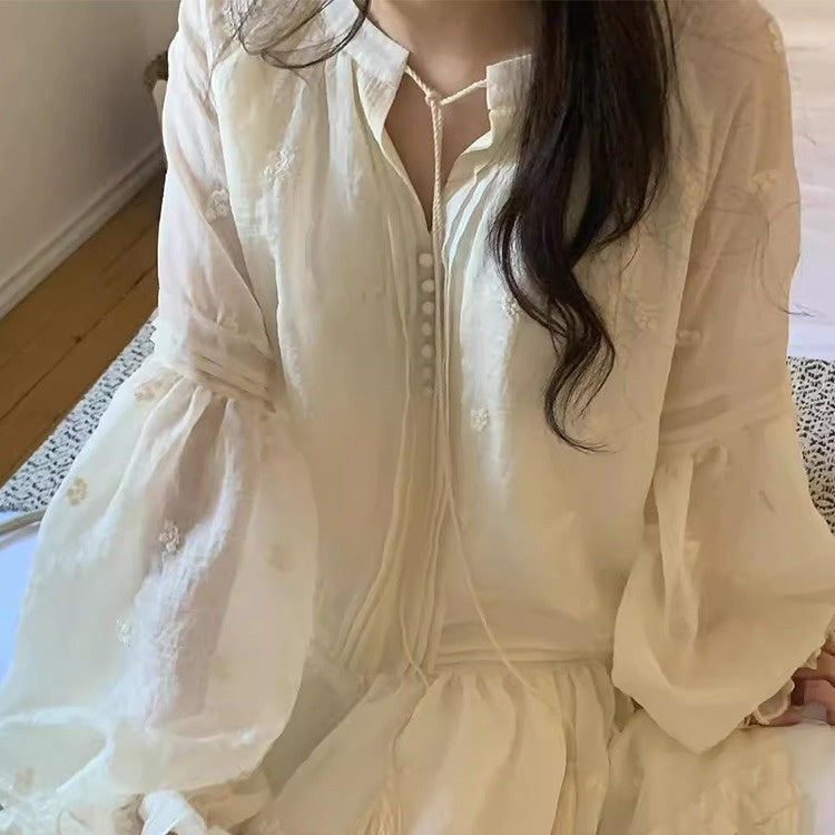 【ワンピース】春 秋 冬 刺繍 キュート フレアスリーブ ワンピース 【JZシリーズ】