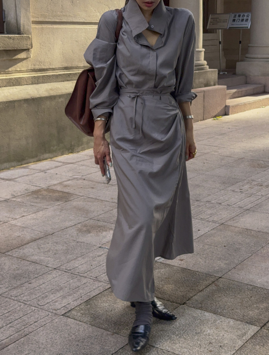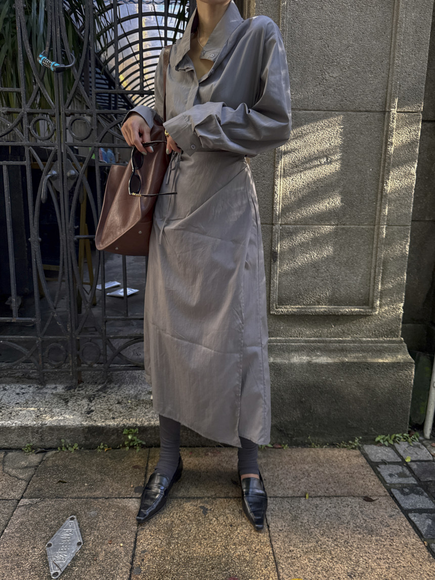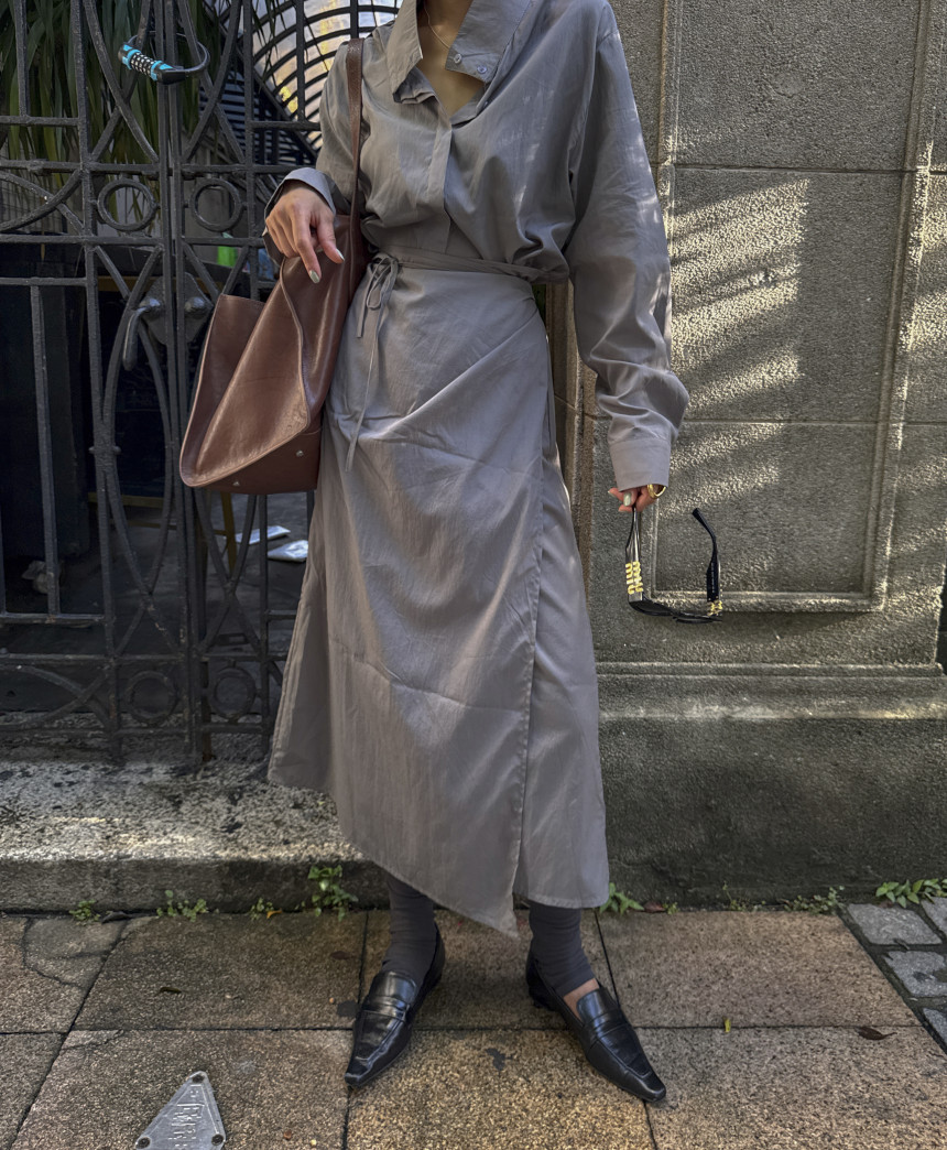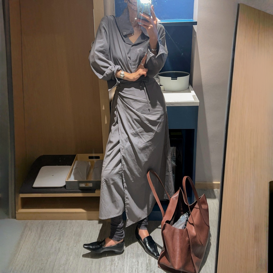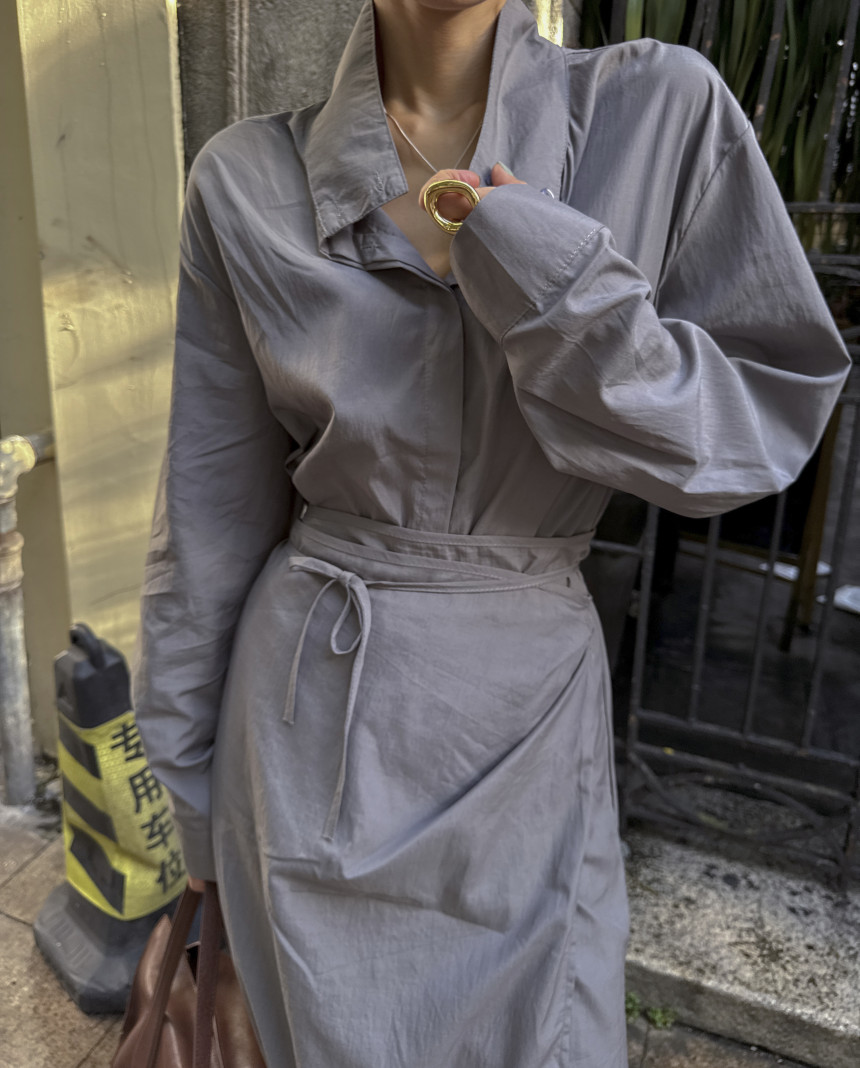 【ワンピース】春 秋 冬 アシンメトリー ウエストリボン 長袖シャツ ワンピース 【JZシリーズ】
