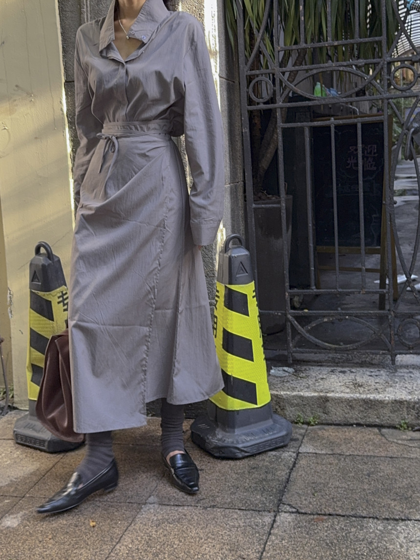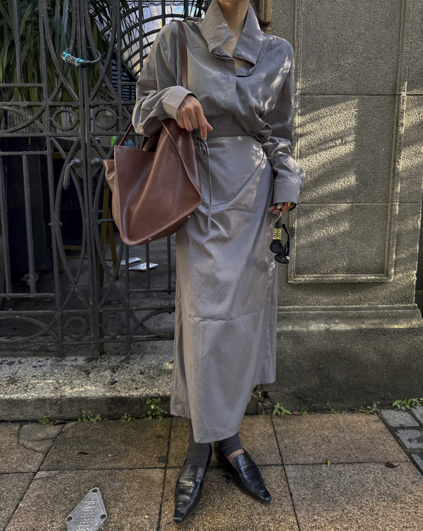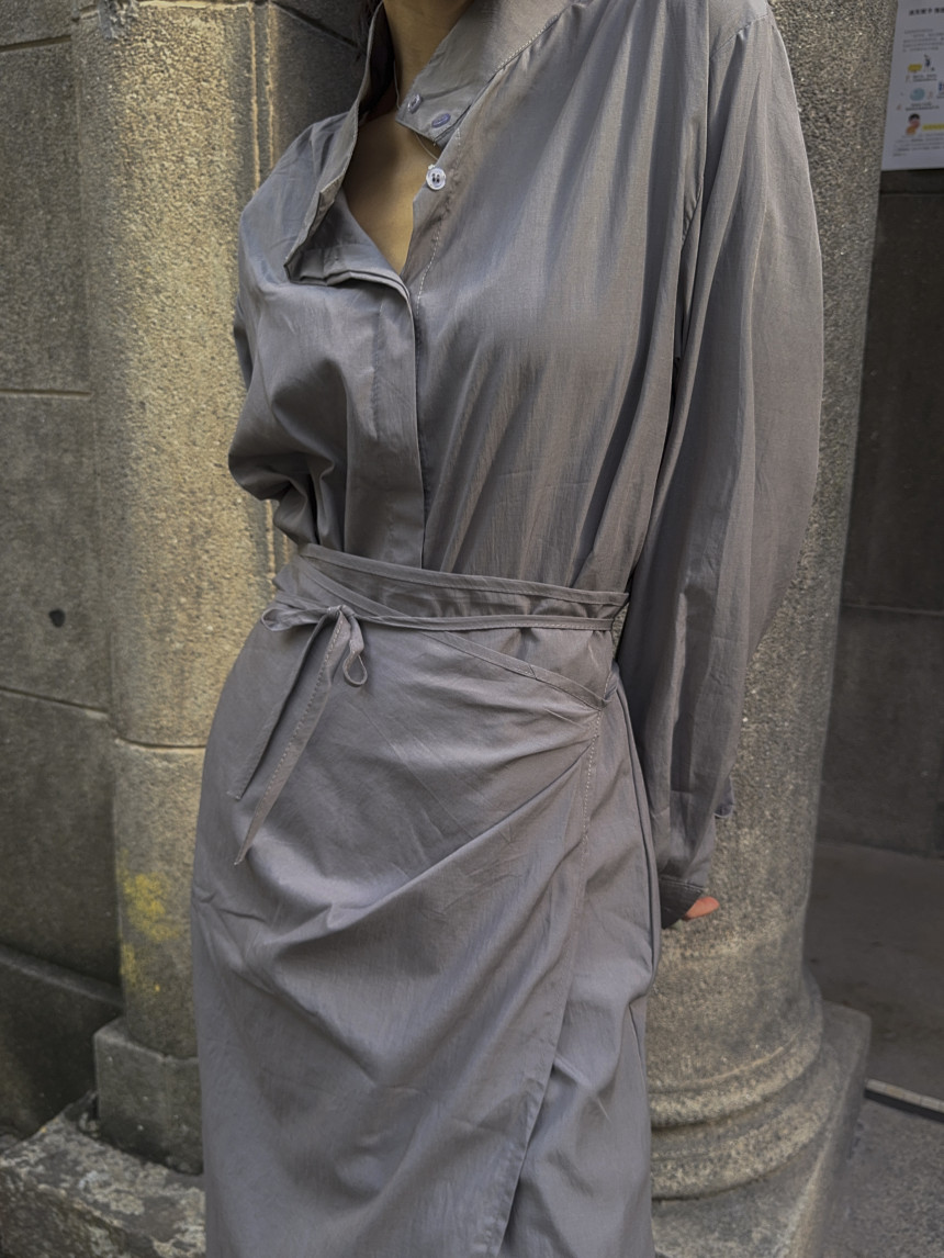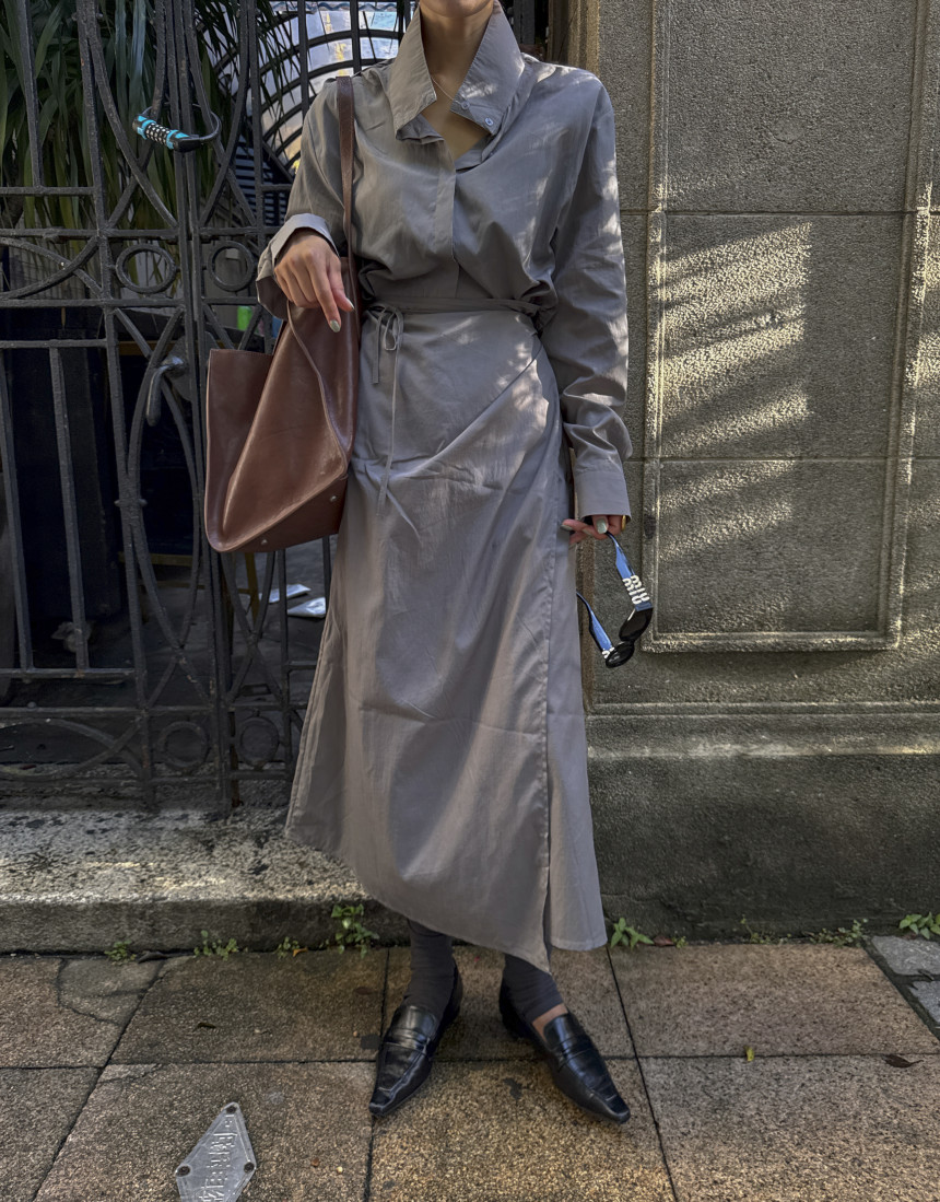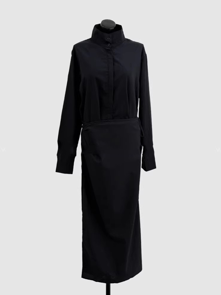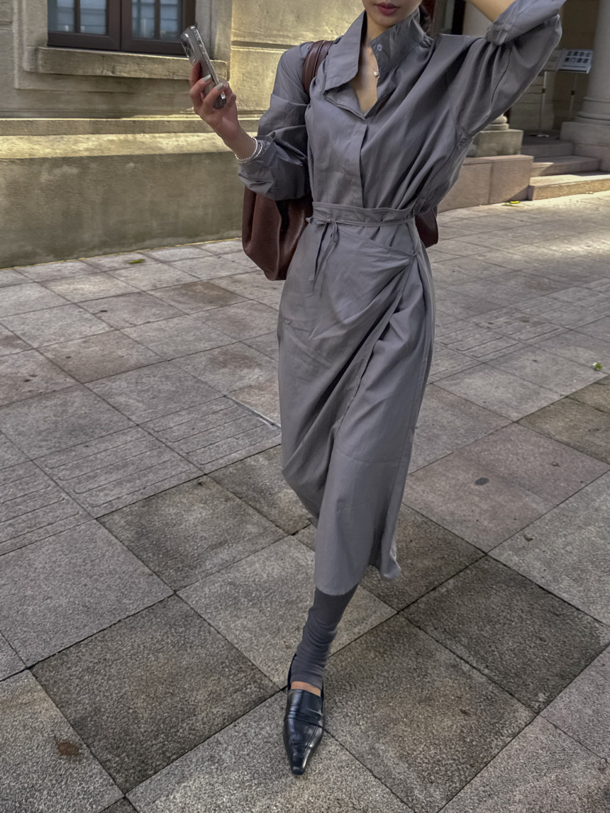 【ワンピース】春 秋 冬 アシンメトリー ウエストリボン 長袖シャツ ワンピース 【JZシリーズ】