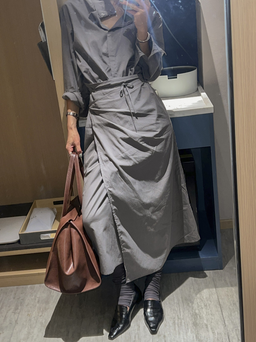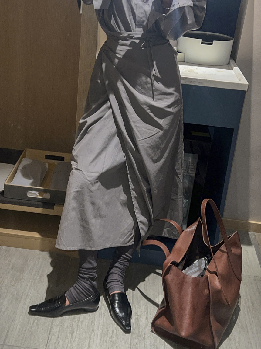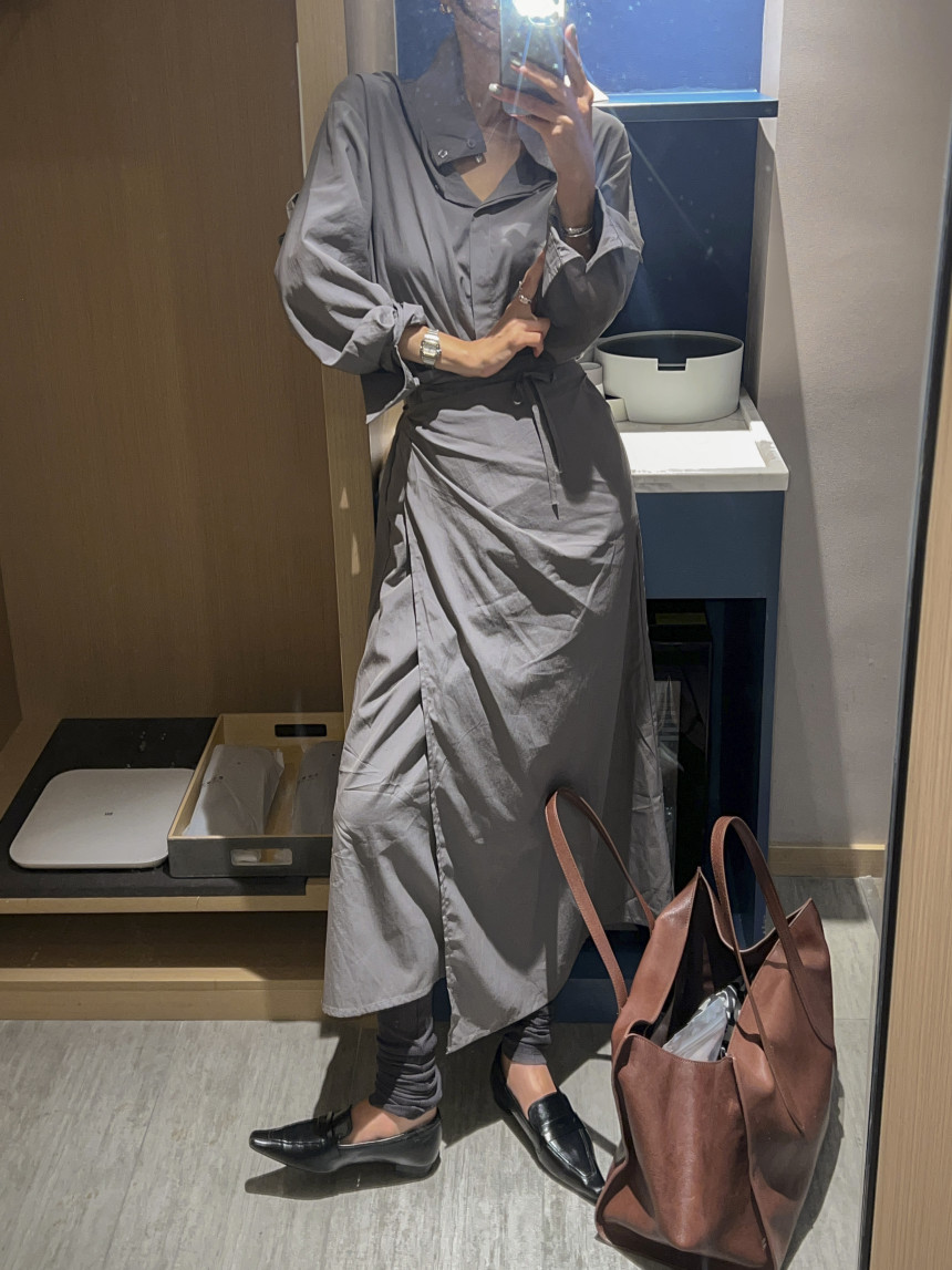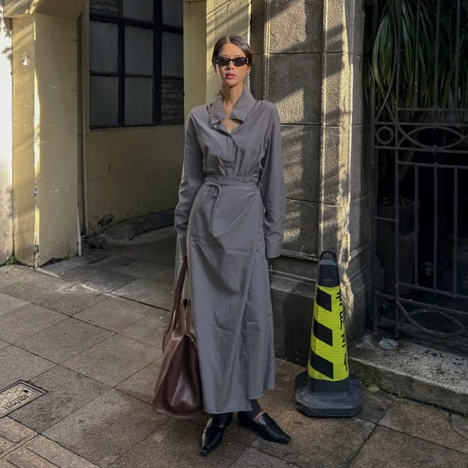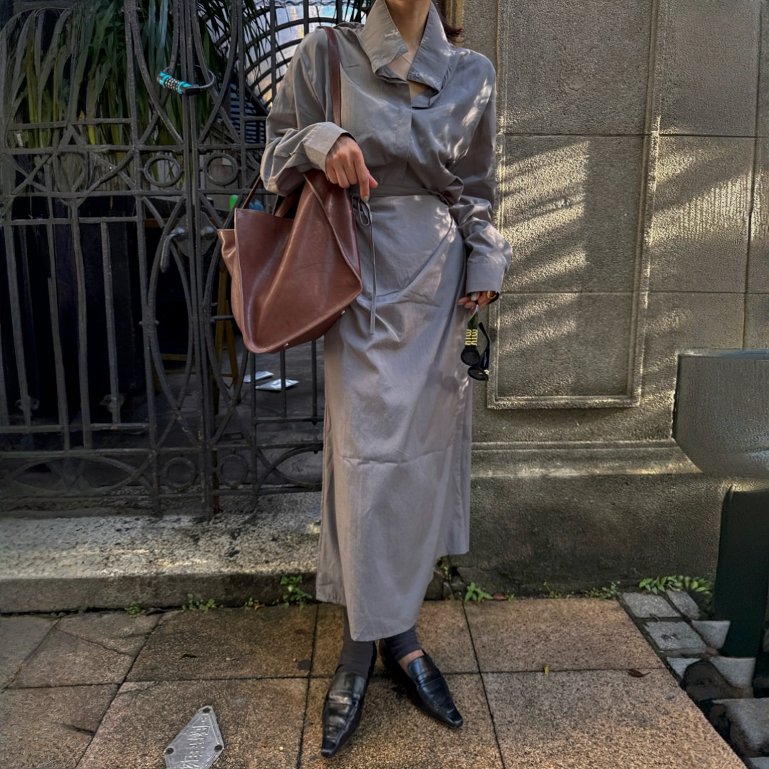 【ワンピース】春 秋 冬 アシンメトリー ウエストリボン 長袖シャツ ワンピース 【JZシリーズ】