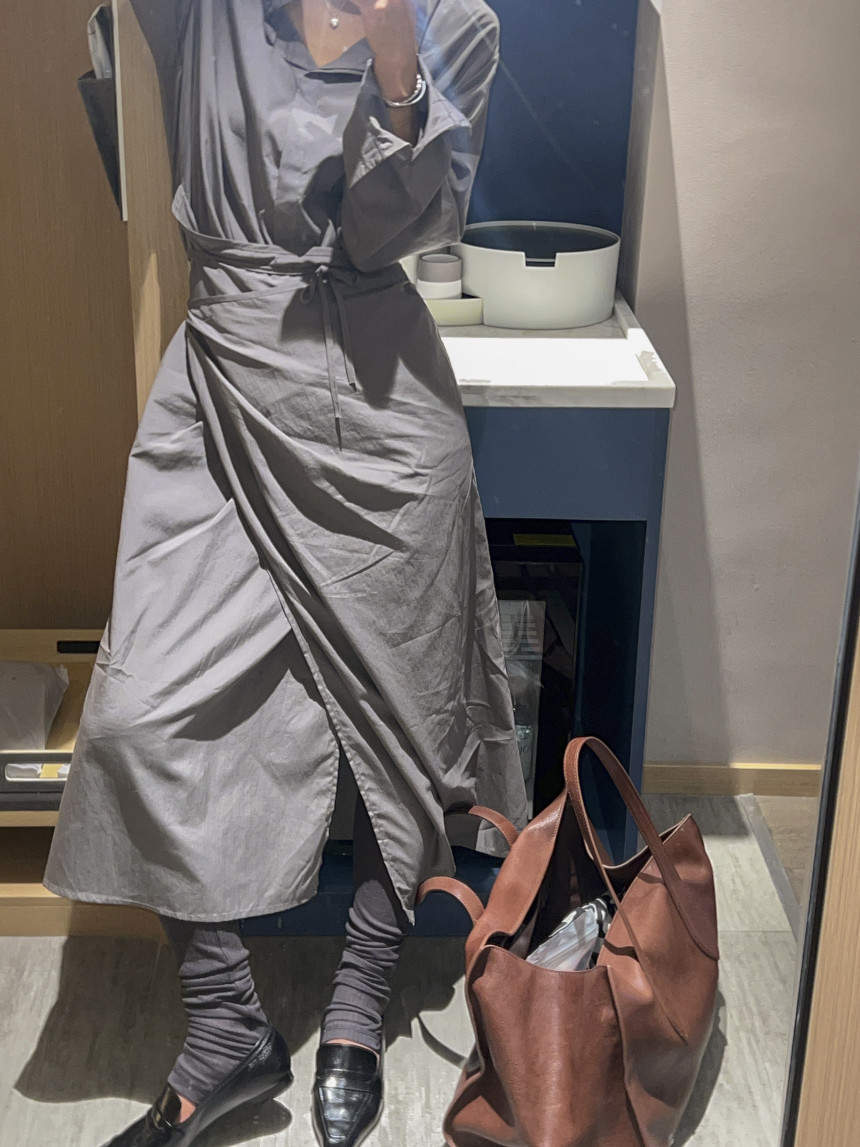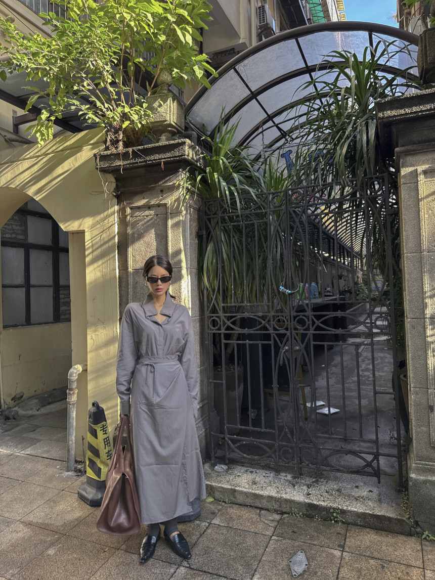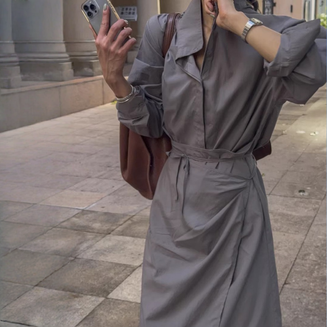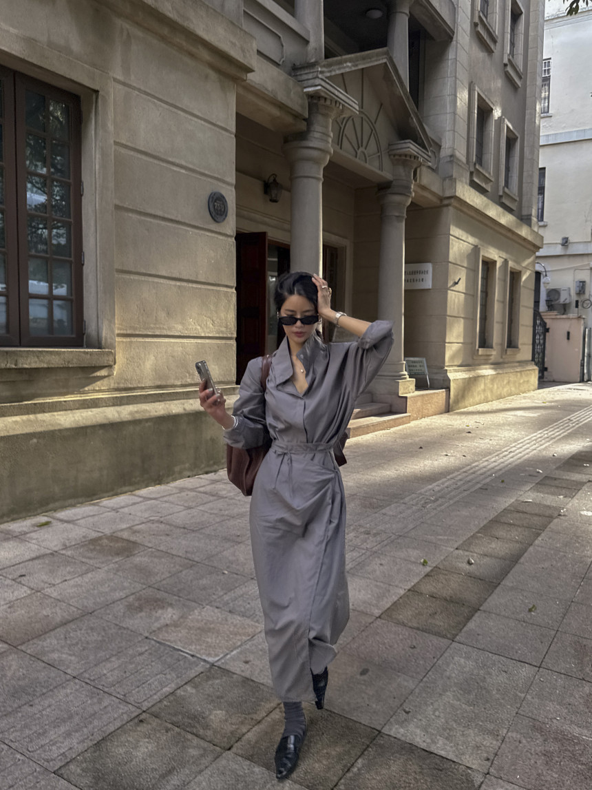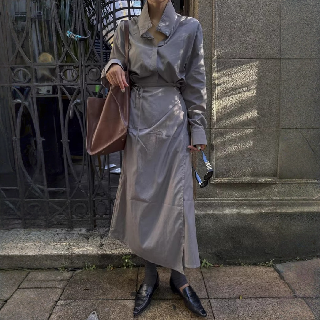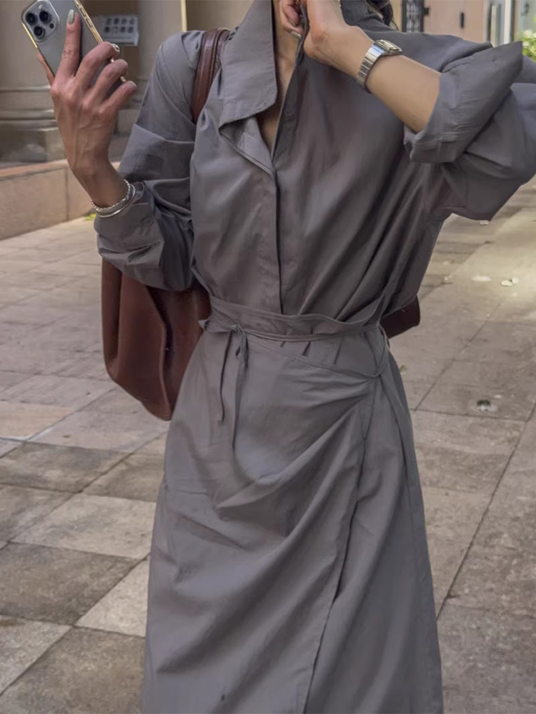 【商品名】【ワンピース】春 秋 冬 アシンメトリー ウエストリボン 長袖シャツ ワンピース 【JZシリーズ】