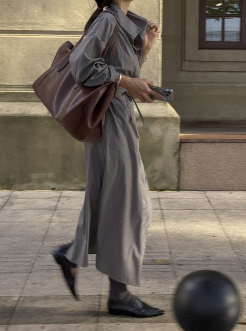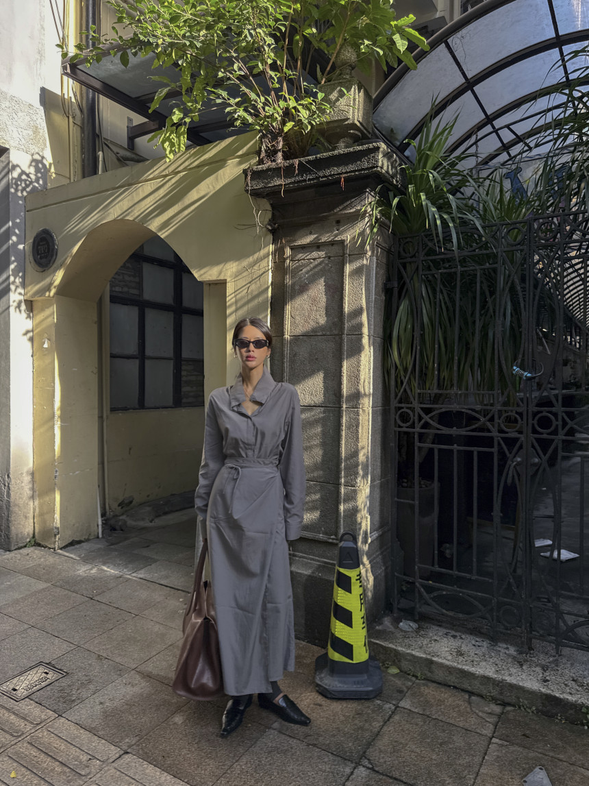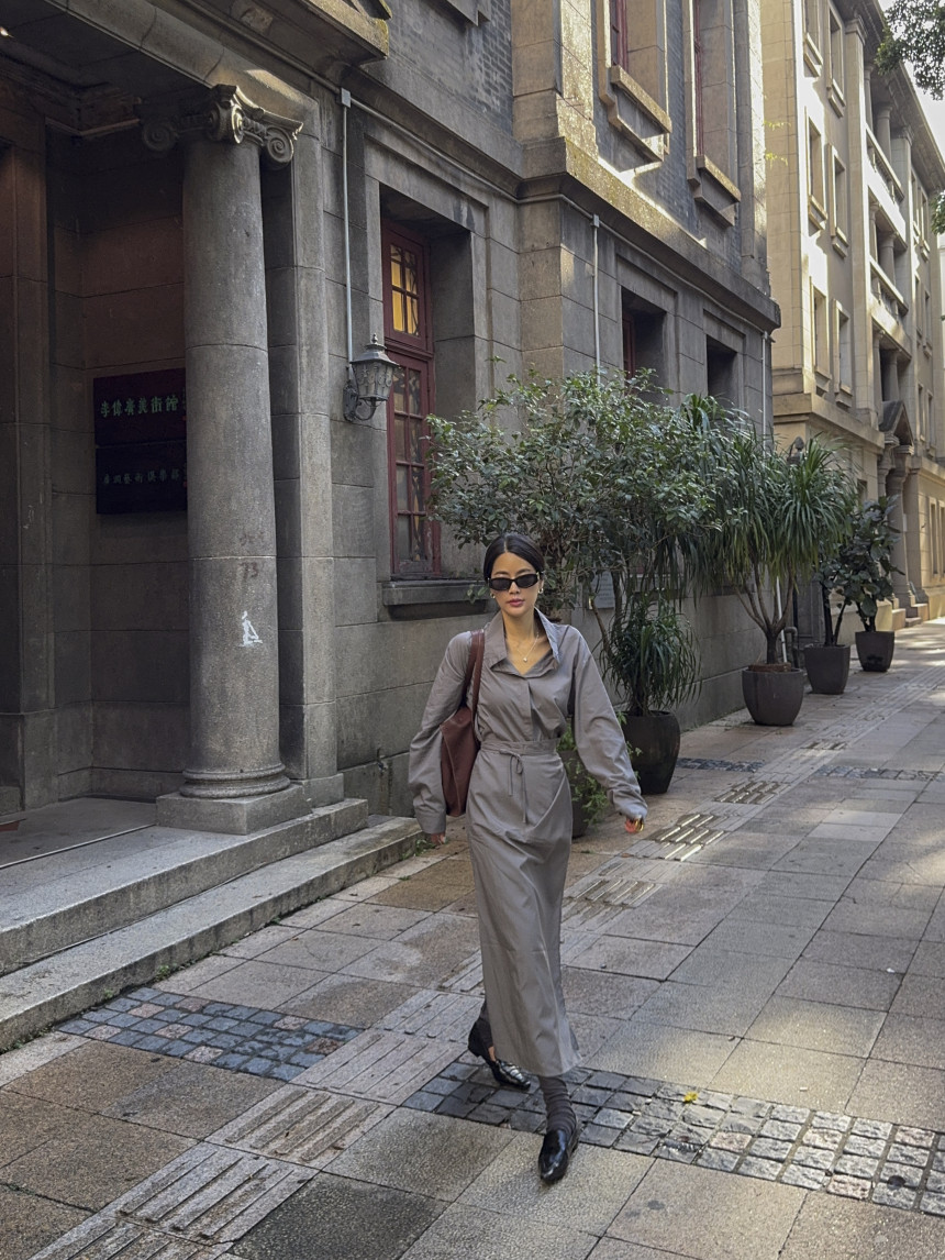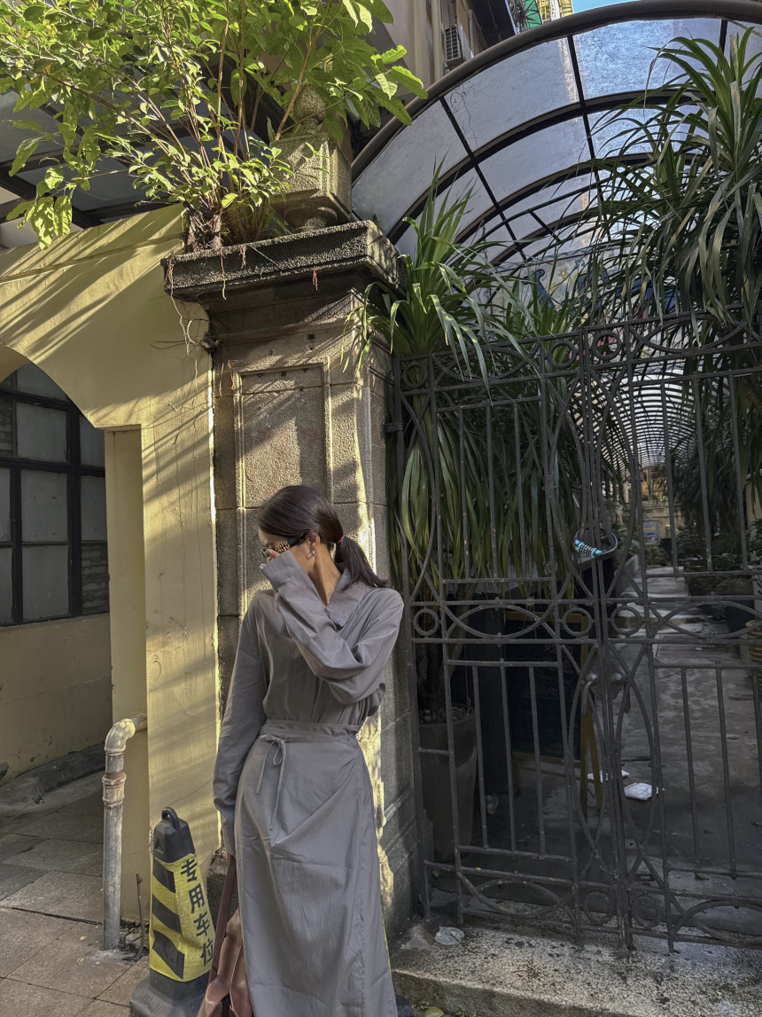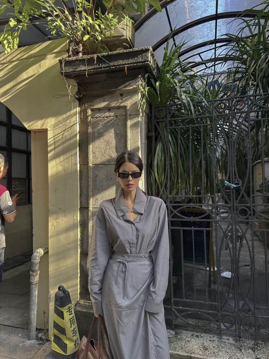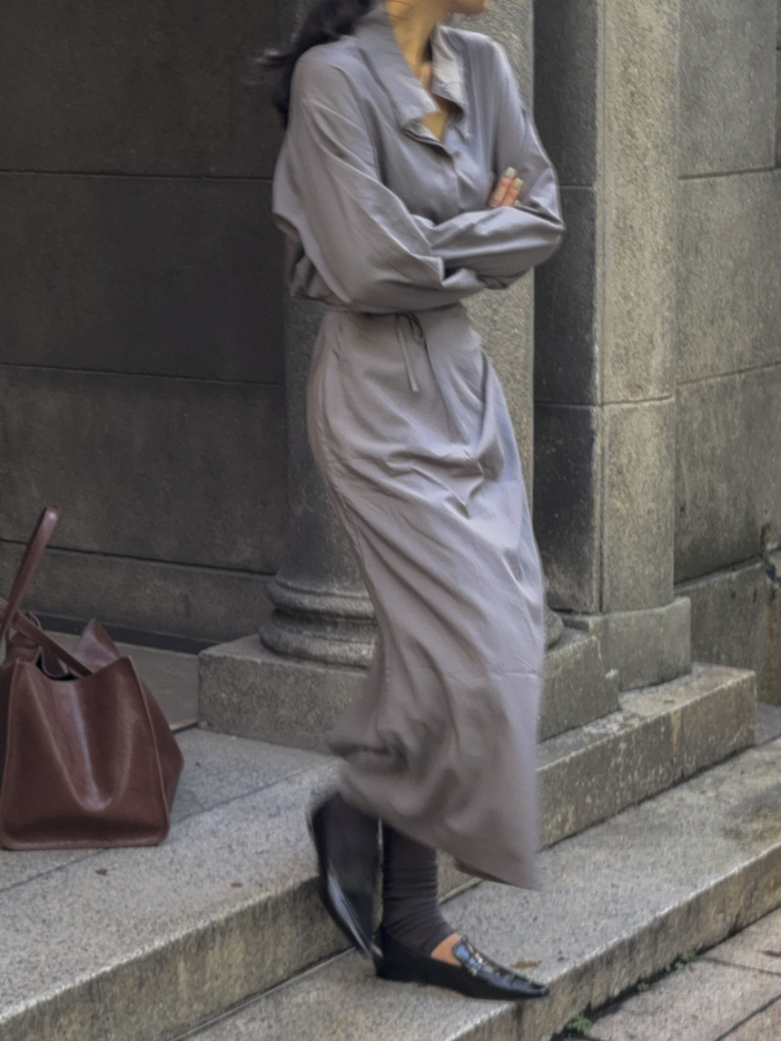 【商品名】【ワンピース】春 秋 冬 アシンメトリー ウエストリボン 長袖シャツ ワンピース 【JZシリーズ】