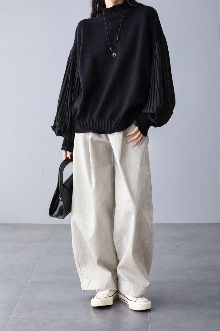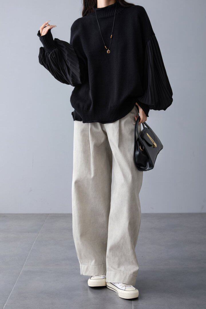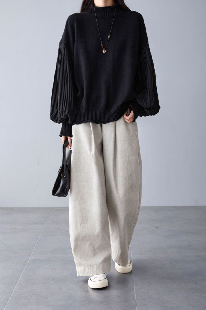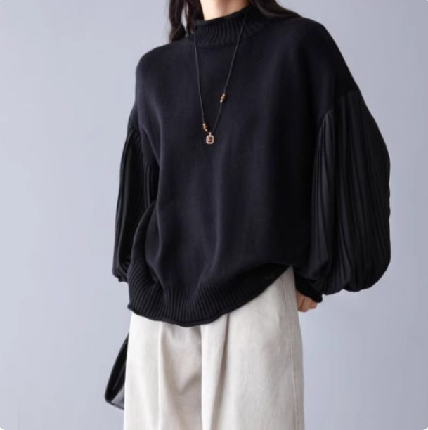 【トップス】春 秋 冬 プリーツスリーブ 切り替え 切り替え セーター 【JZシリーズ】