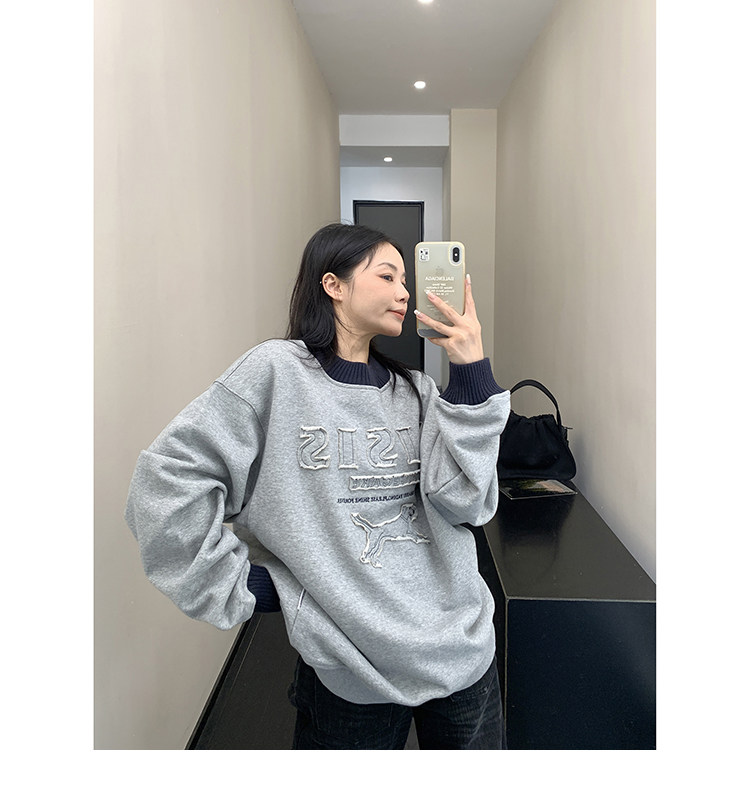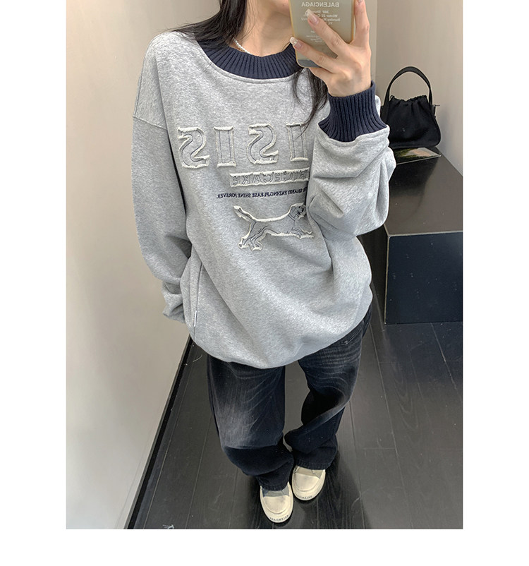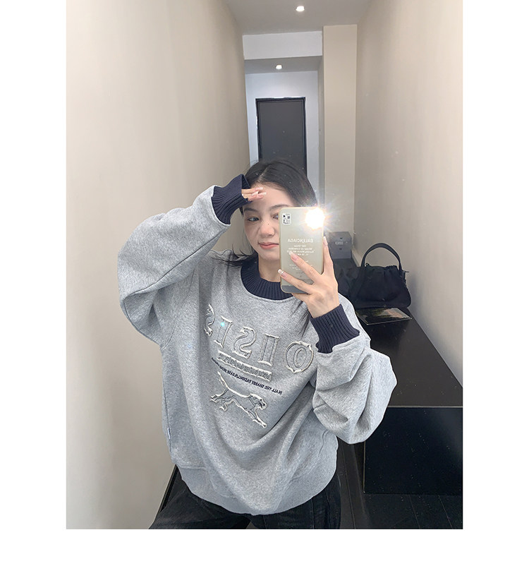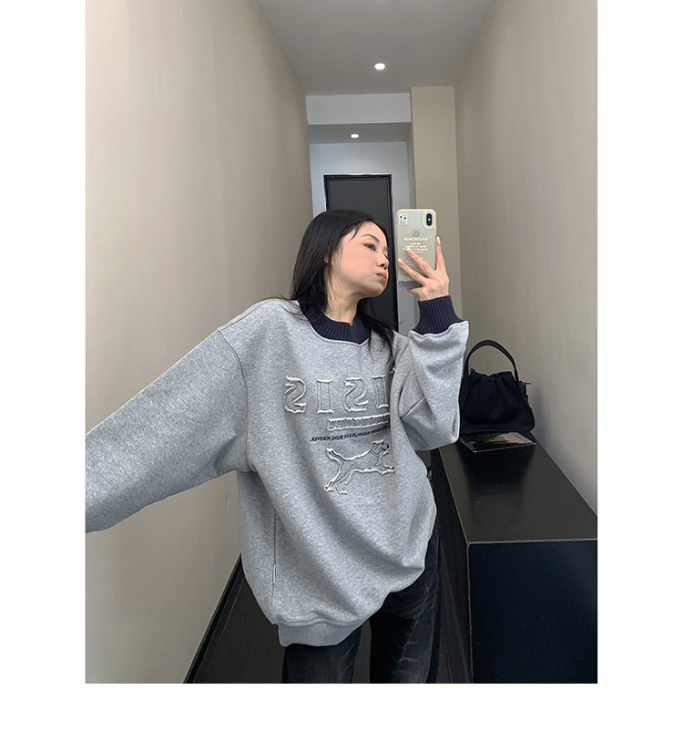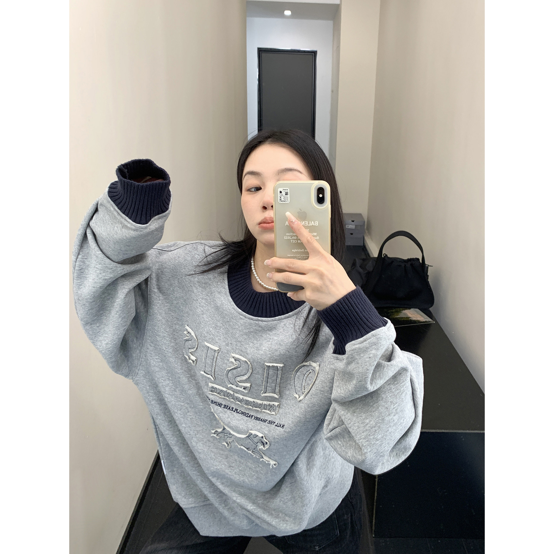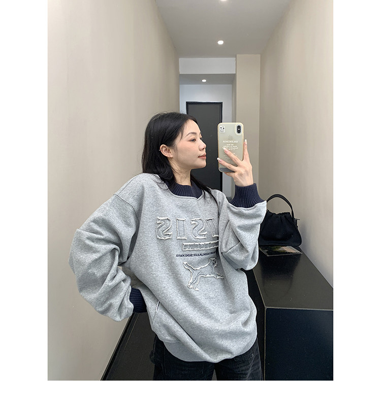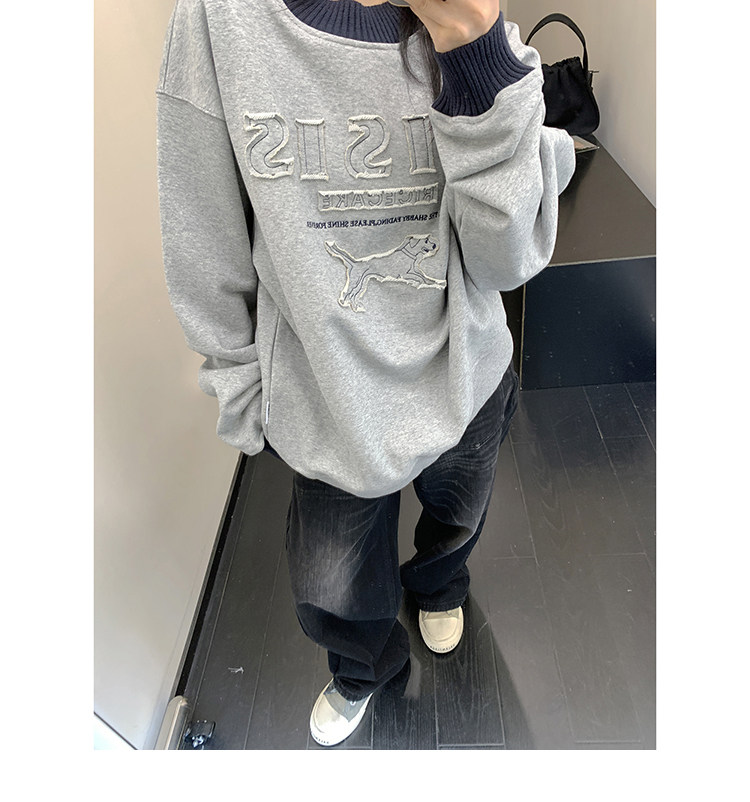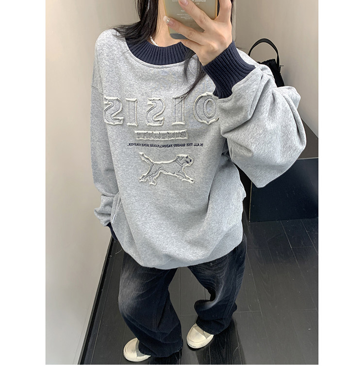 【商品名】【トップス】春 秋 冬 アップリケ刺繍 配色 クルーネック カートゥーン パーカー【FCシリーズ】