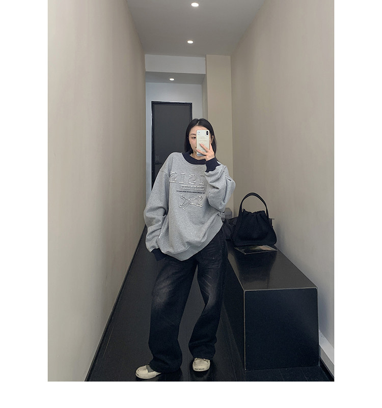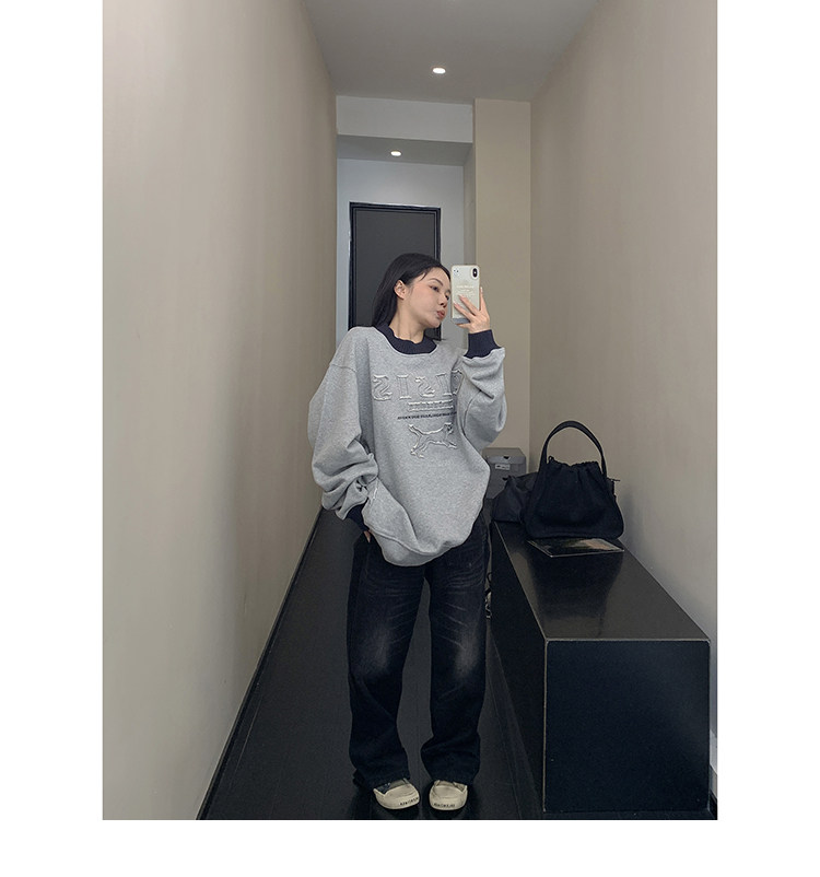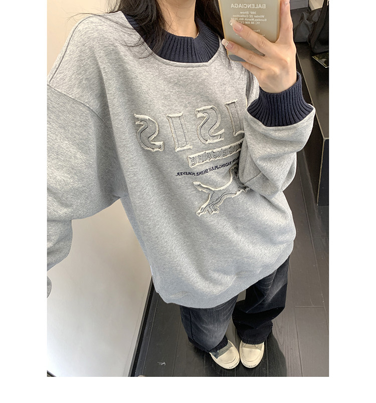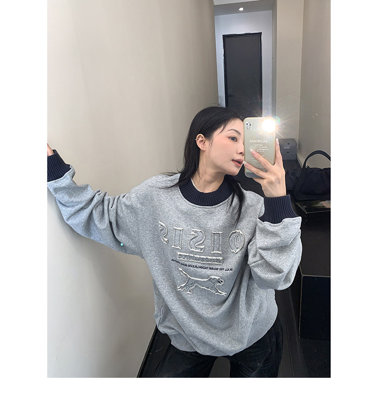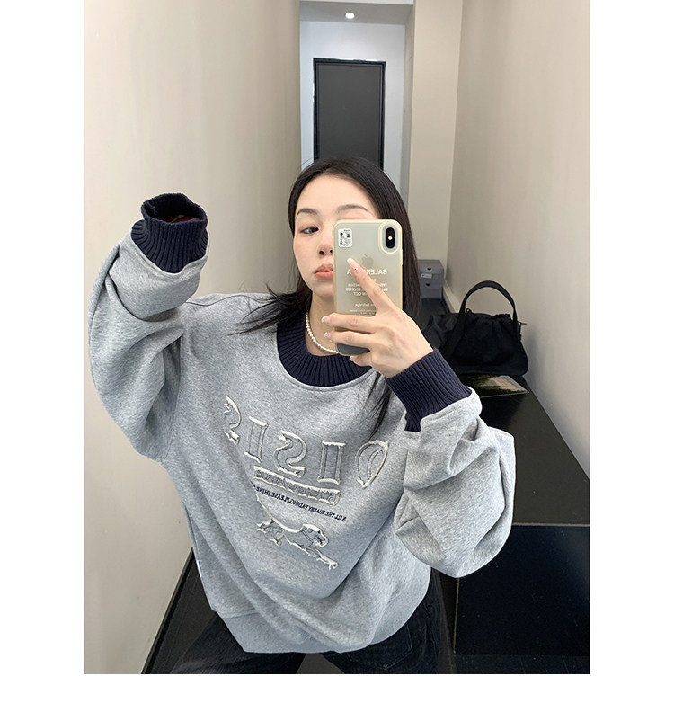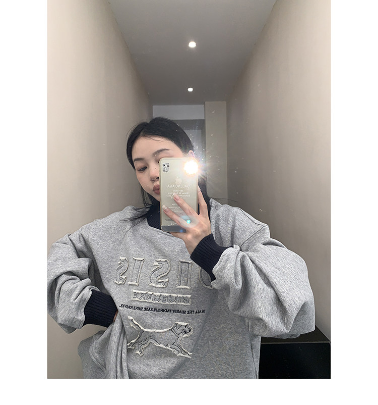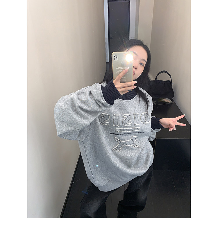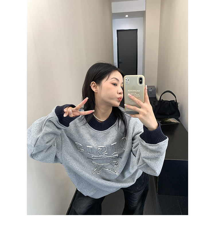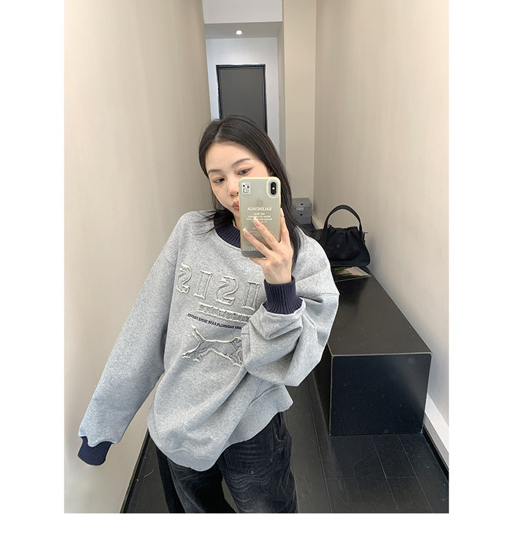 【商品名】【トップス】春 秋 冬 アップリケ刺繍 配色 クルーネック カートゥーン パーカー【FCシリーズ】