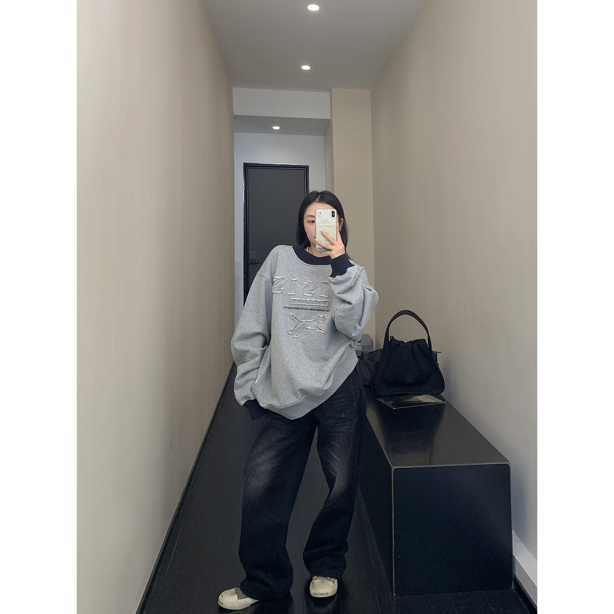 【トップス】春 秋 冬 アップリケ刺繍 配色 クルーネック カートゥーン パーカー【FCシリーズ】