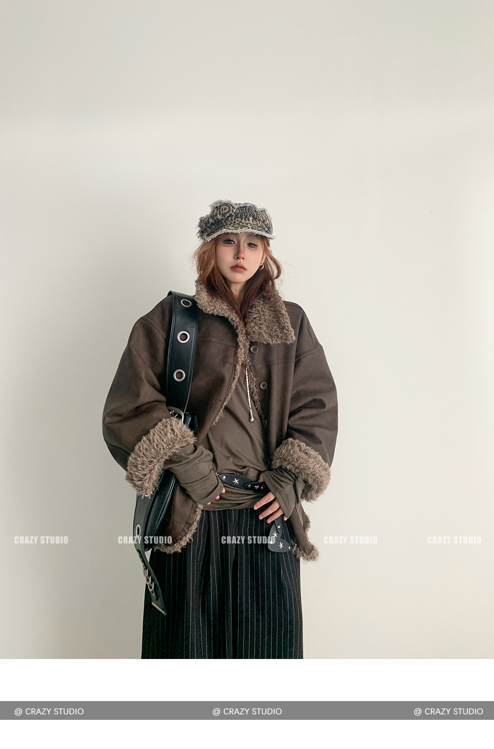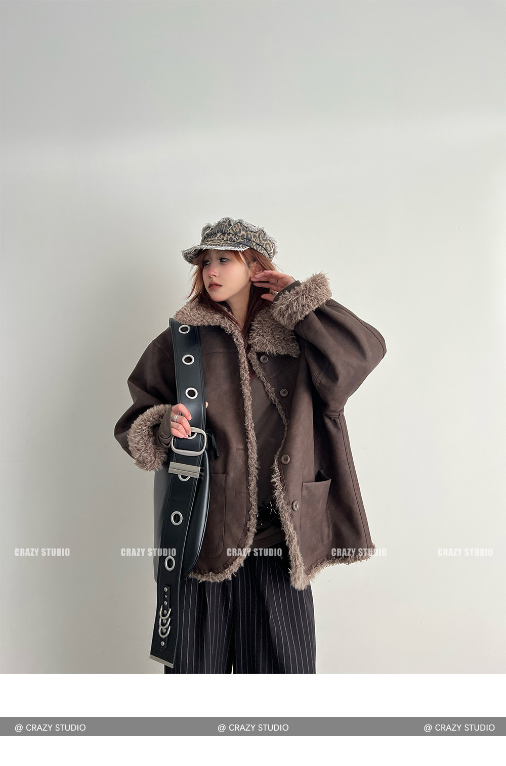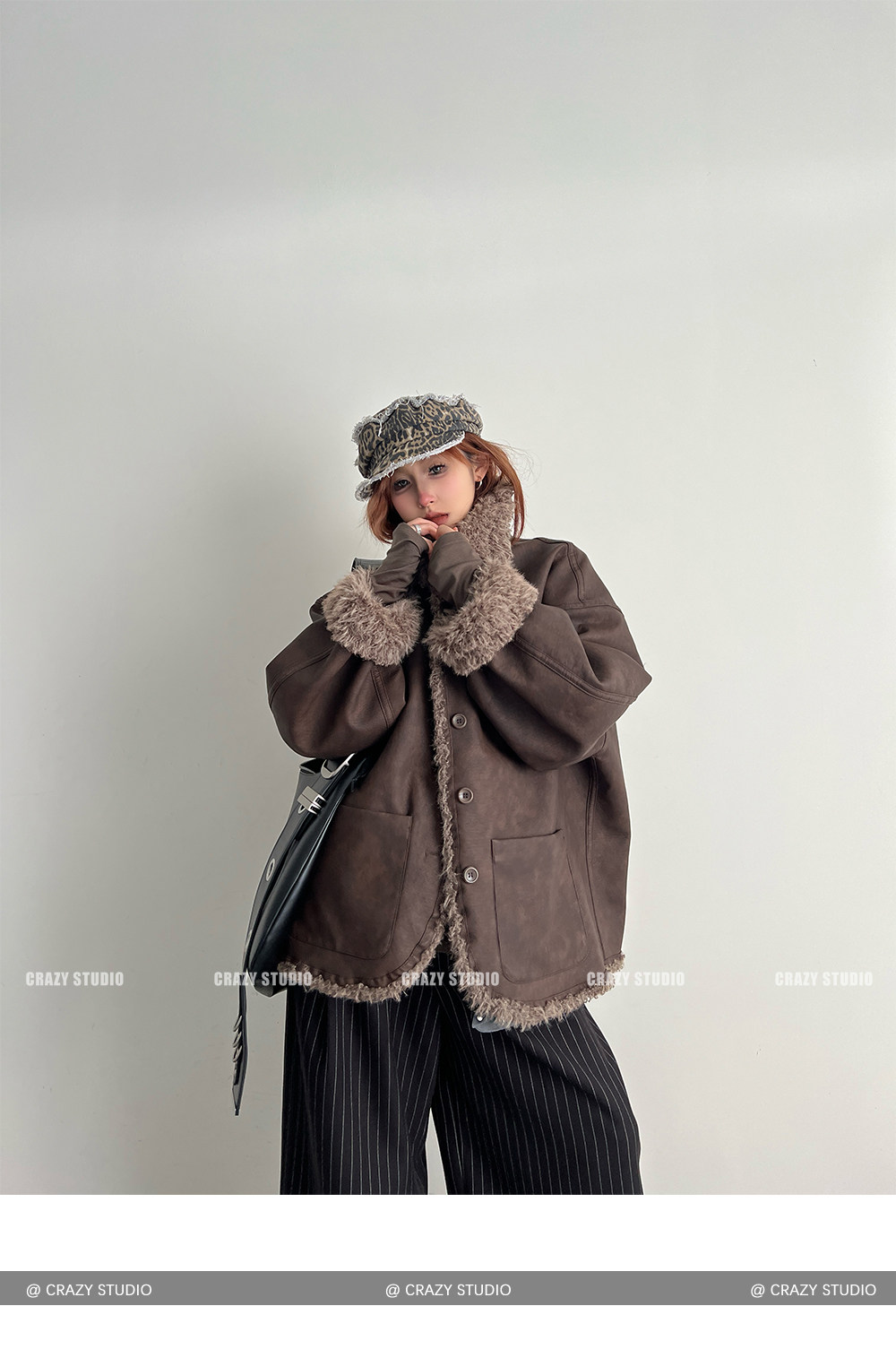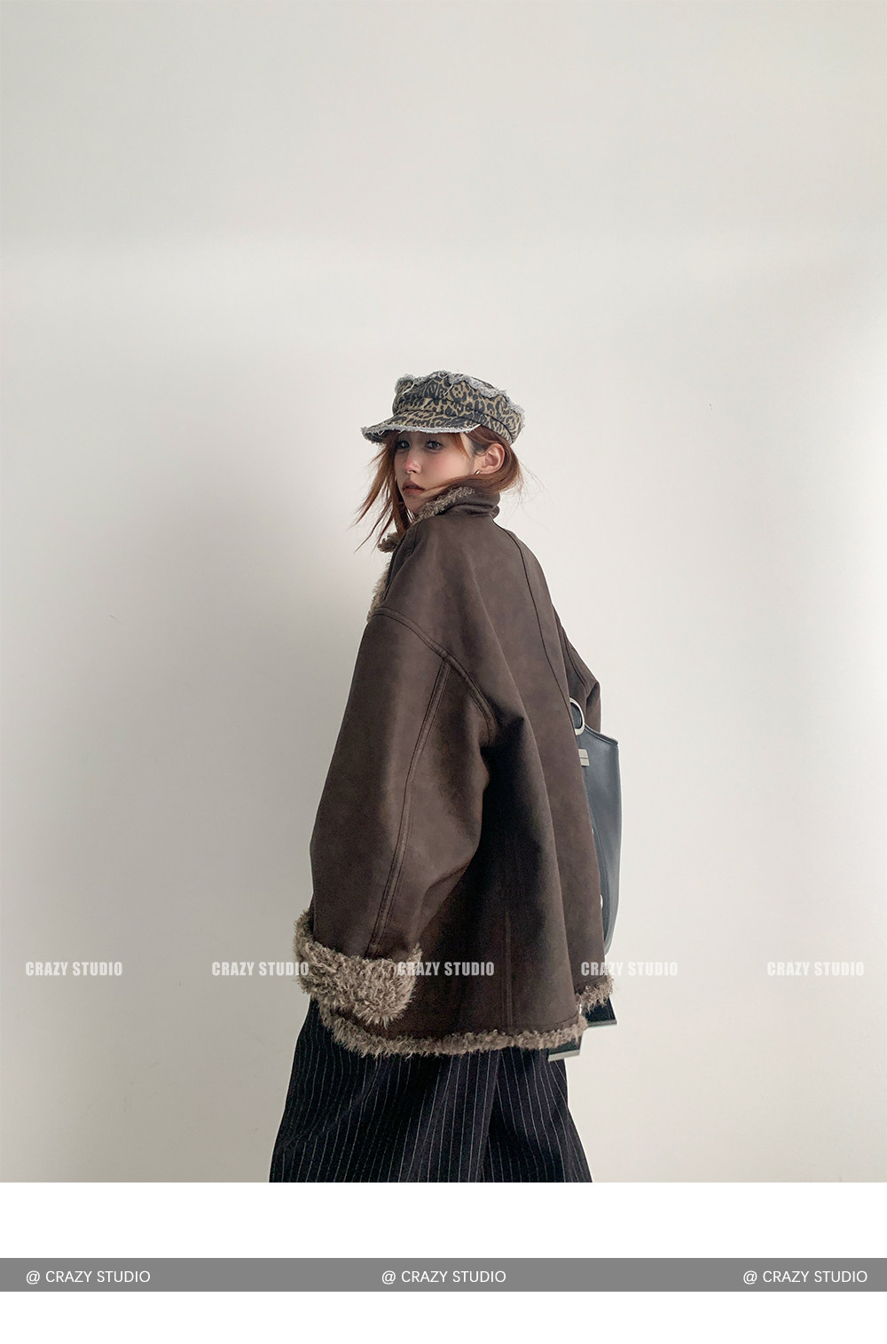 【アウター】レトロ感×バイカラー♡ボアジャケット 冬新作 レディース あったか【JZシリーズ】