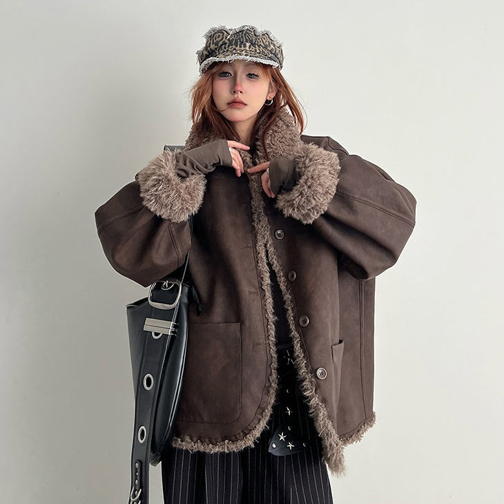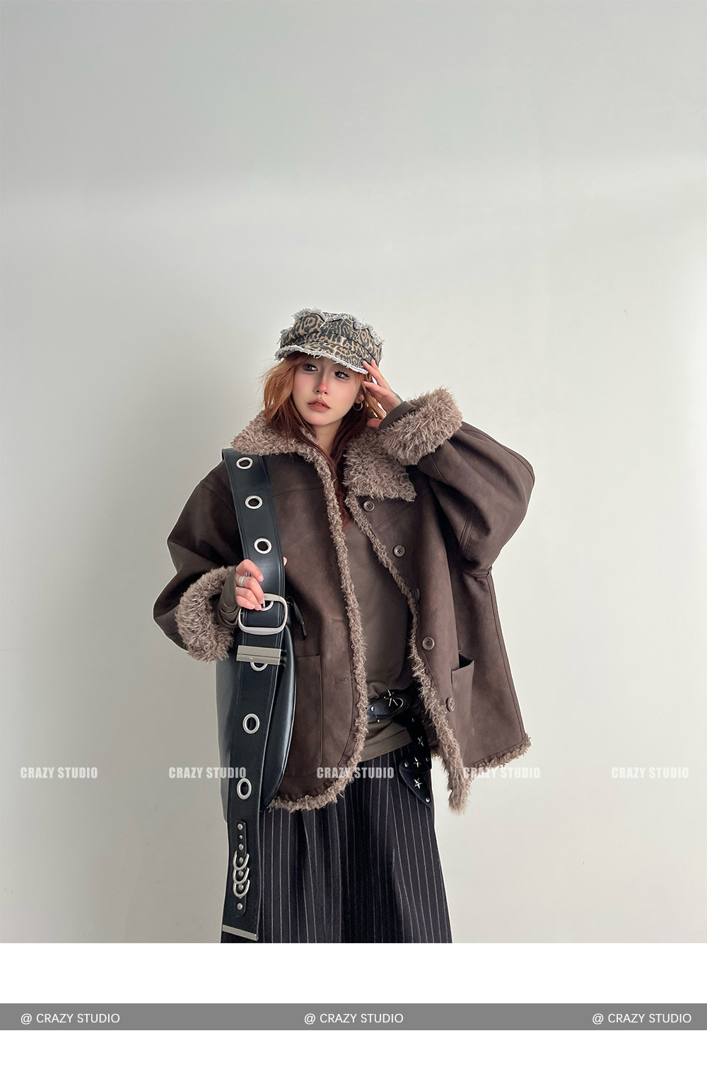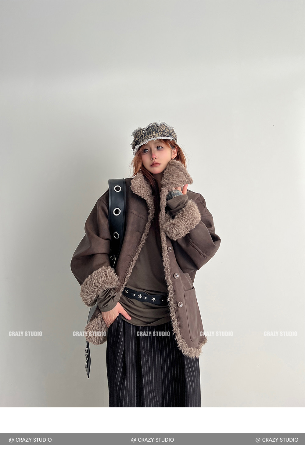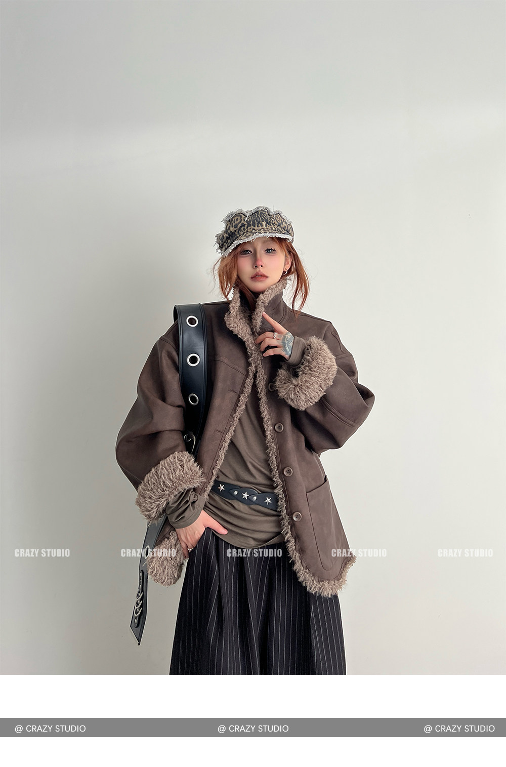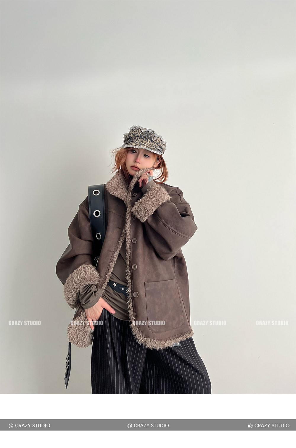 【アウター】レトロ感×バイカラー♡ボアジャケット 冬新作 レディース あったか【JZシリーズ】