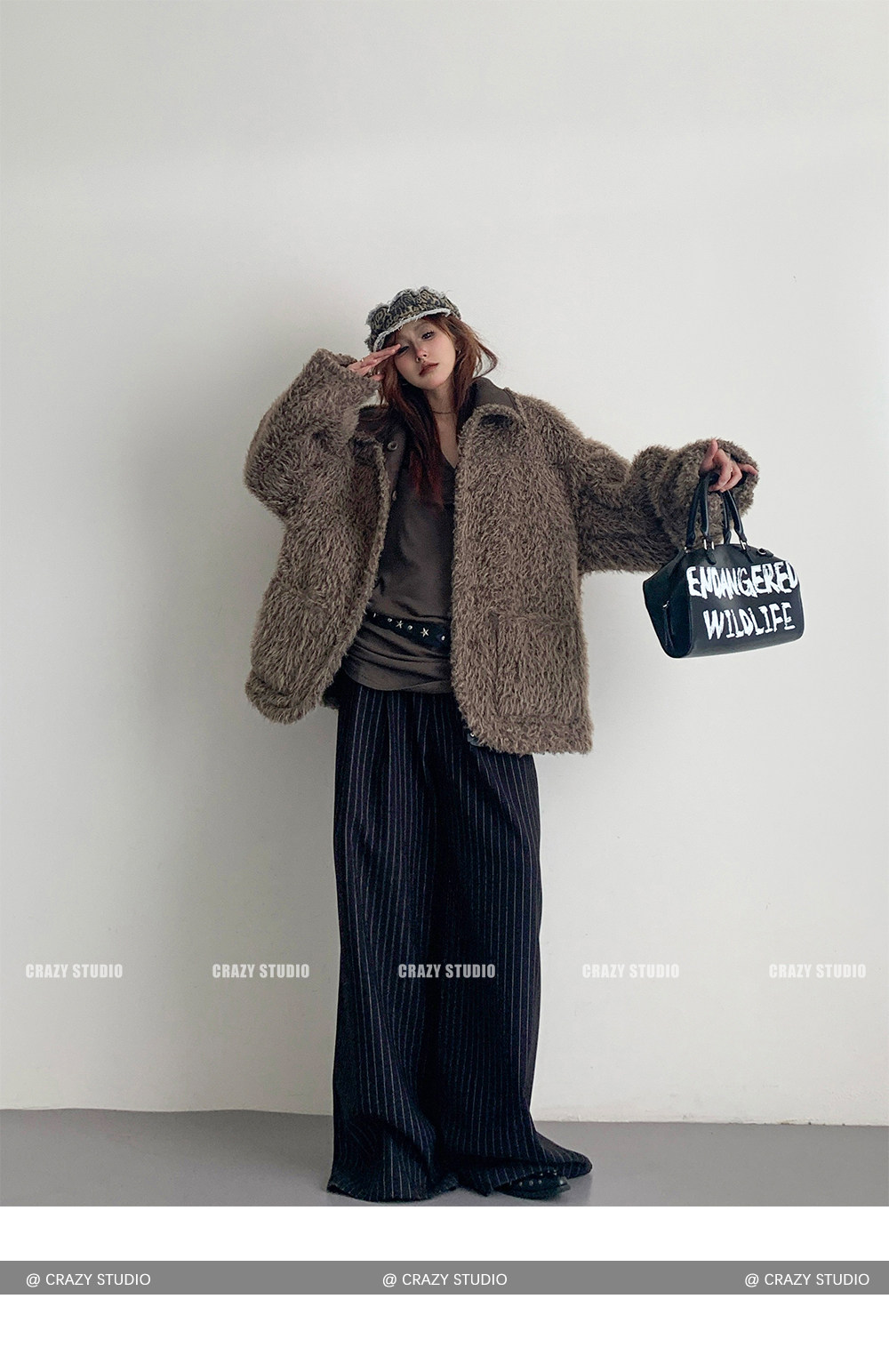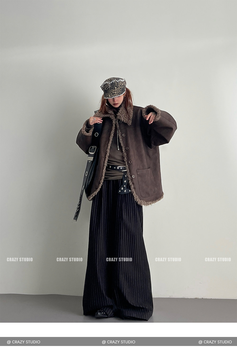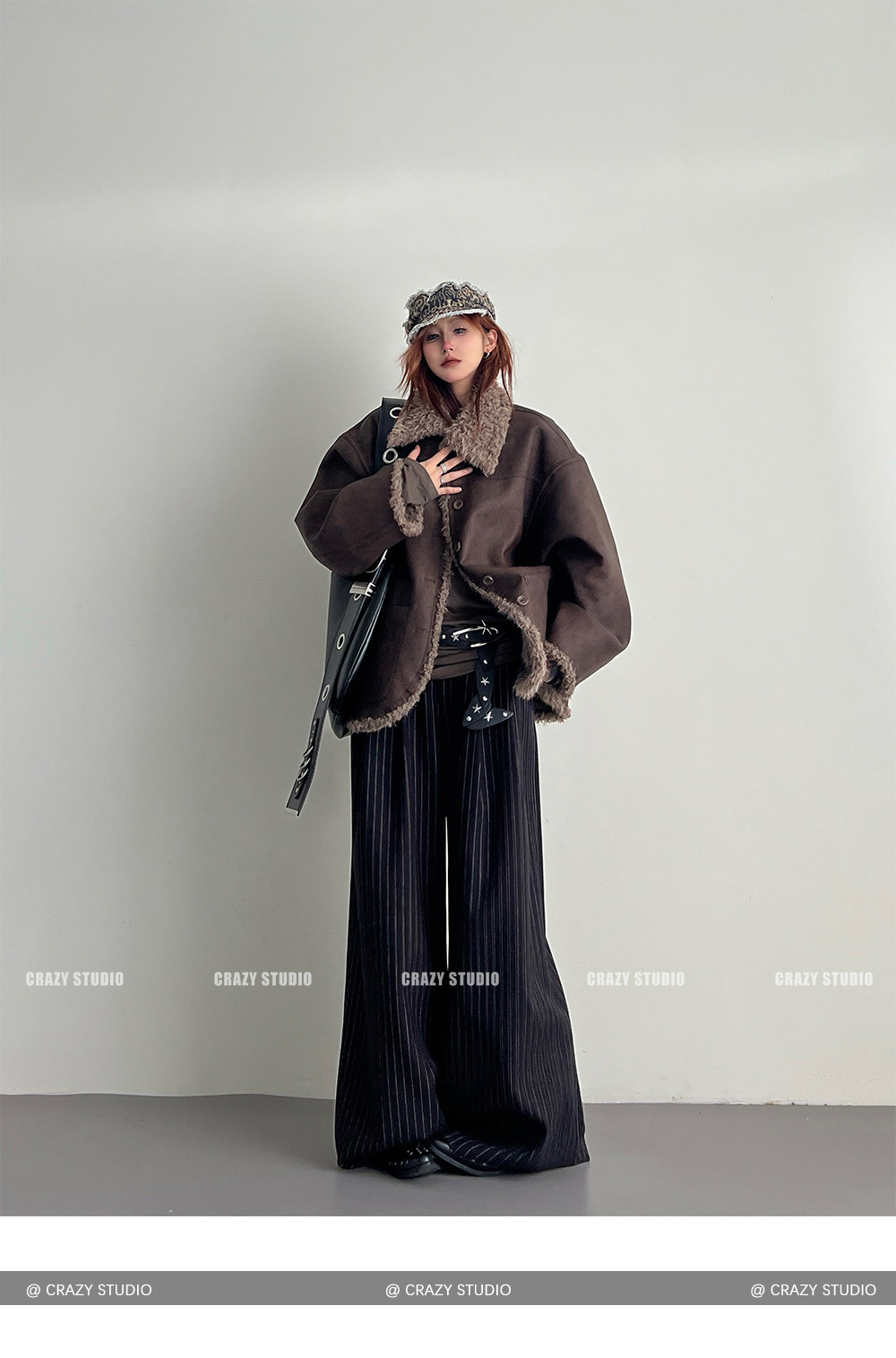 【セットアップ】【単品注文】ファー襟 スウェットアウター + カーブ ワイドパンツ 2点上下セット 【JZシリーズ】