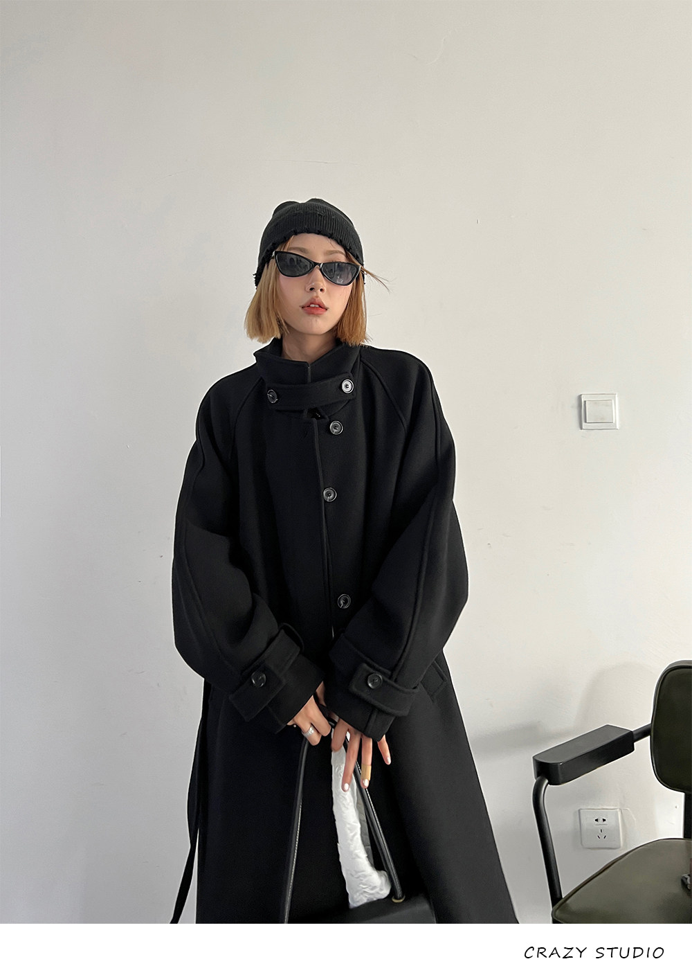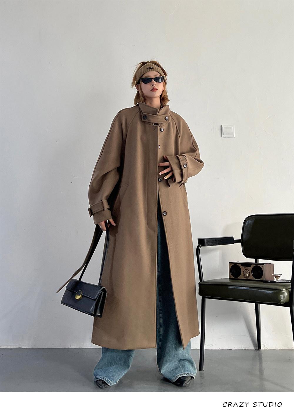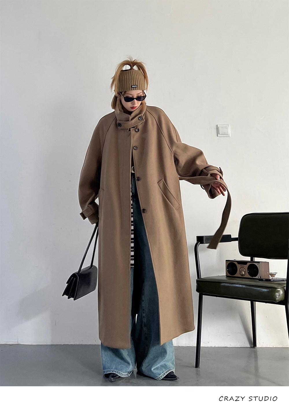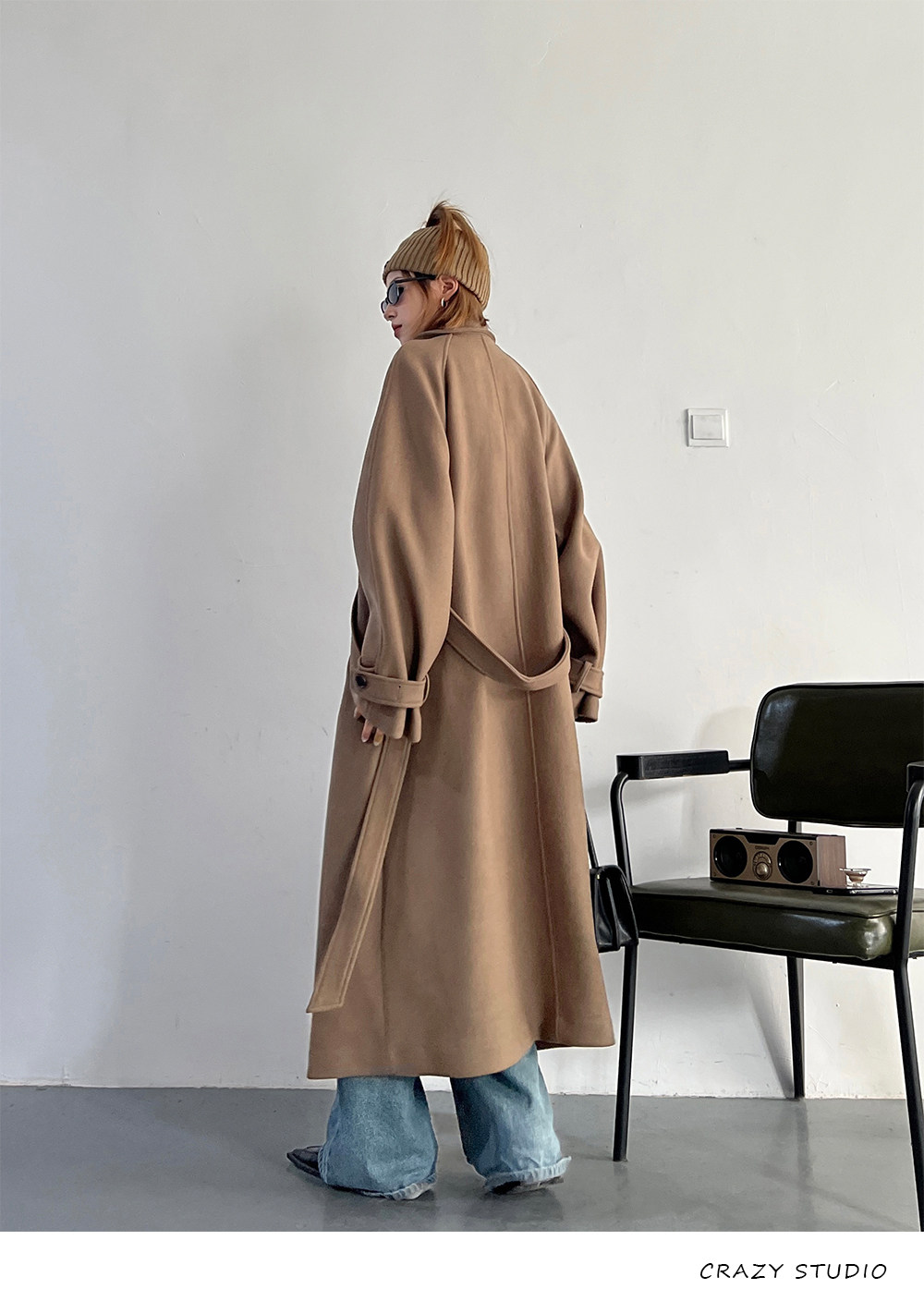 【アウター】秋冬 新作 レディース ウールコート 中長丈 スタンドカラー ラグランスリーブ ベルト付き 高級感【FCシリーズ】