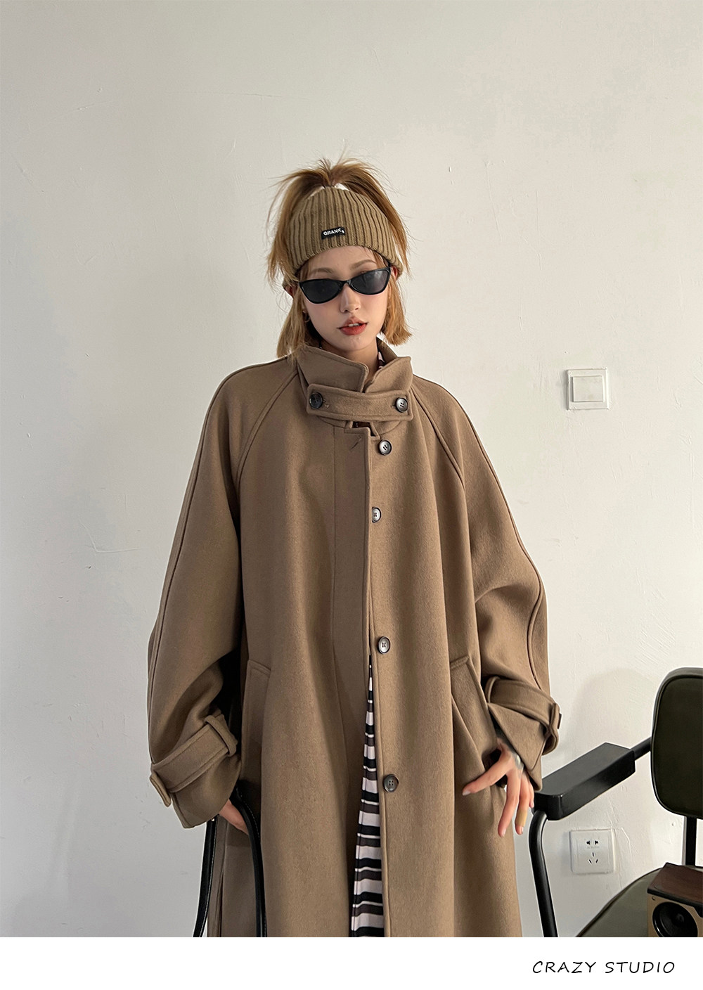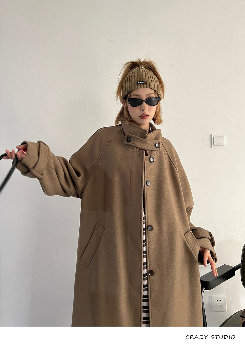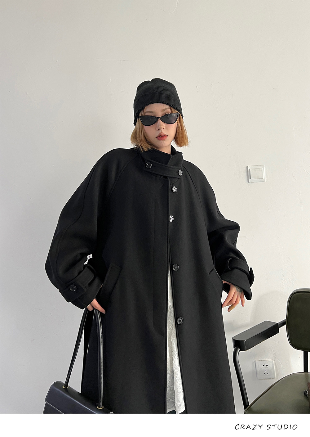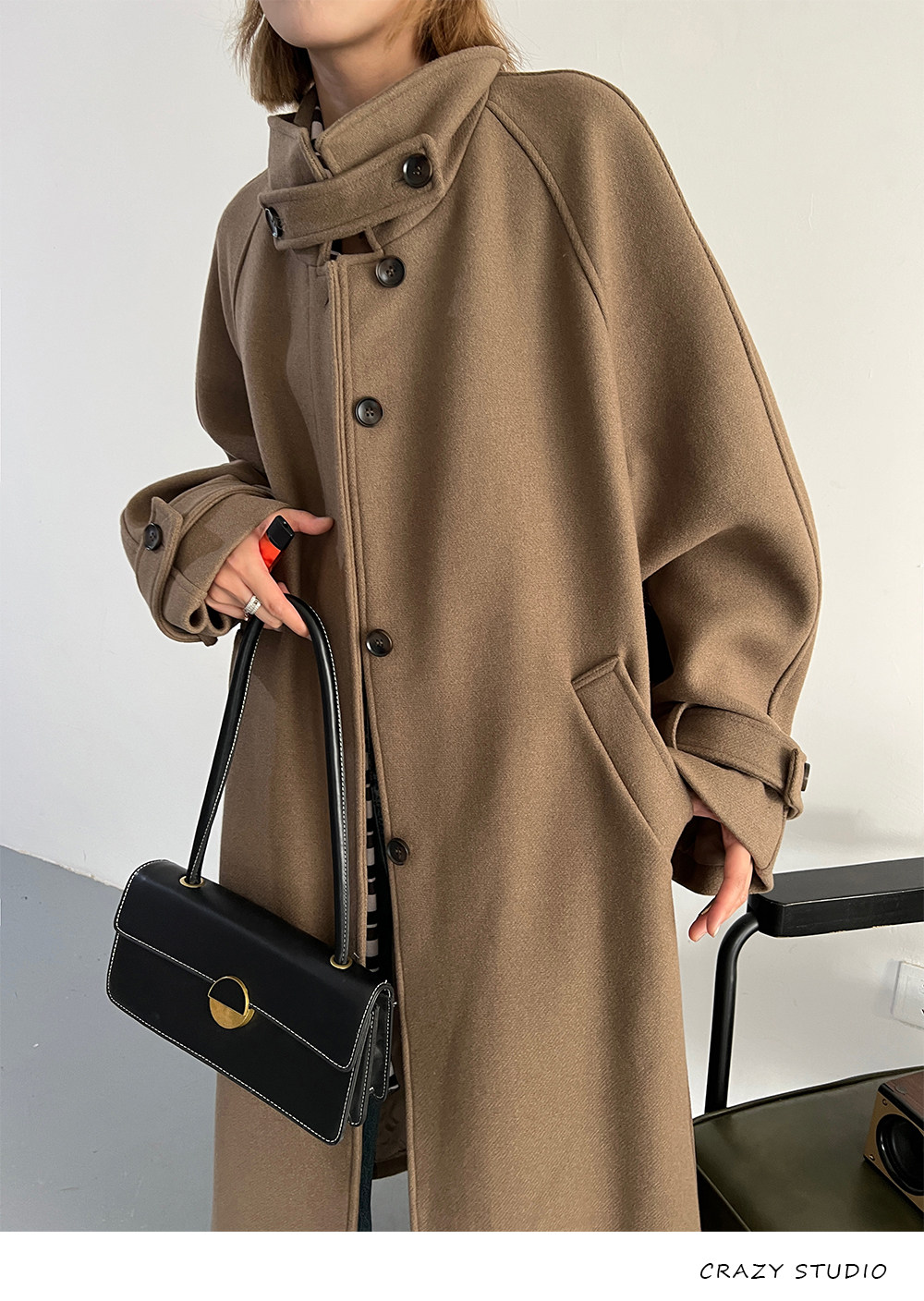 【アウター】秋冬 新作 レディース ウールコート 中長丈 スタンドカラー ラグランスリーブ ベルト付き 高級感【FCシリーズ】