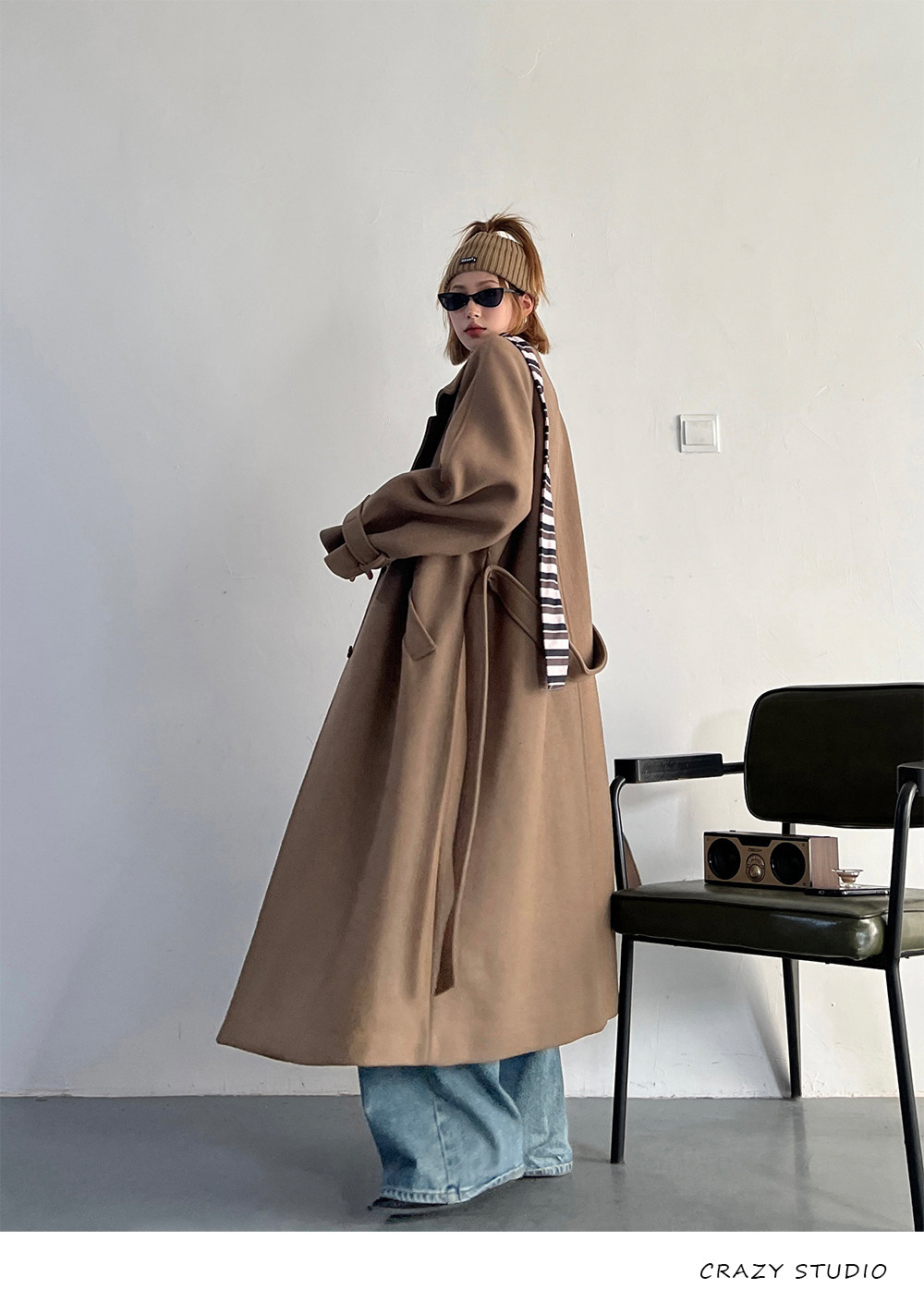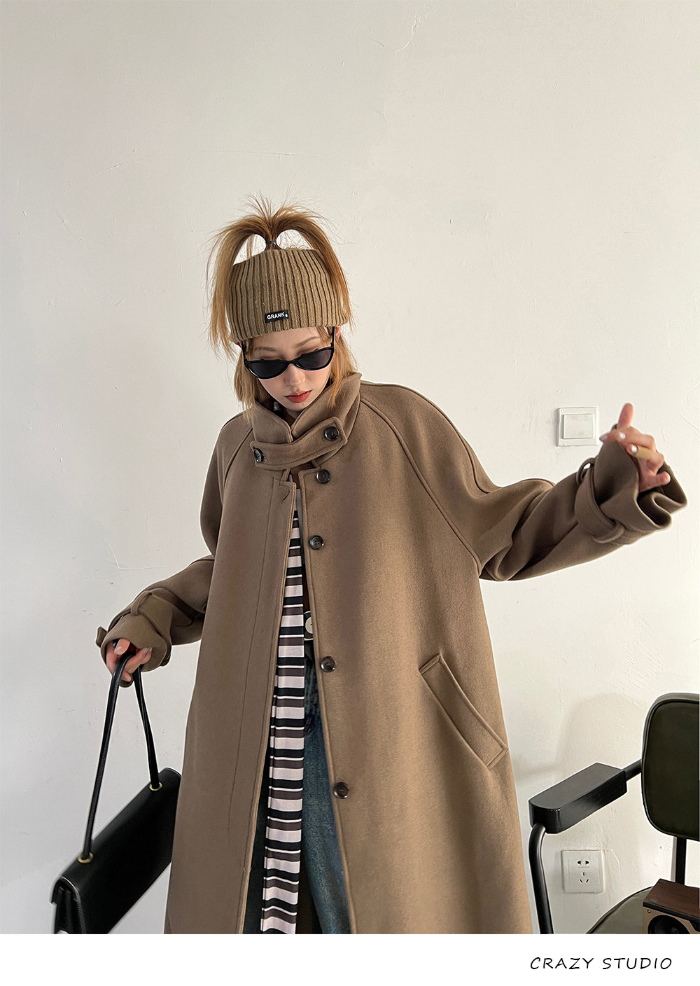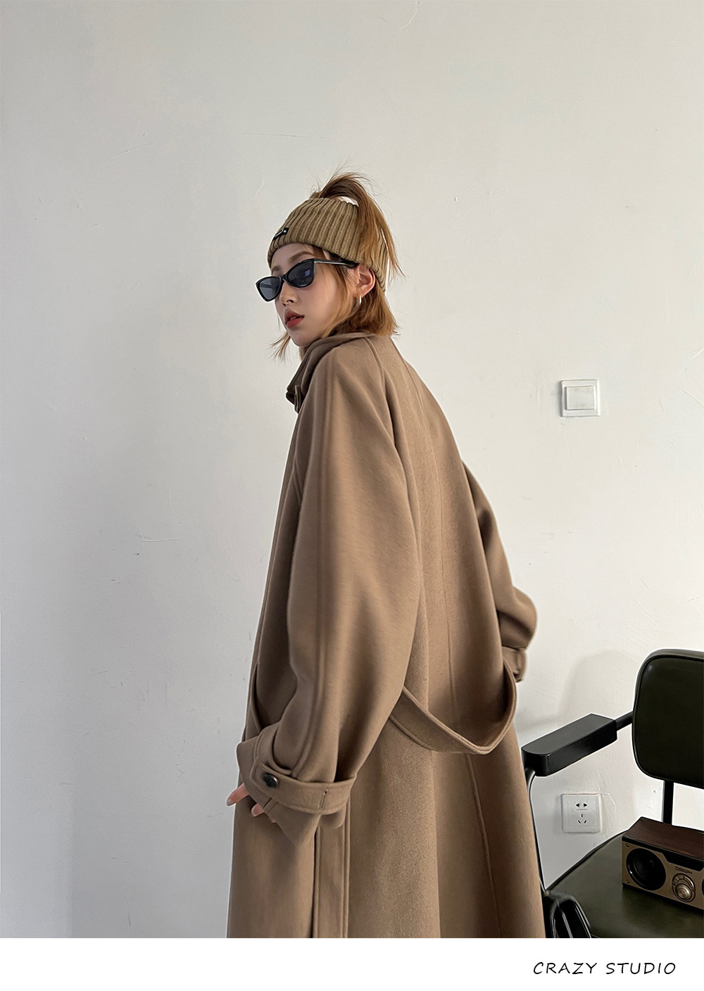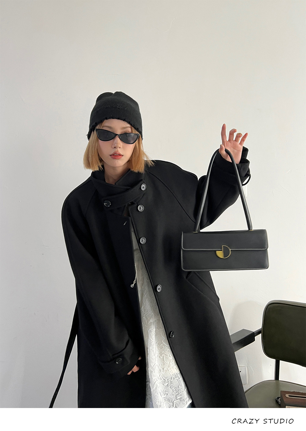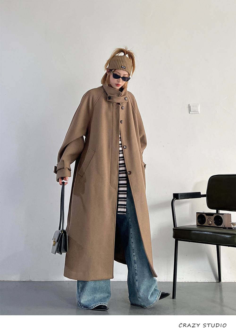 【アウター】秋冬 新作 レディース ウールコート 中長丈 スタンドカラー ラグランスリーブ ベルト付き 高級感【FCシリーズ】