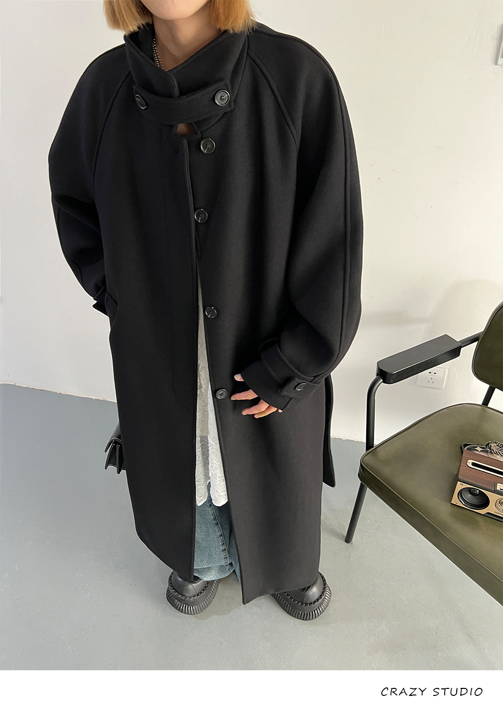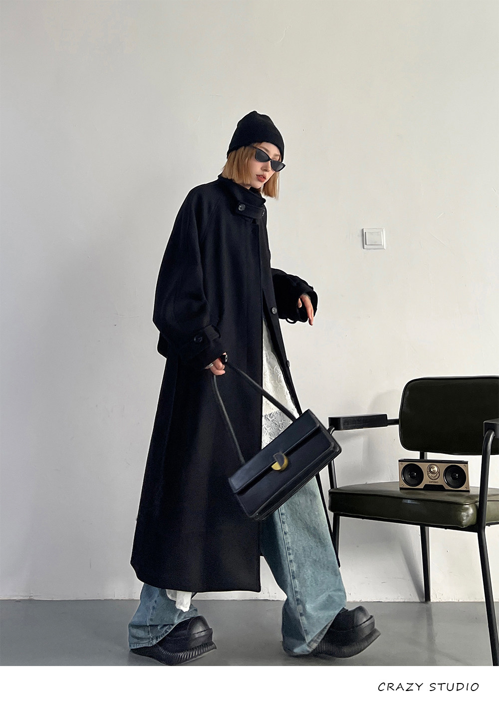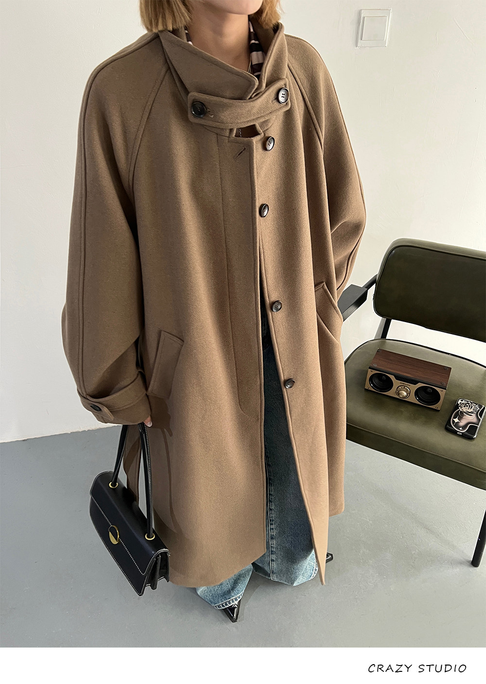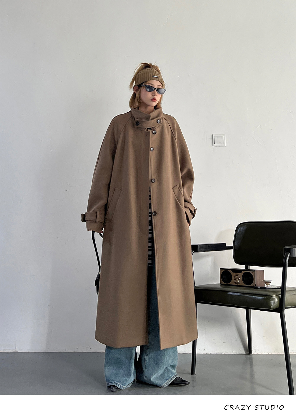 【アウター】秋冬 新作 レディース ウールコート 中長丈 スタンドカラー ラグランスリーブ ベルト付き 高級感【FCシリーズ】