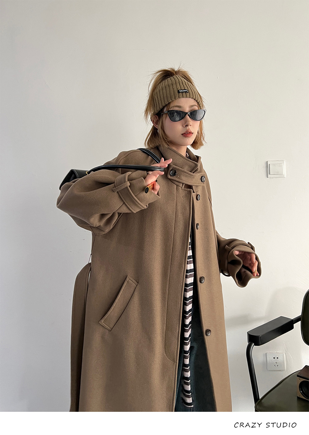 【商品名】【アウター】秋冬 新作 レディース ウールコート 中長丈 スタンドカラー ラグランスリーブ ベルト付き 高級感【FCシリーズ】