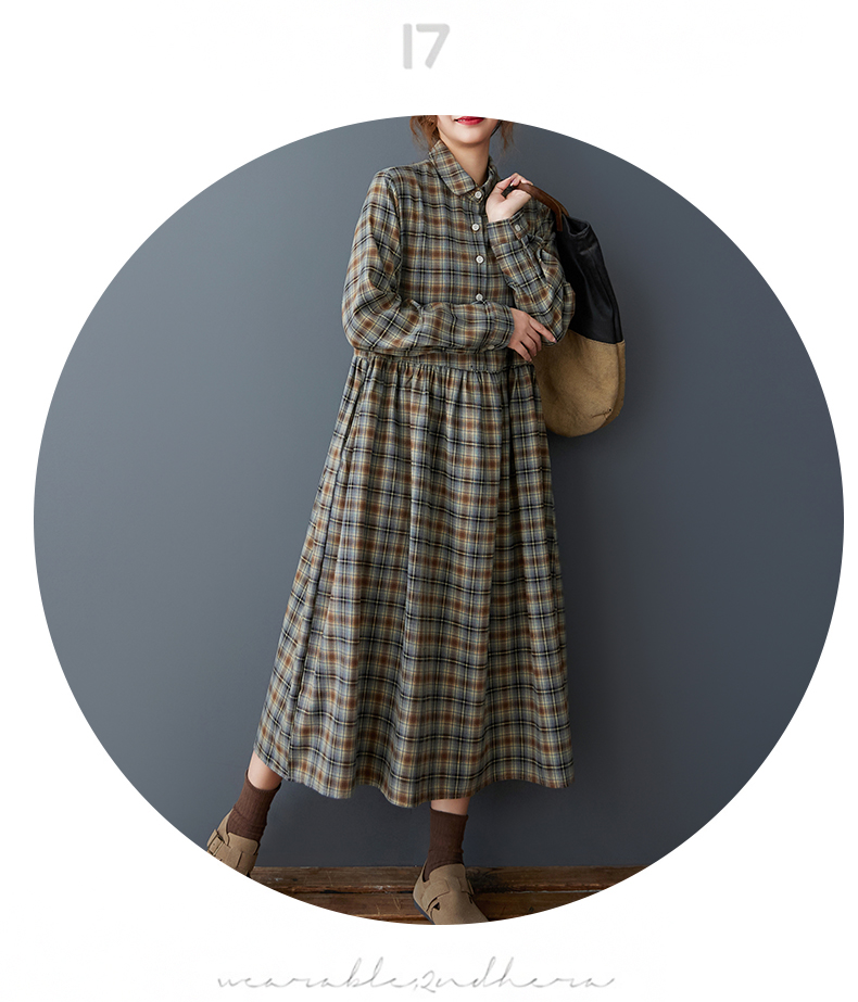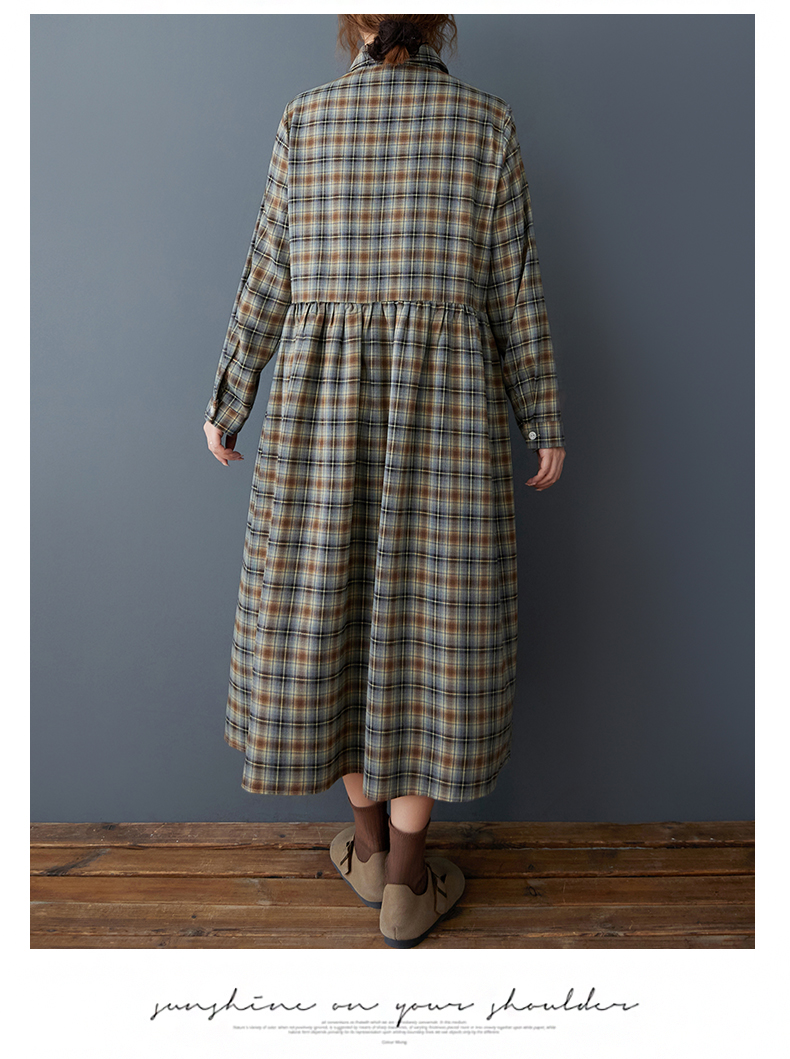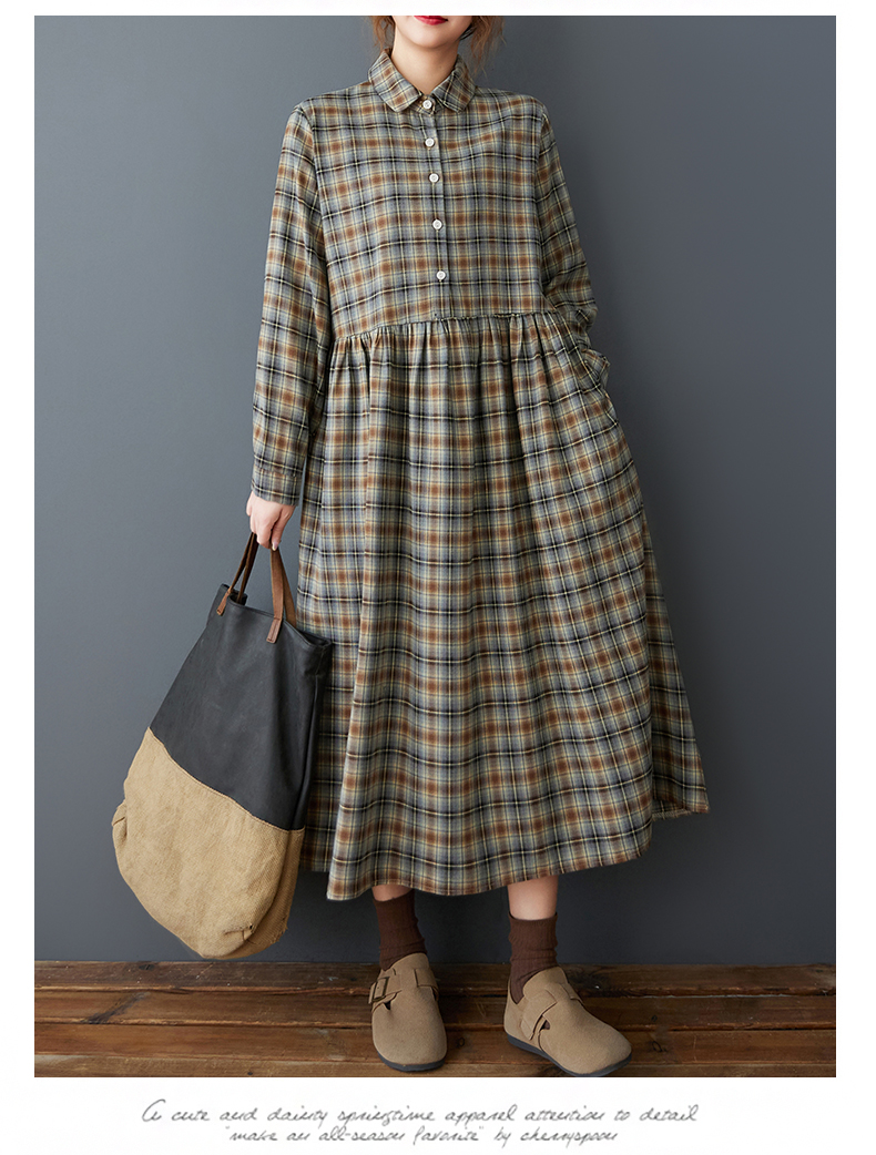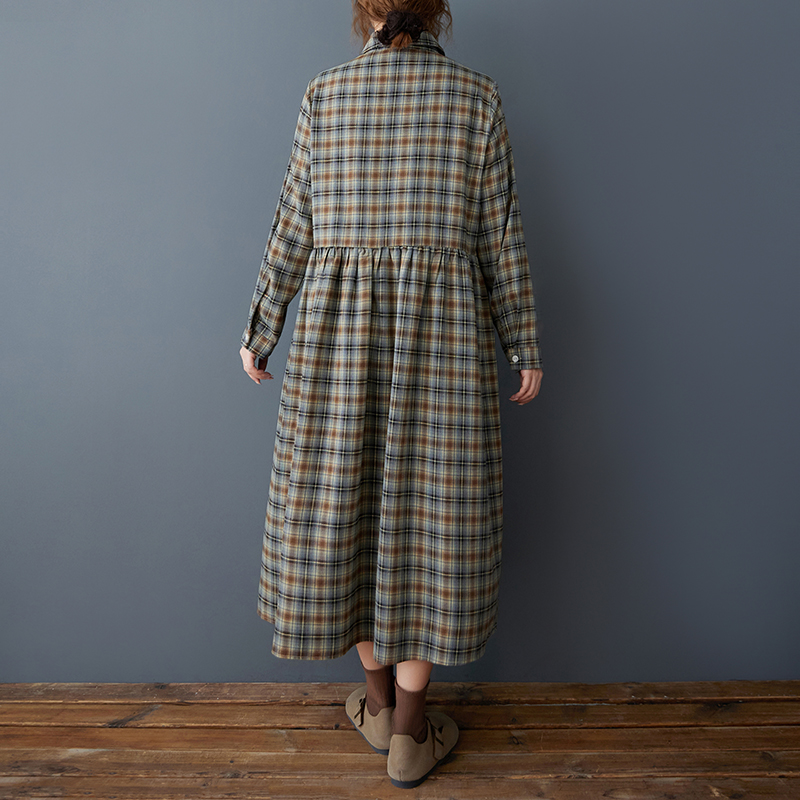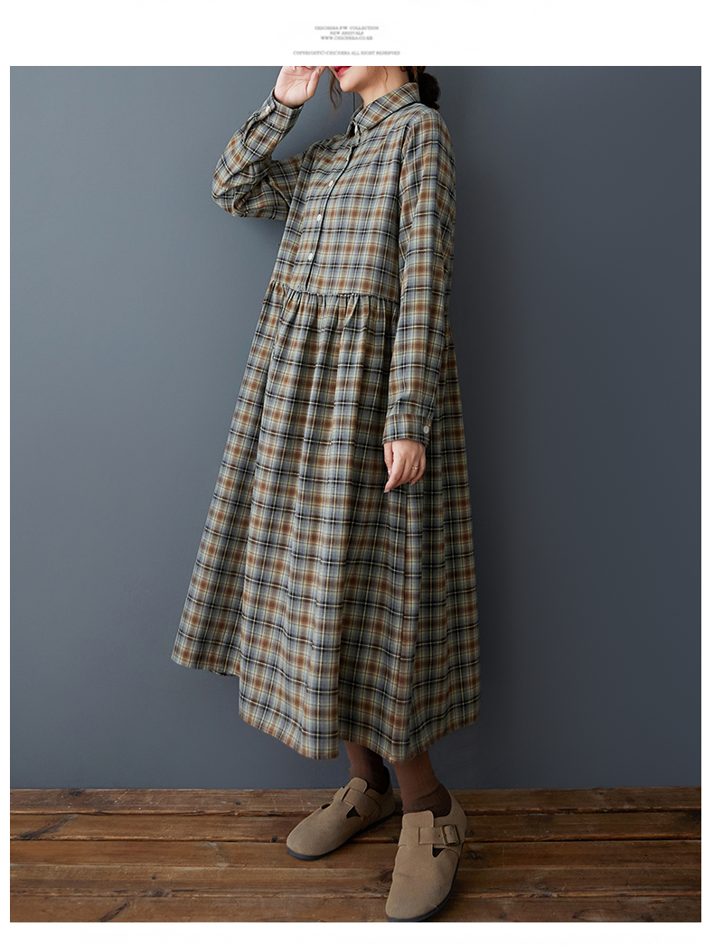 【ワンピース】春 秋 冬 新作 ゆったり レトロ 起毛 チェック柄 ミディ丈 ワンピース 【SHシリーズ】