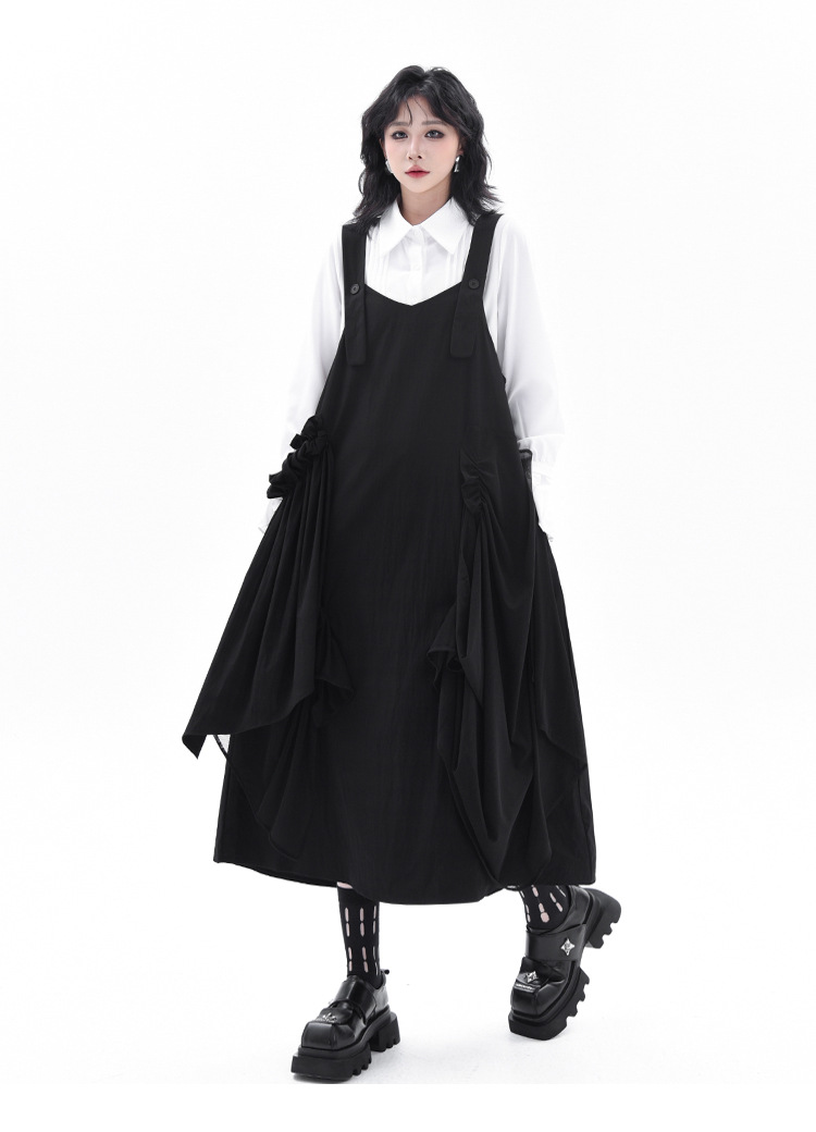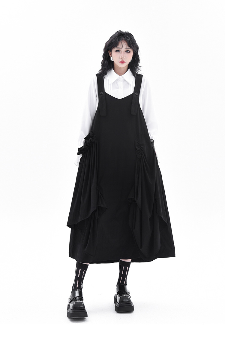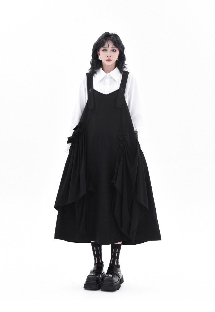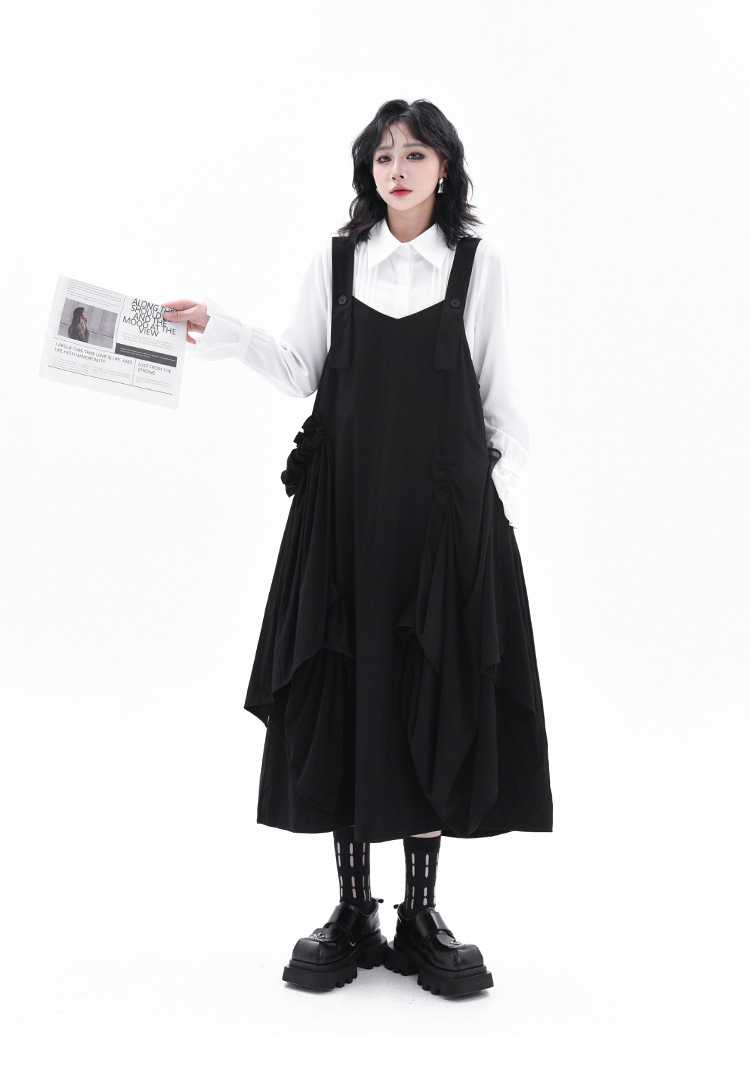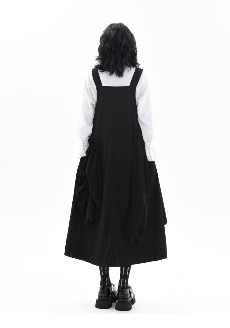 【ワンピース】フレンチレトロ 切替デザイン 大ポケット 長袖 ワンピース 秋新作 ゆったり 【JZシリーズ】