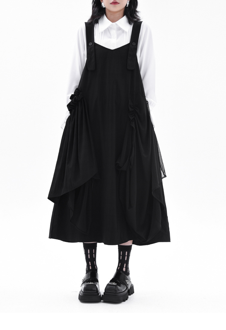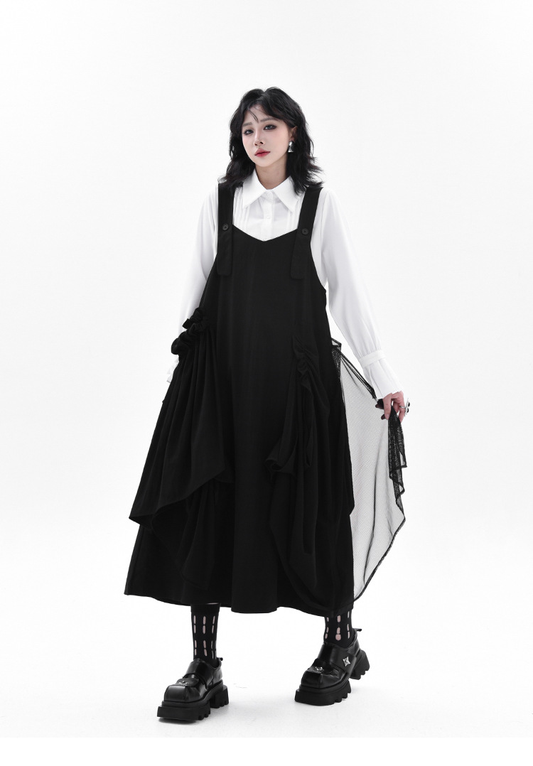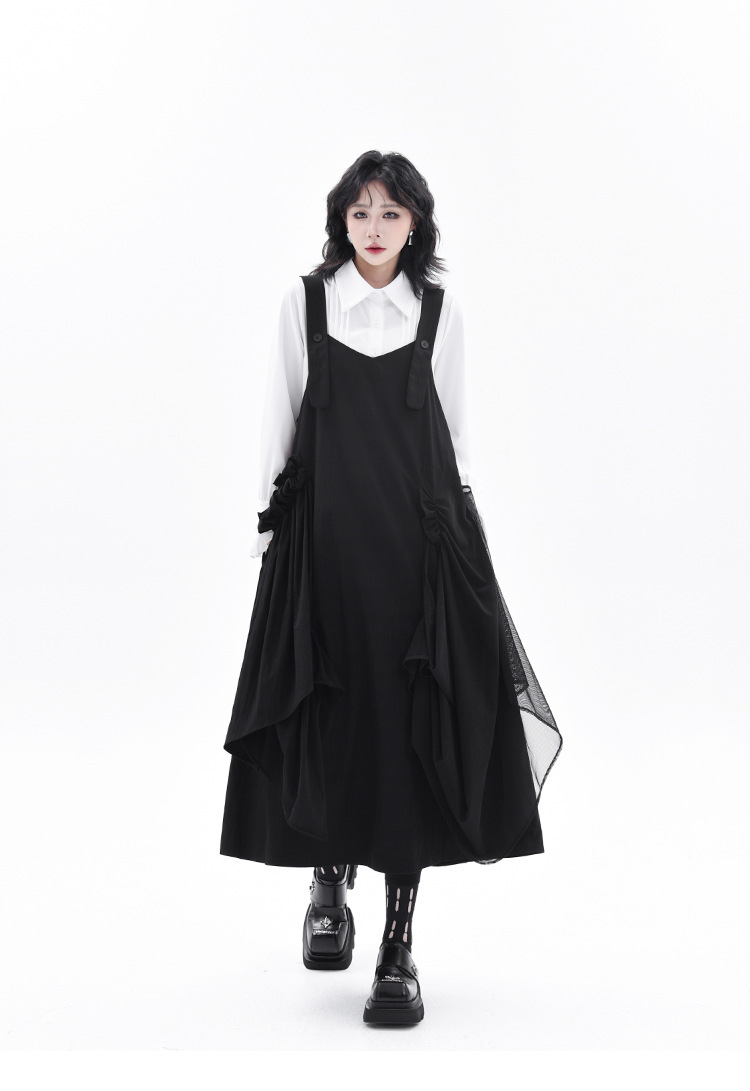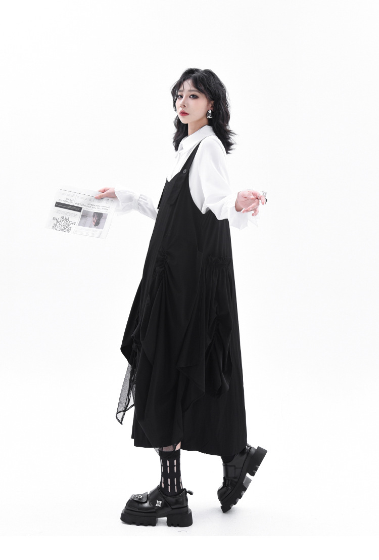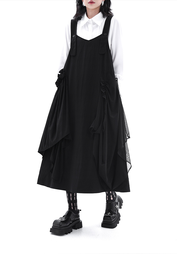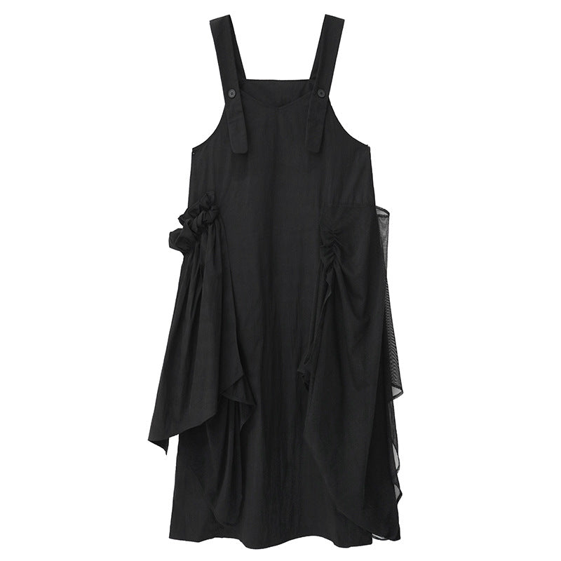 【ワンピース】メッシュ切り替え キャミワンピース レディース 秋新作 ゆったり体型カバー ロング丈 ノースリーブ【AHシリーズ】