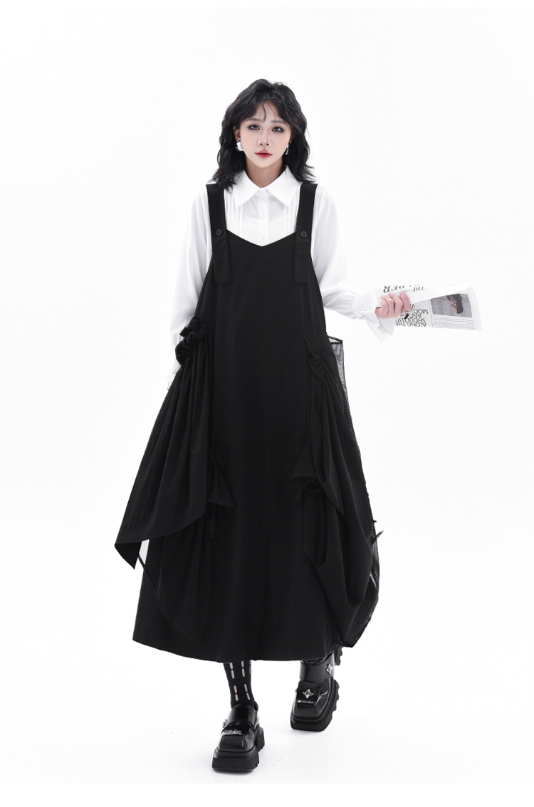 【商品名】【ワンピース】メッシュ切り替え キャミワンピース レディース 秋新作 ゆったり体型カバー ロング丈 ノースリーブ【AHシリーズ】