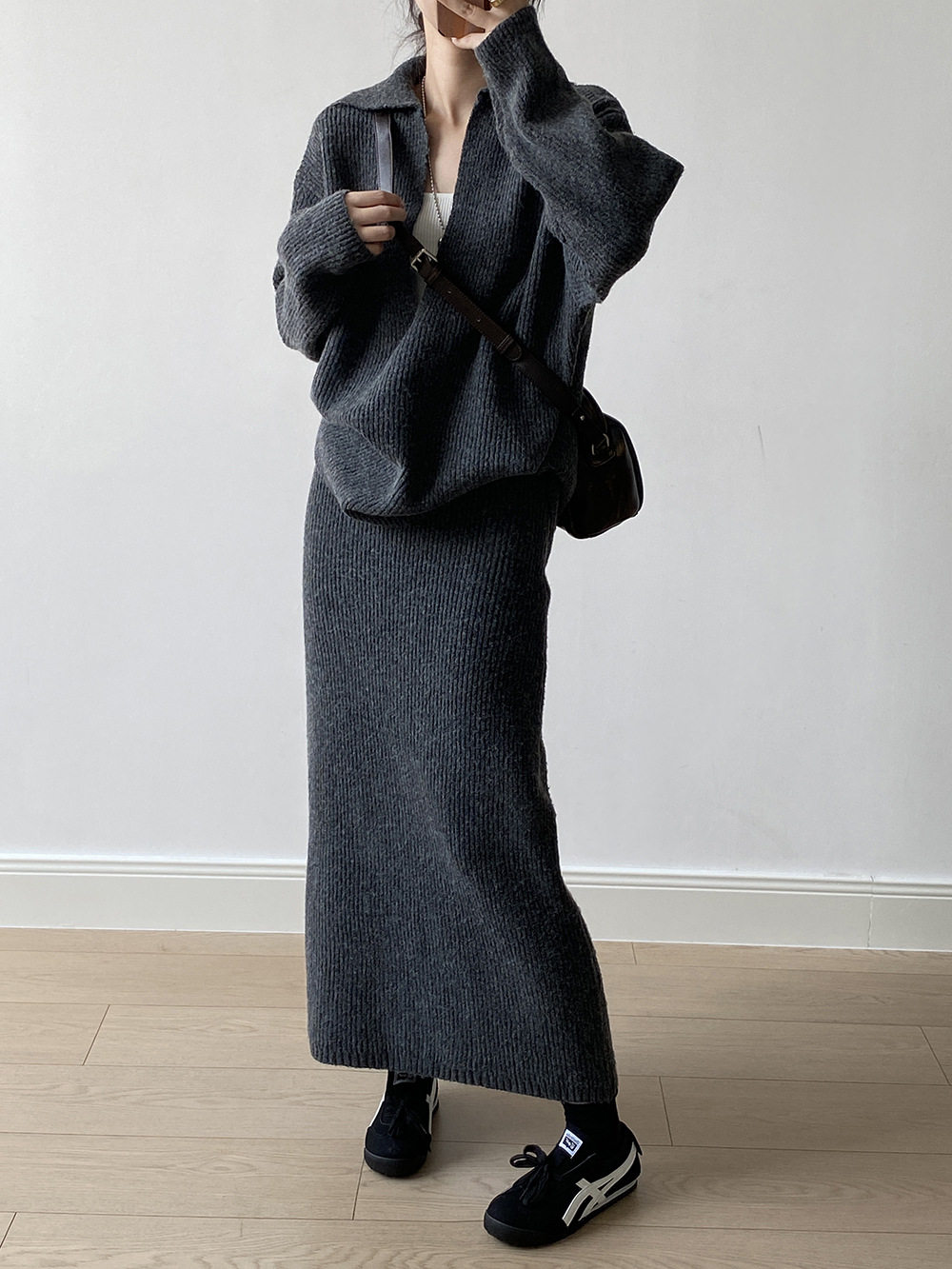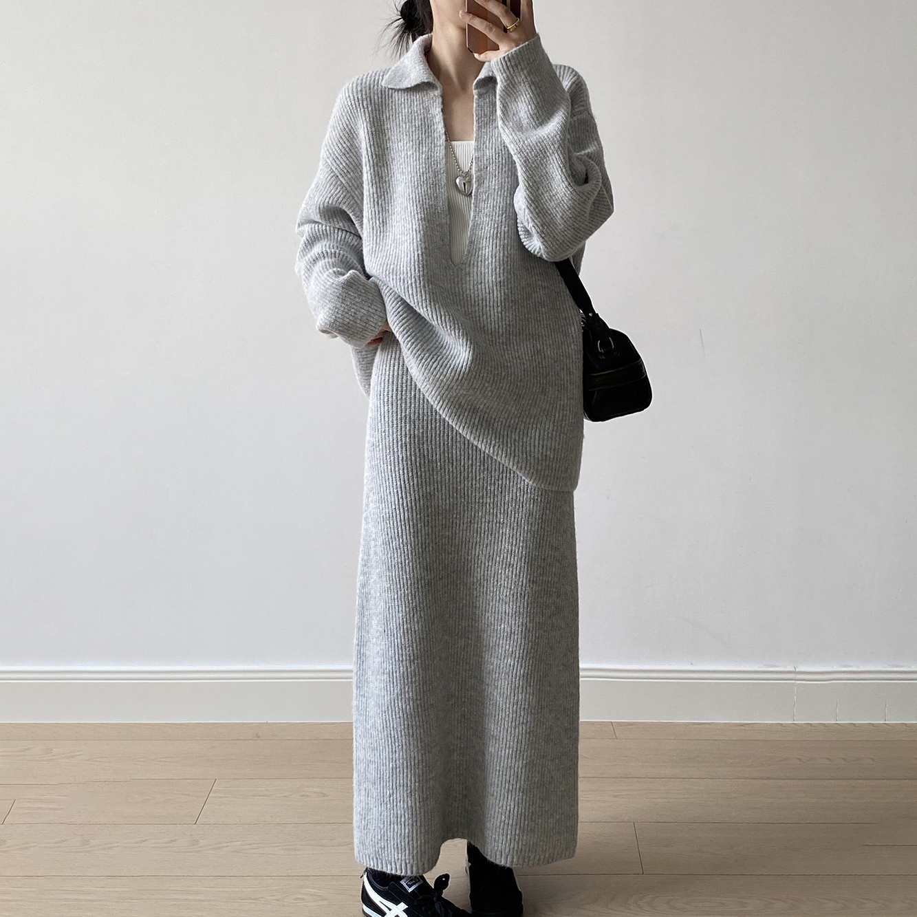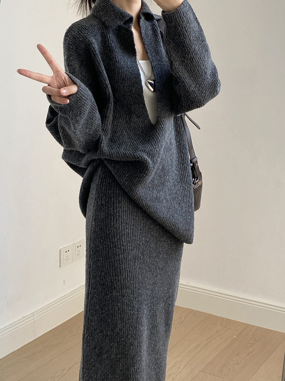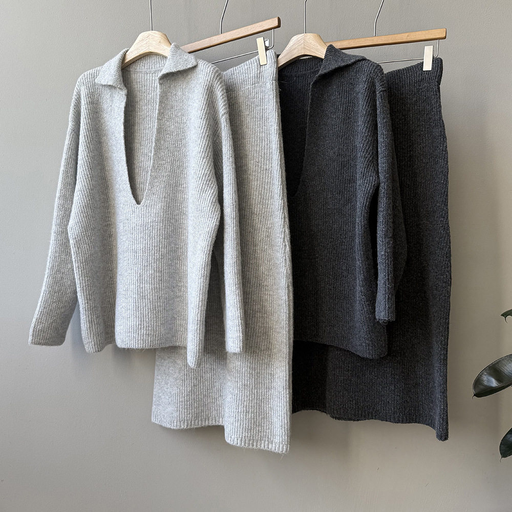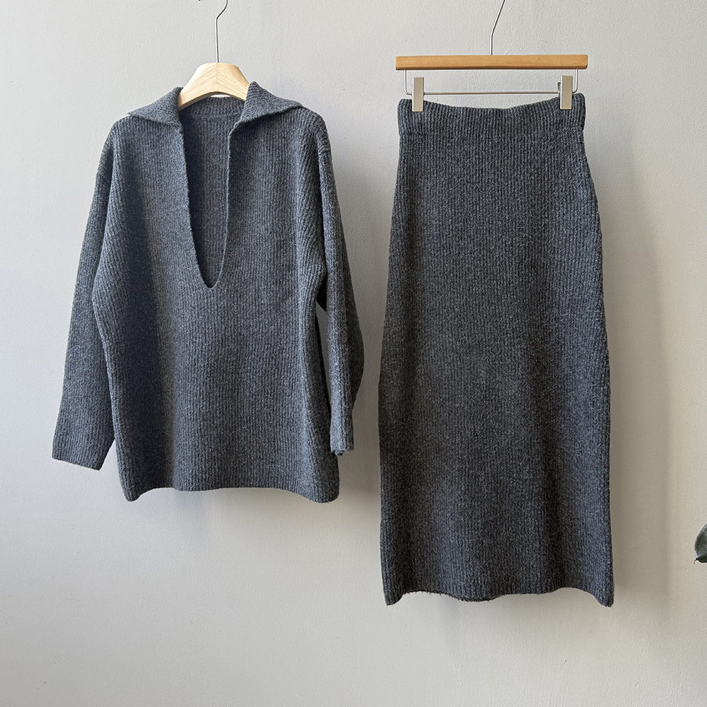 2点セット!【セットアップ】レディース 秋 カジュアル プルオーバー+ハイウエストスカート 上下セット【JZシリーズ】