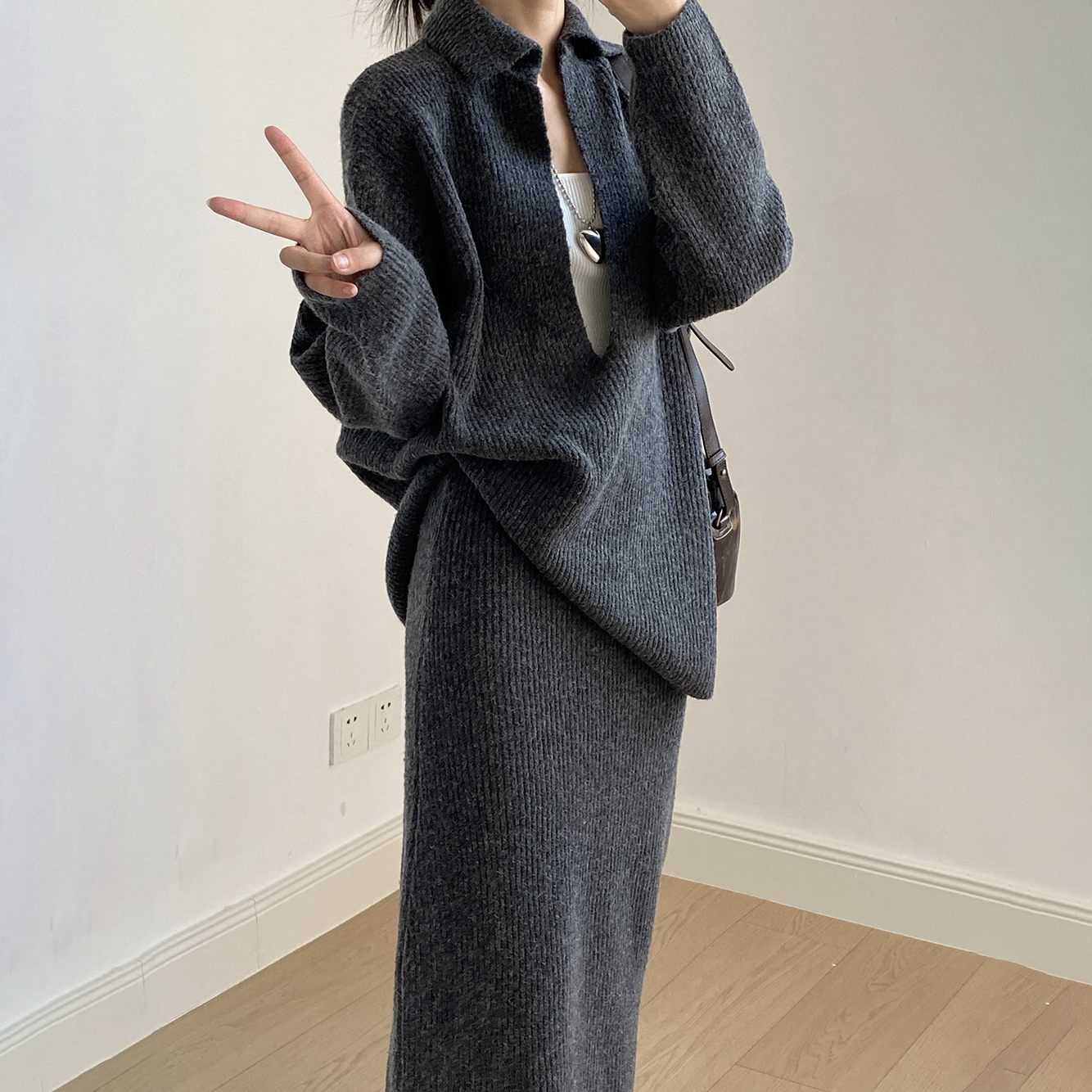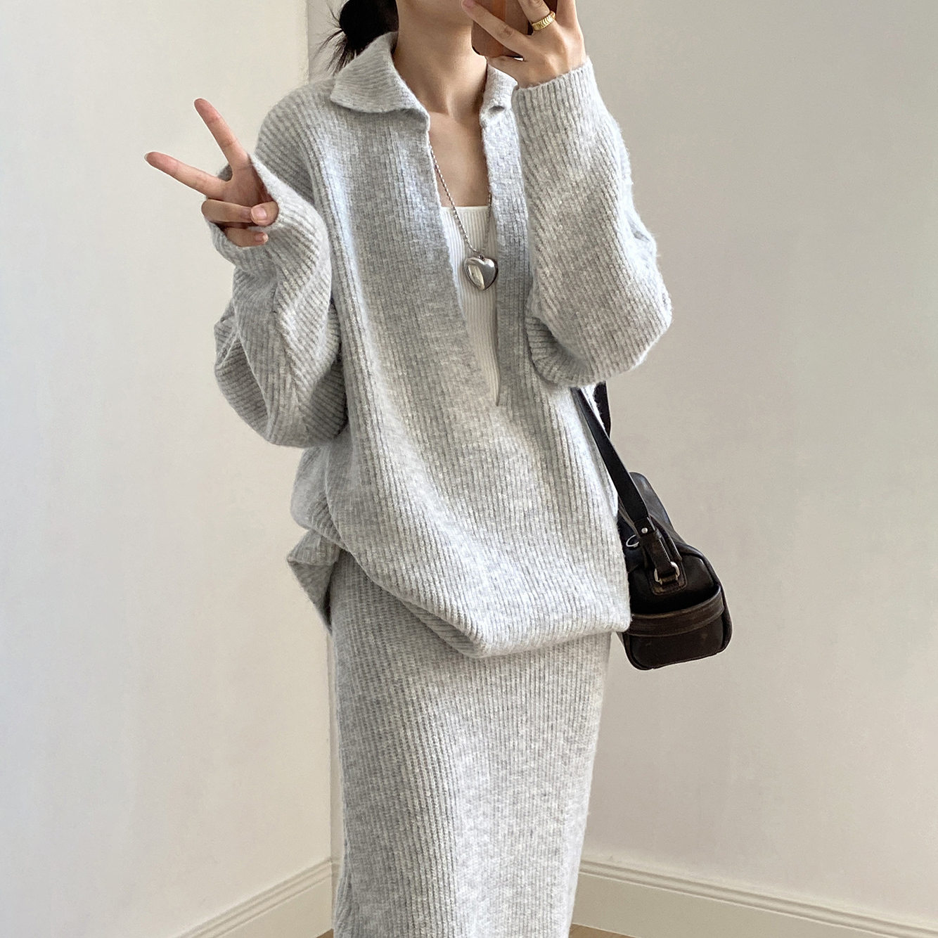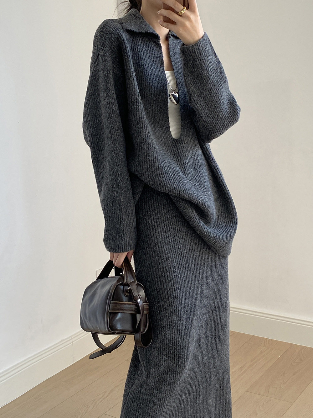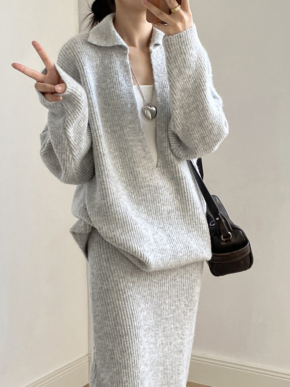 2点セット!【セットアップ】レディース 秋 カジュアル プルオーバー+ハイウエストスカート 上下セット【JZシリーズ】