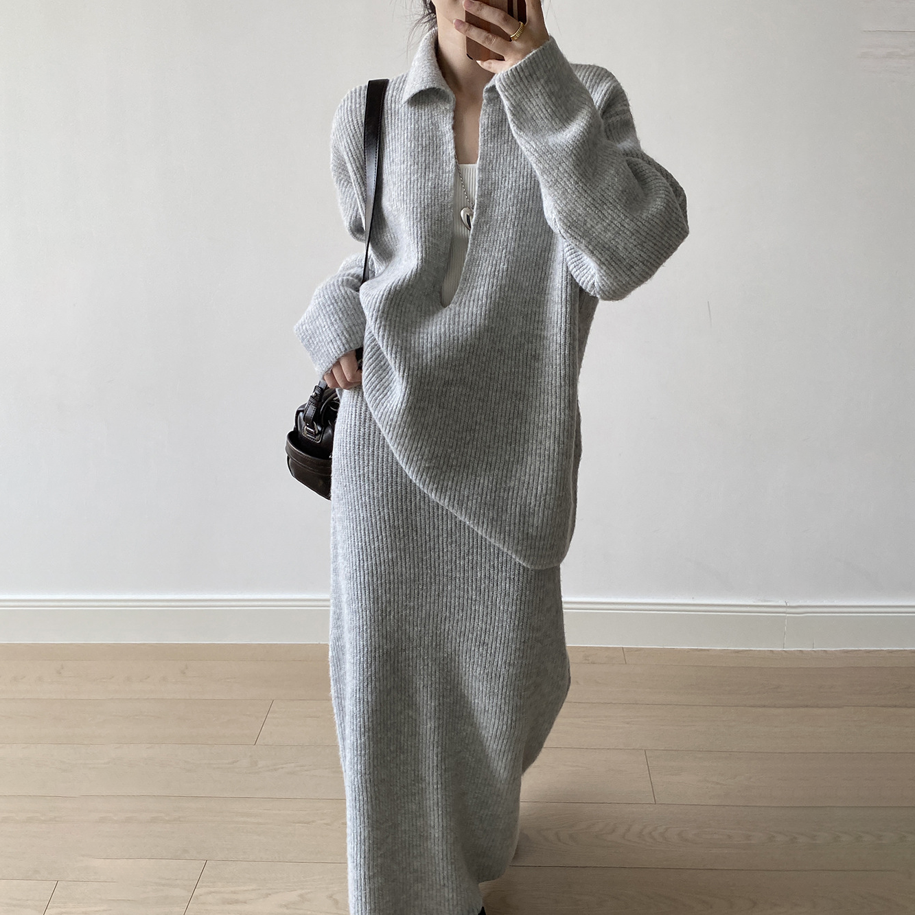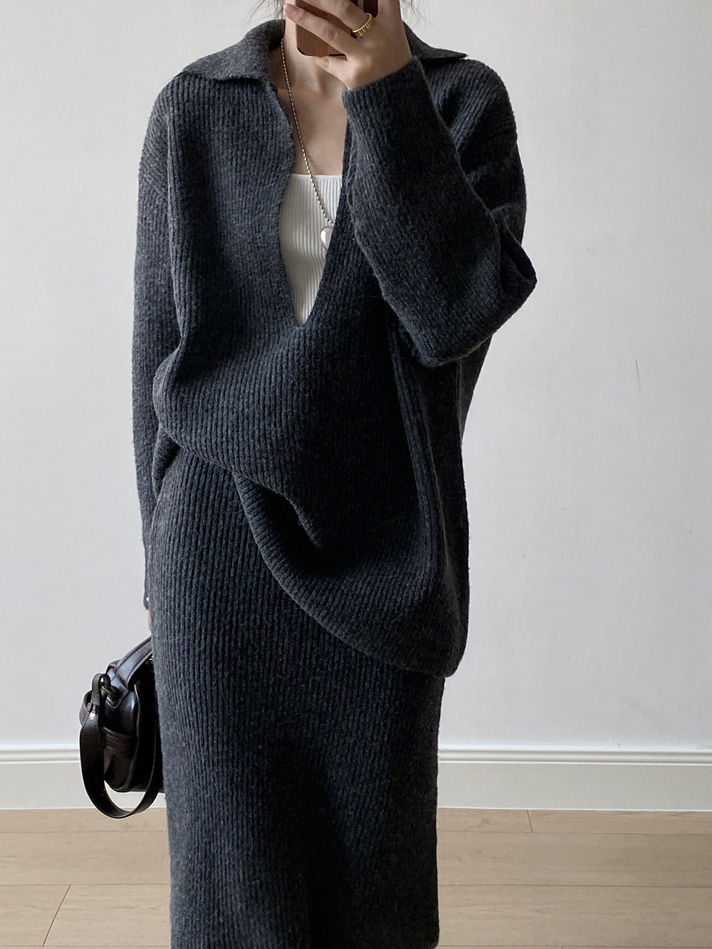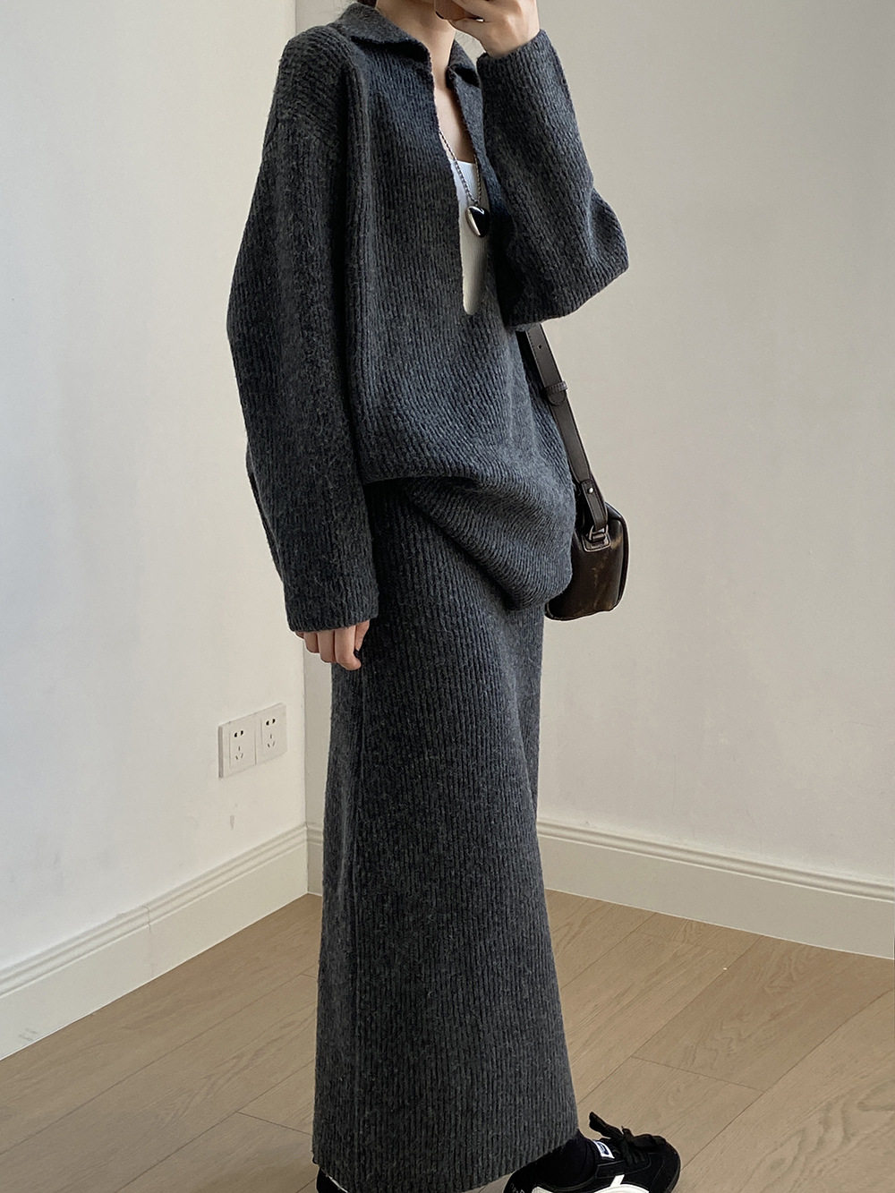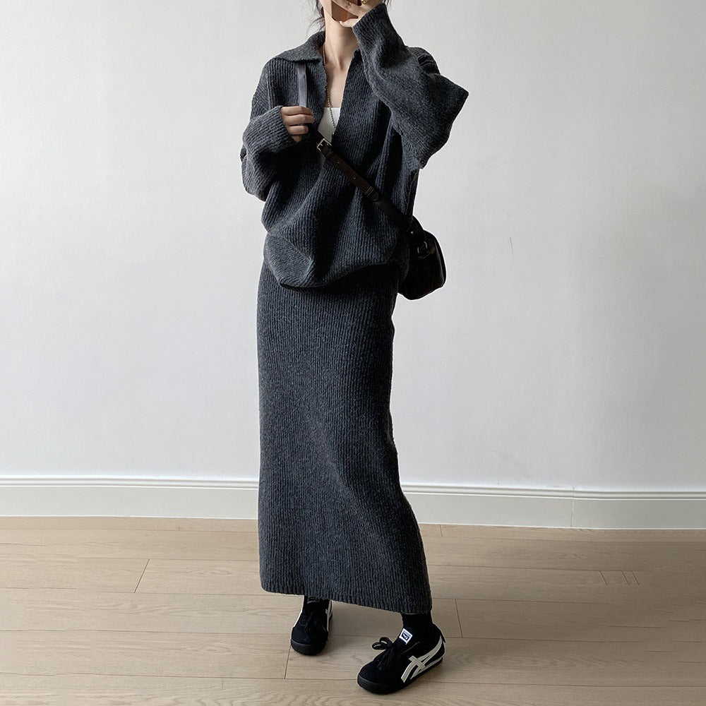 2点セット!【セットアップ】レディース 秋 カジュアル プルオーバー+ハイウエストスカート 上下セット【JZシリーズ】